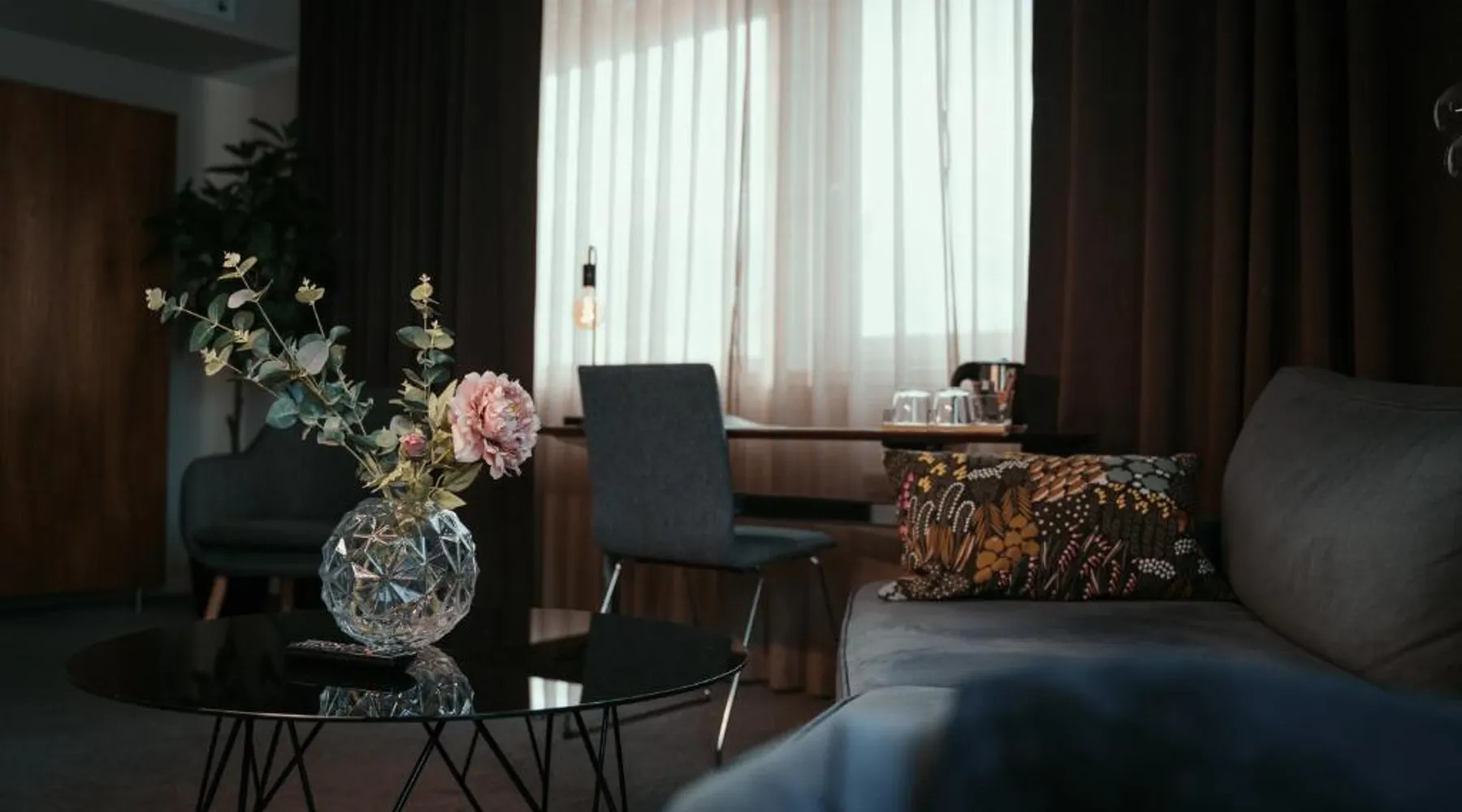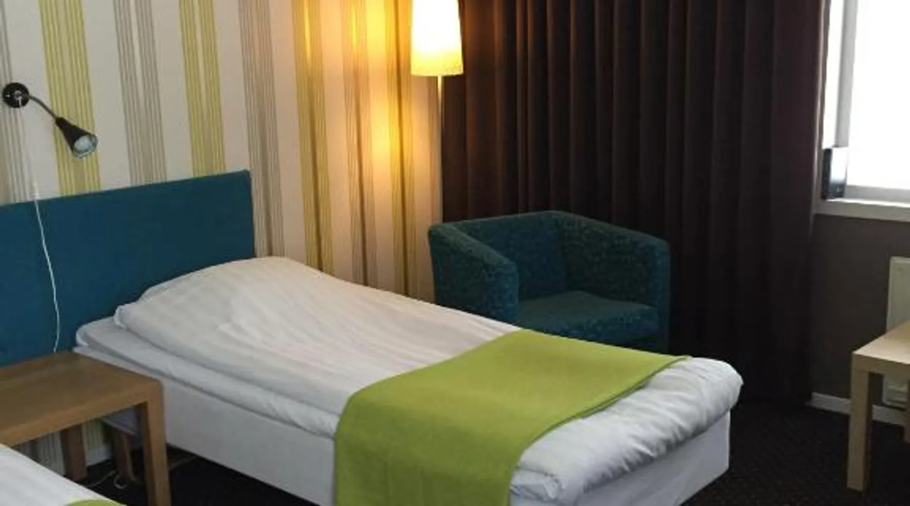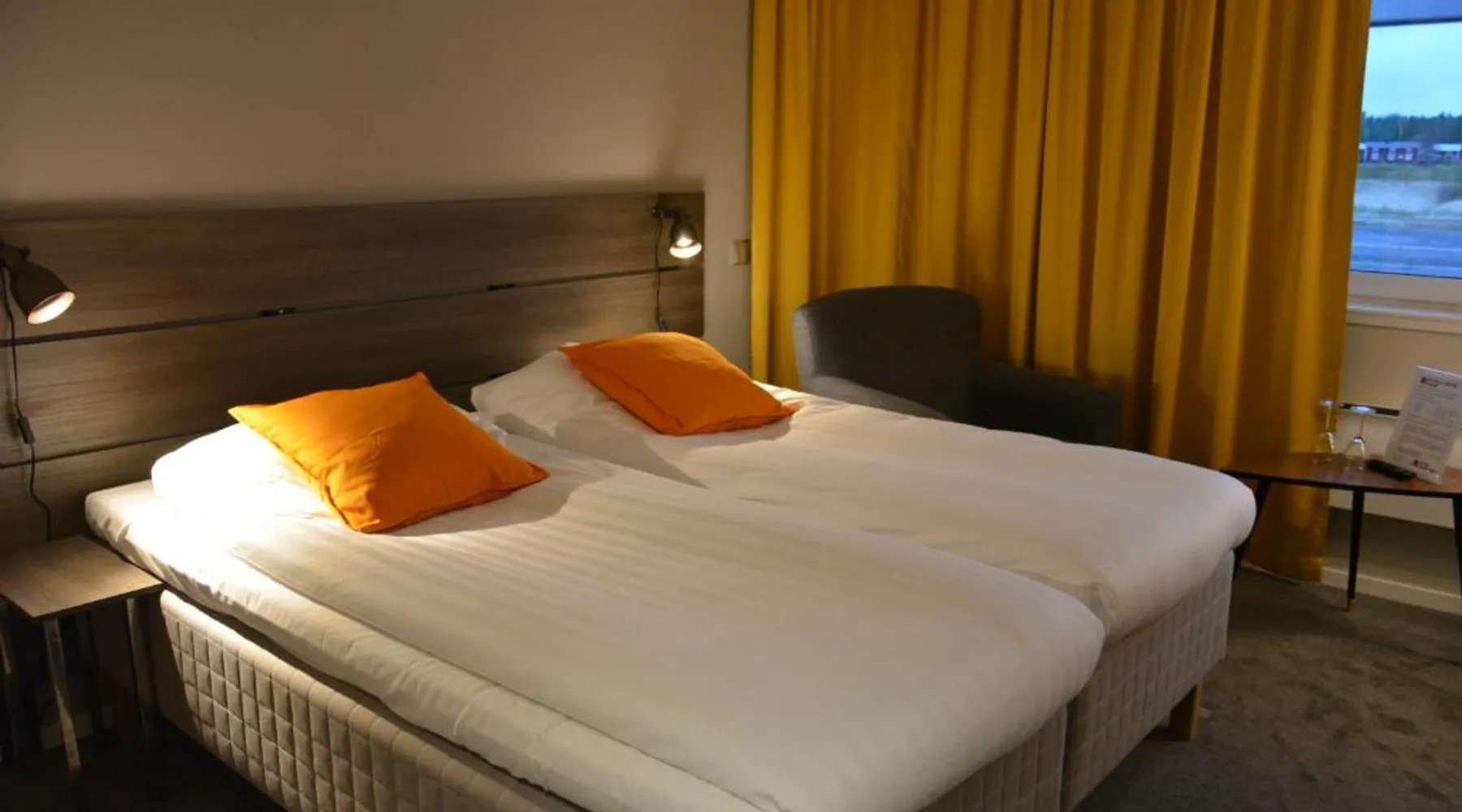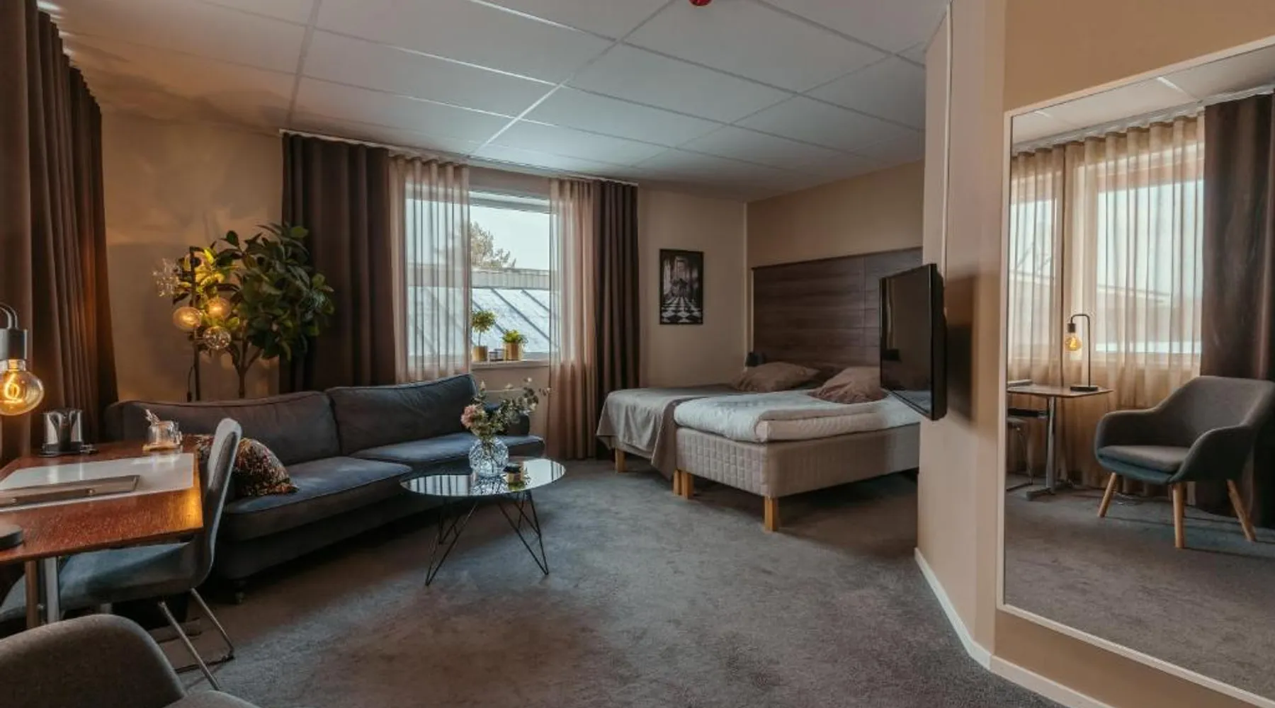 Comfortable Accommodations: Hotell Entré Norr in Umeå offers family rooms with air-conditioning, private bathrooms, and modern amenities. Each room includes a work desk, TV, and soundproofing for a pleasant stay. Exceptional Facilities: Guests can enjoy a sauna, sun terrace, and lush garden. The hotel features a fitness room, indoor and outdoor play areas, and a games room. Free WiFi is available throughout the property. Dining Experience: The family-friendly restaurant serves European cuisine with vegetarian, vegan, gluten-free, and dairy-free options. Breakfast is provided as a buffet, and lunch and dinner are available in a traditional ambiance. Convenient Location: Located 6.8 mi from Umeå Airport, the hotel is near attractions such as Umeå University (4.3 mi) and Norrlands Opera House (5 mi). Winter sports and fishing are available in the surrounding area. The spacious double room features a private bathroom, air conditioning, soundproof walls, as well as a seating area with a flat-screen TV. The double room offers a tea and coffee maker, a sofa, a carpeted floor, heating, as well as a TV. The unit offers 2 beds.