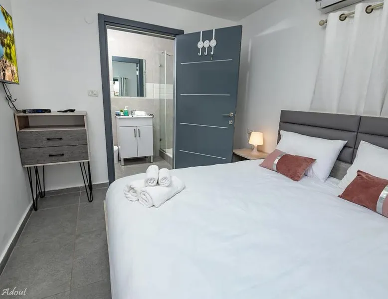 17 miles from Bahá’í Gardens Akko in Me‘ona, המקום של ברקו - דירות אירוח מקסימות עם ג'קוזי ובריכה מחוממת ומקורה במתחם offers accommodations with access to a hot tub and indoor pool. 30 miles from Tomb of Maimonides and 30 miles from St. Peter's Church, the property features a garden and a terrace. The apartment provides rooms with air conditioning, free private parking, and free Wifi. The apartment provides guests with a patio, garden views, a seating area, cable flat-screen TV, a fully equipped kitchenette with a microwave and a fridge, and a private bathroom with shower. Kitchenware and kettle are also provided. At the apartment complex, every unit includes bed linen and towels. You can play table tennis at המקום של ברקו - דירות אירוח מקסימות עם ג'קוזי ובריכה מחוממת ומקורה במתחם. Train Station Nahariyya is 11 miles from the accommodation, while Ga'aton River is 11 miles away. Haifa Airport is 29 miles from the property. This spacious apartment comes with 1 living room, 1 separate bedroom and 1 bathroom with a shower. In the kitchenette, guests will find a refrigerator, kitchenware and a microwave. The air-conditioned apartment features a flat-screen TV with cable channels, a tea and coffee maker, a seating area, a dining area as well as garden views. The unit has 1 bed.