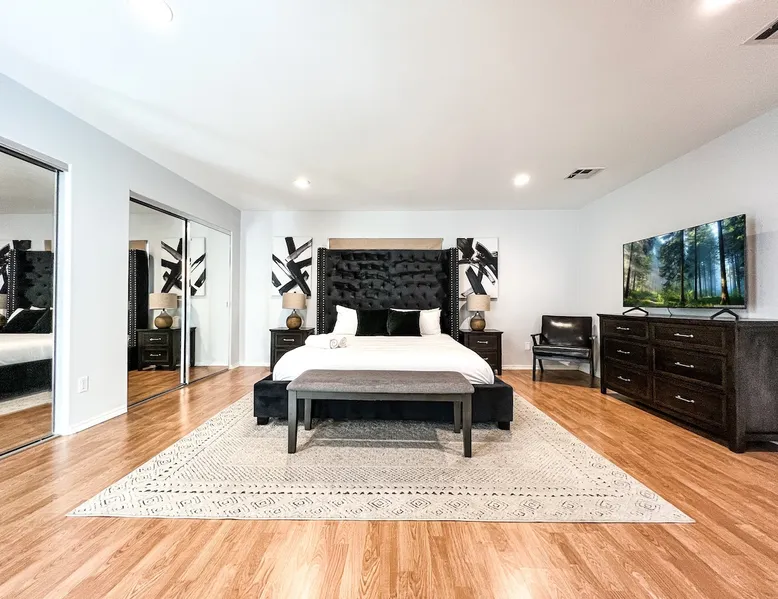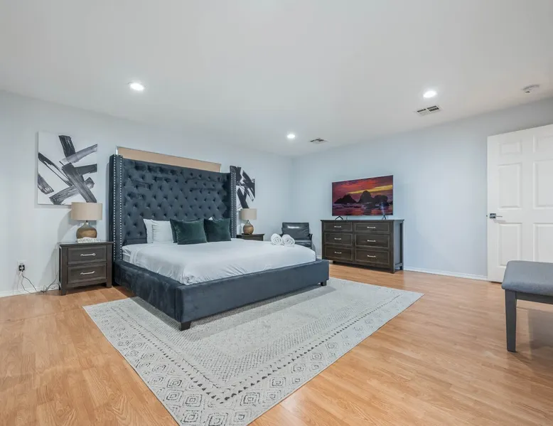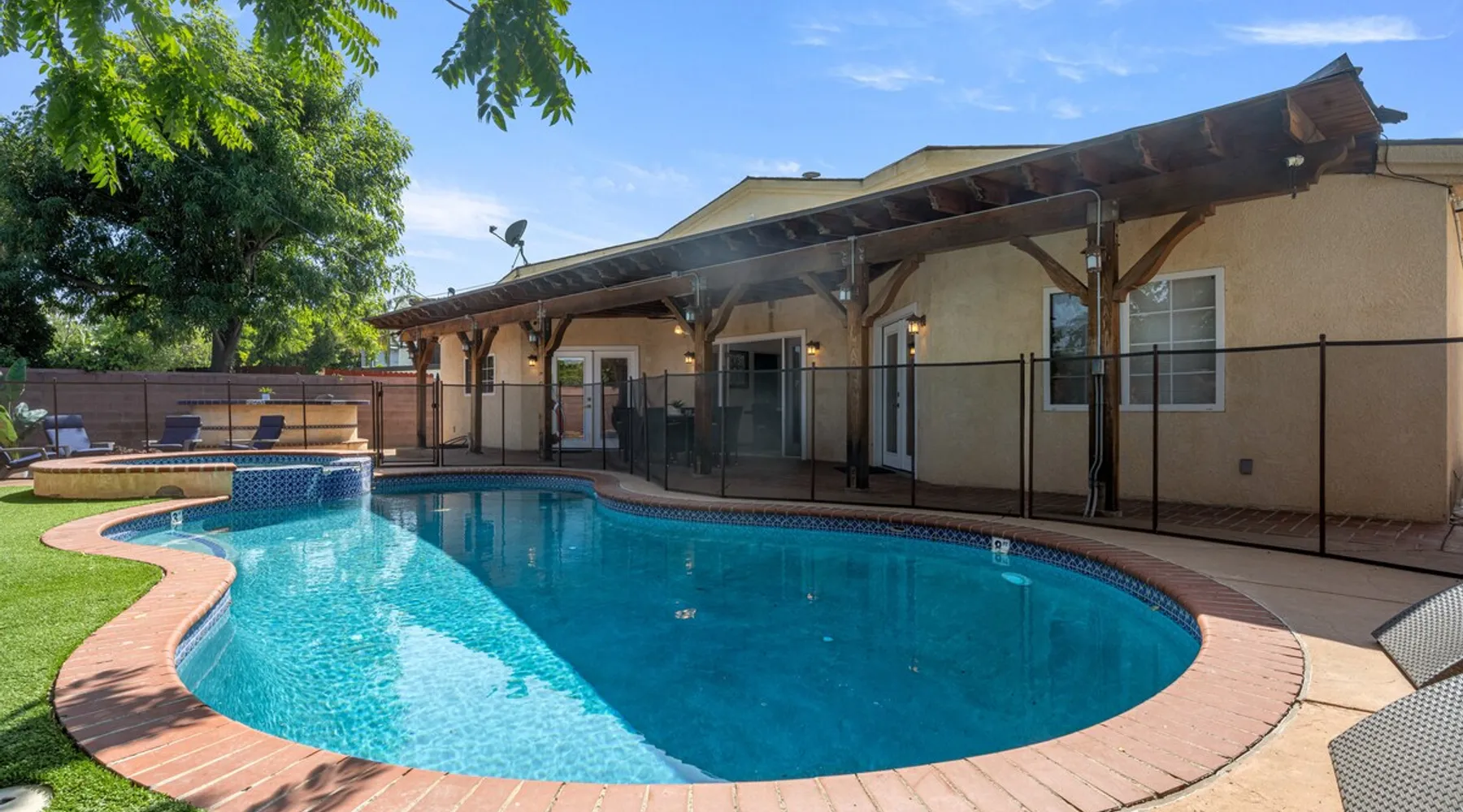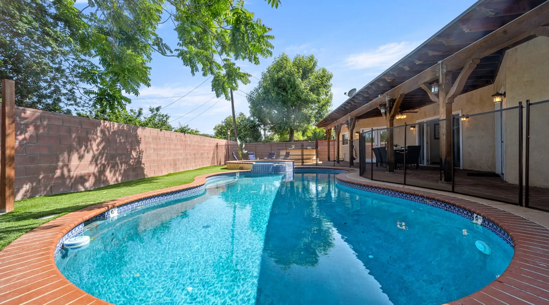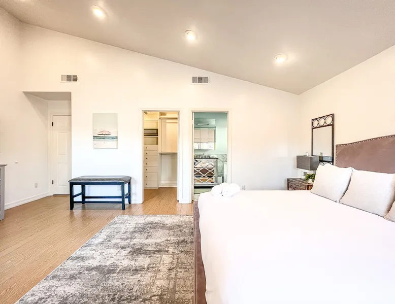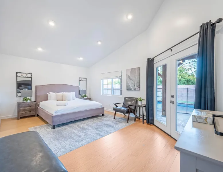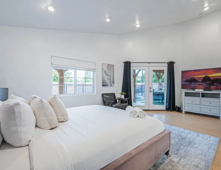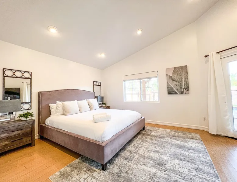 Bright & Elegant 4BR Retreat in Prime Tarzana Location Welcome to your stylish home away from home! This beautifully updated 4-bedroom, 3-bathroom residence is nestled in the heart of Tarzana, just minutes from top-rated dining, shopping, and entertainment. The space Step inside to soaring vaulted ceilings, abundant natural light, and brand-new living and dining room furniture that create a fresh, welcoming atmosphere. The home features two luxurious primary suites, each with king beds and remodeled en-suite bathrooms, offering comfort and privacy for families or groups traveling together. Outside, enjoy a sparkling heated pool and spa, perfect for relaxing or entertaining under the California sun. Fire up the BBQ grill for al fresco dining and unwind in the beautifully maintained outdoor space. Every detail has been thoughtfully designed for your comfort - from the stunning bathrooms to the pristine cleanliness throughout. Whether you're here for business or leisure, this stylish and happy space is the perfect Tarzana getaway. Offers both driveway and street parking for added convenience. Guest access Private home with gated pool and spa. Other things to note Utilities: an additional -$25-50day for 28-Day plus reservations Pool heating: Spa heating is $49 per session (1-4 hours) and pool heating (spa heating is automatically included) is $199 per day each day you booked; 4-day minimum. It takes a day to heat the pool so let us know 48 hrs. before check-in if you want the pool heated and at what temperature. *89-96 is recommended. You will be billed from the time the gas heater goes on. Please let us know what days and times you want the pool/spa heated so we can schedule it for your stay. BBQ: Please note we provide a BBQ grill and empty propane tanks. If you would like our staff to fill up the propane tank for you it's $69/per tank. Otherwise, the tanks can be filled at a nearby propane gas station or store for only the cost of the propane. Please let us know if you have any questions. PETS: additional fee of $250 minimum per pet. Additional Pet fees may apply, depending on the size and breed. Important Note for Late or Last-Minute Bookings: Thank you for your reservation! Please note that for bookings made after 4 PM or for same-day arrivals, we may not always have time to fully refresh the property before your check-in, depending on the timing of your reservation. If you notice anything that needs attention upon arrival, please don’t hesitate to message us — we’re happy to send someone out the next day to take care of it. Your comfort is our priority, and we’ll do our best to ensure you have a great stay. Registration Details HSR21-001668