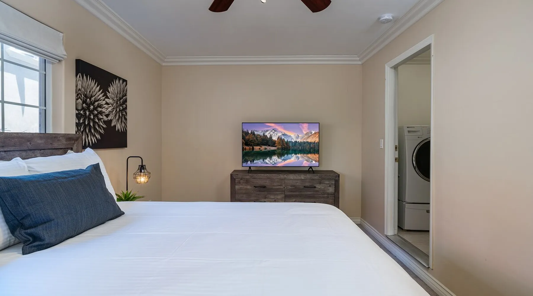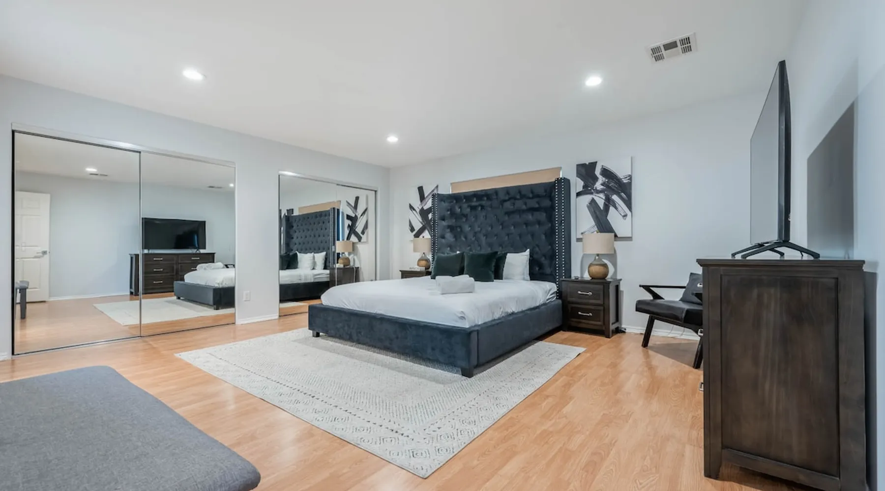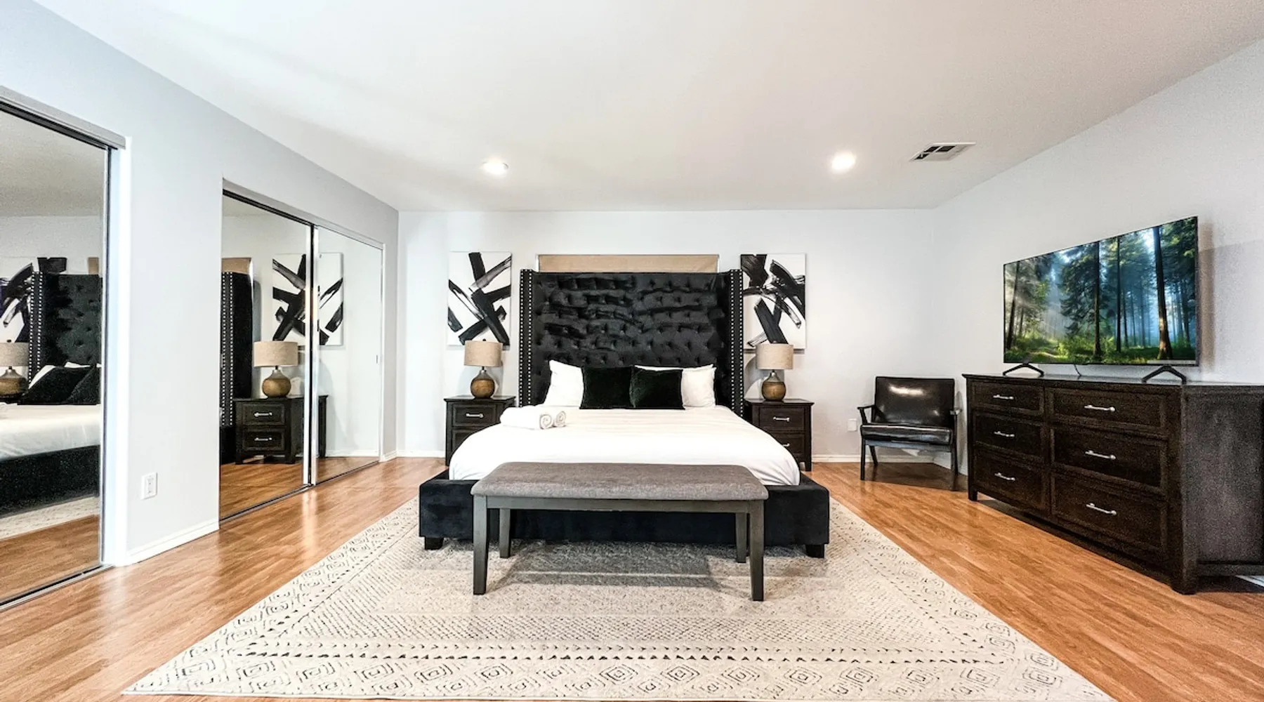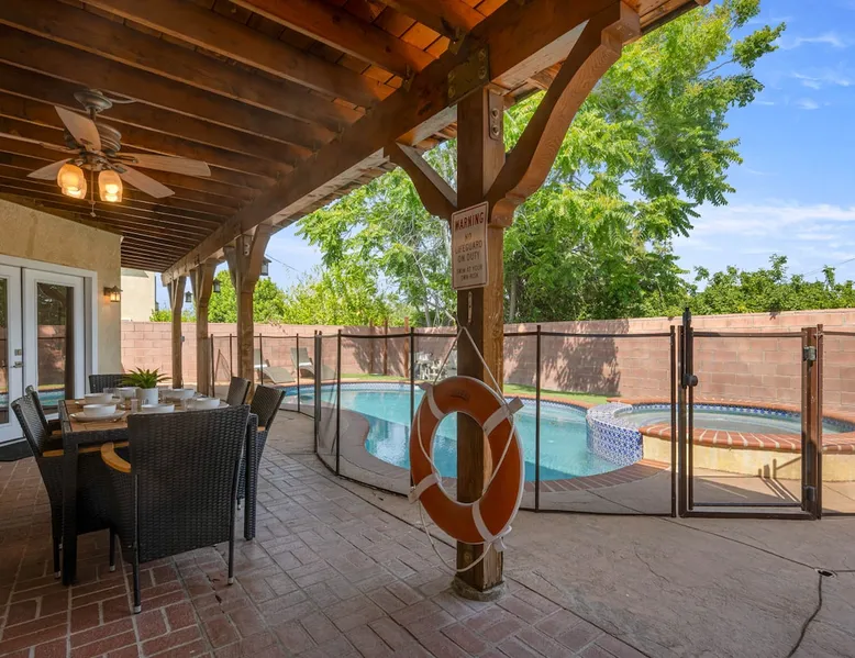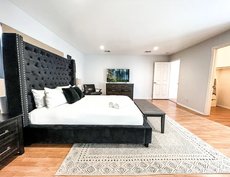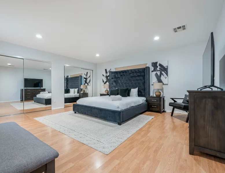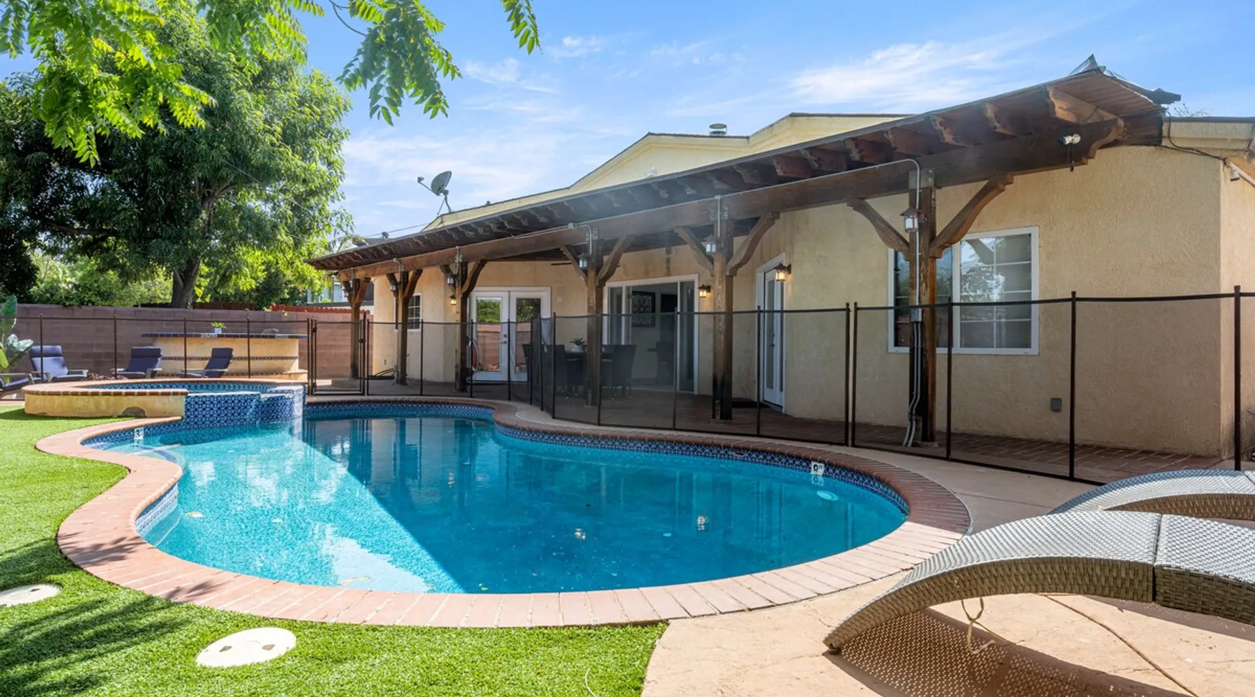 Bright & Elegant 4BR Retreat in Prime Tarzana Location Welcome to your stylish home away from home! This beautifully updated 4-bedroom, 3-bathroom residence is nestled in the heart of Tarzana, just minutes from top-rated dining, shopping, and entertainment. The space Step inside to soaring vaulted ceilings, abundant natural light, and brand-new living and dining room furniture that create a fresh, welcoming atmosphere. The home features two luxurious primary suites, each with king beds and remodeled en-suite bathrooms, offering comfort and privacy for families or groups traveling together. Outside, enjoy a sparkling heated pool and spa, perfect for relaxing or entertaining under the California sun. Fire up the BBQ grill for al fresco dining and unwind in the beautifully maintained outdoor space. Every detail has been thoughtfully designed for your comfort - from the stunning bathrooms to the pristine cleanliness throughout. Whether you're here for business or leisure, this stylish and happy space is the perfect Tarzana getaway. Offers both driveway and street parking for added convenience. Guest access Private home with gated pool and spa. Other things to note Utilities: an additional -$25-50day for 28-Day plus reservations Pool heating: Spa heating is $49 per session (1-4 hours) and pool heating (spa heating is automatically included) is $199 per day each day you booked; 4-day minimum. It takes a day to heat the pool so let us know 48 hrs. before check-in if you want the pool heated and at what temperature. *89-96 is recommended. You will be billed from the time the gas heater goes on. Please let us know what days and times you want the pool/spa heated so we can schedule it for your stay. BBQ: Please note we provide a BBQ grill and empty propane tanks. If you would like our staff to fill up the propane tank for you it's $69/per tank. Otherwise, the tanks can be filled at a nearby propane gas station or store for only the cost of the propane. Please let us know if you have any questions. PETS: additional fee of $250 minimum per pet. Additional Pet fees may apply, depending on the size and breed. Important Note for Late or Last-Minute Bookings: Thank you for your reservation! Please note that for bookings made after 4 PM or for same-day arrivals, we may not always have time to fully refresh the property before your check-in, depending on the timing of your reservation. If you notice anything that needs attention upon arrival, please don’t hesitate to message us — we’re happy to send someone out the next day to take care of it. Your comfort is our priority, and we’ll do our best to ensure you have a great stay. Registration Details HSR21-001668