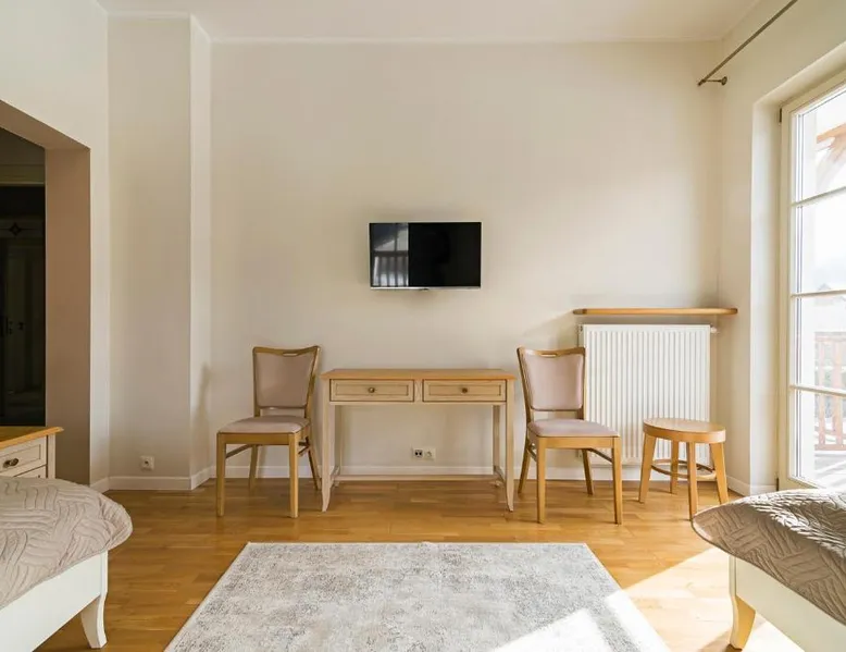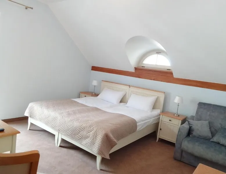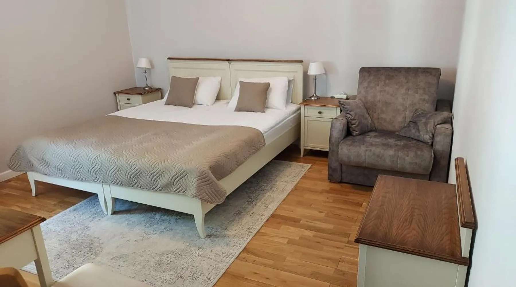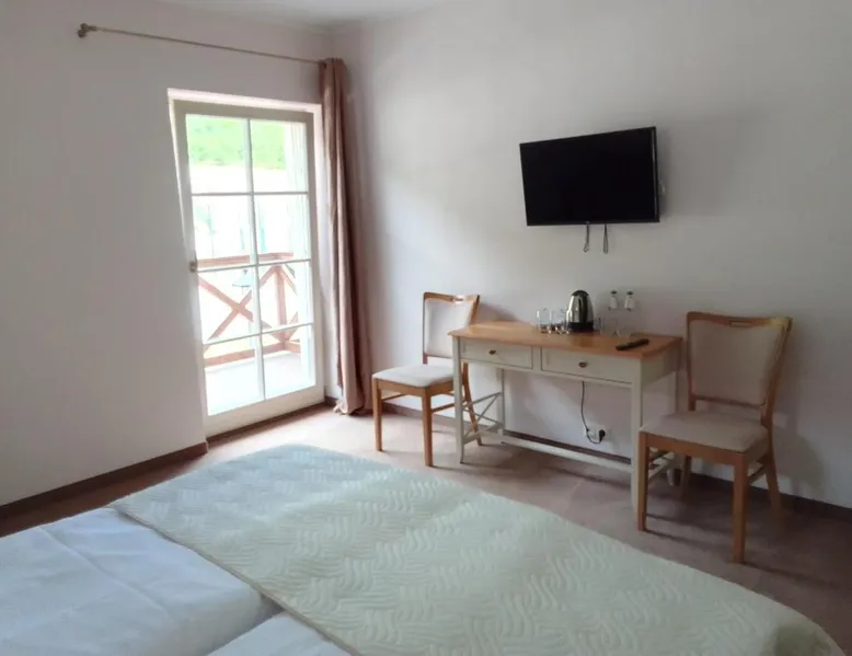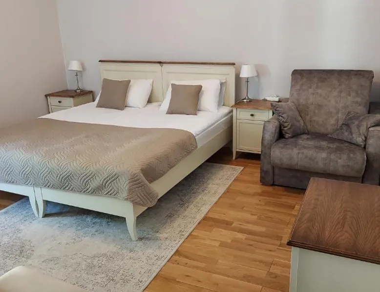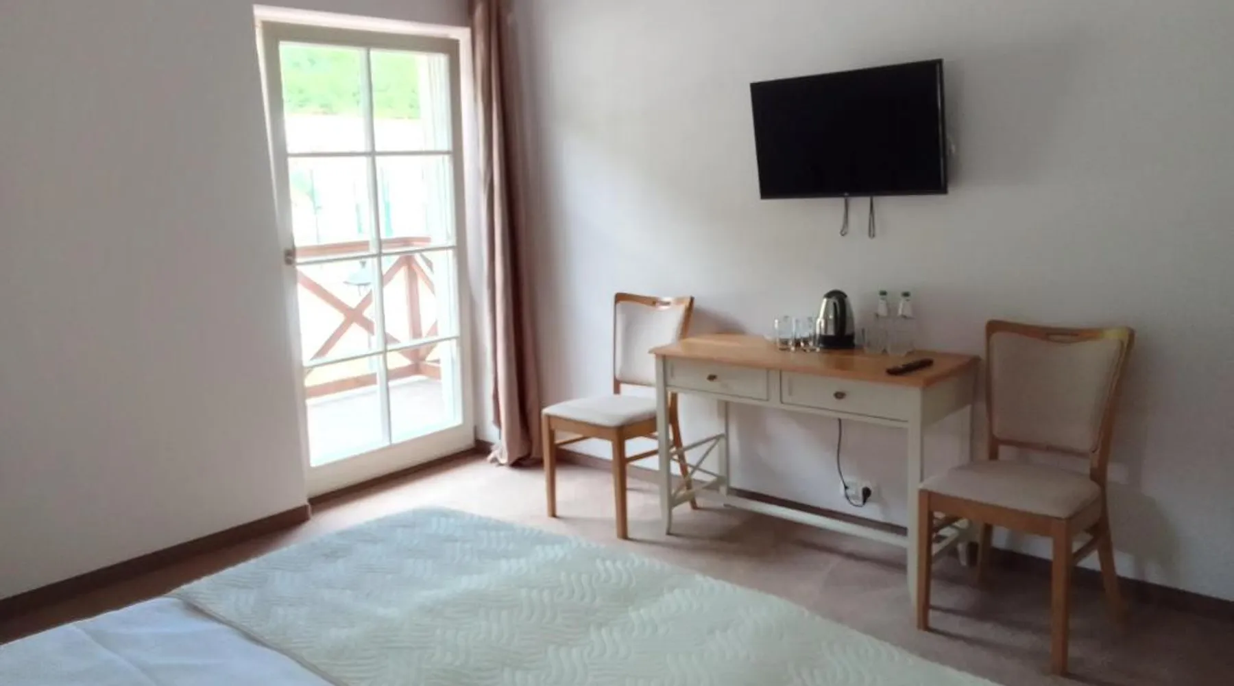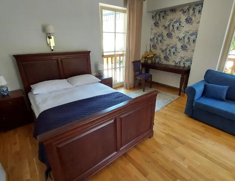 Comfortable Accommodations: Biały Dom Kazimierski in Kazimierz Dolny offers family rooms with private bathrooms, balconies, and garden views. Each room includes a work desk, TV, and wardrobe. Relaxing Facilities: Guests can enjoy a sun terrace, garden, and outdoor seating area. Free WiFi is available throughout the property. Convenient Location: Located less than 0.6 mi from Kazimierz Dolny Castle, the property is 36 mi from Radom-Sadkow Airport. Nearby attractions include the Kazimierz Dolny Museum and the Kazimierz Dolny Bridge. Guest Services: The property provides free on-site private parking, a breakfast buffet, and a host who speaks English and Polish. The double room provides a tea and coffee maker, a wardrobe, a balcony with city views as well as a private bathroom featuring a shower.