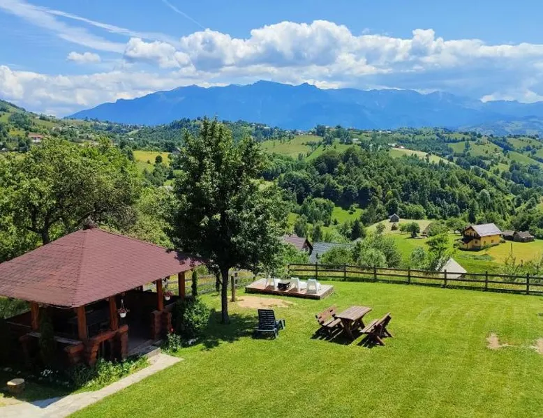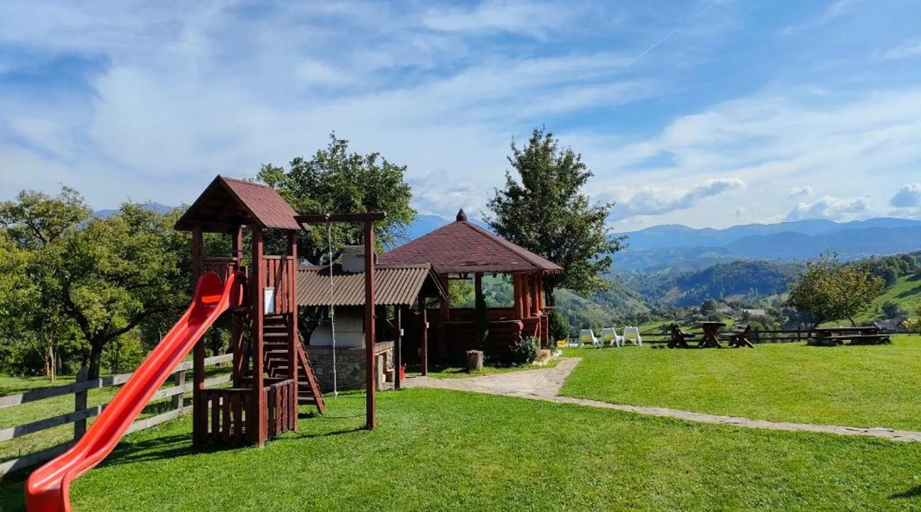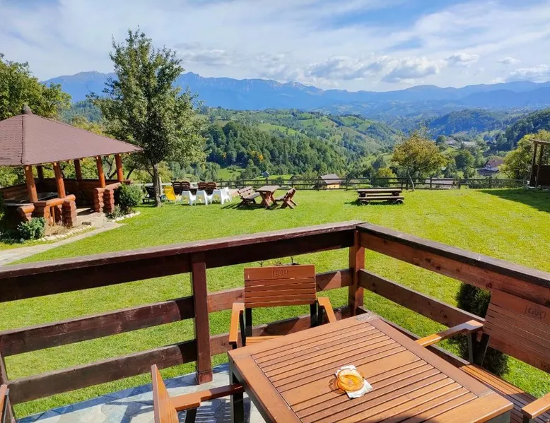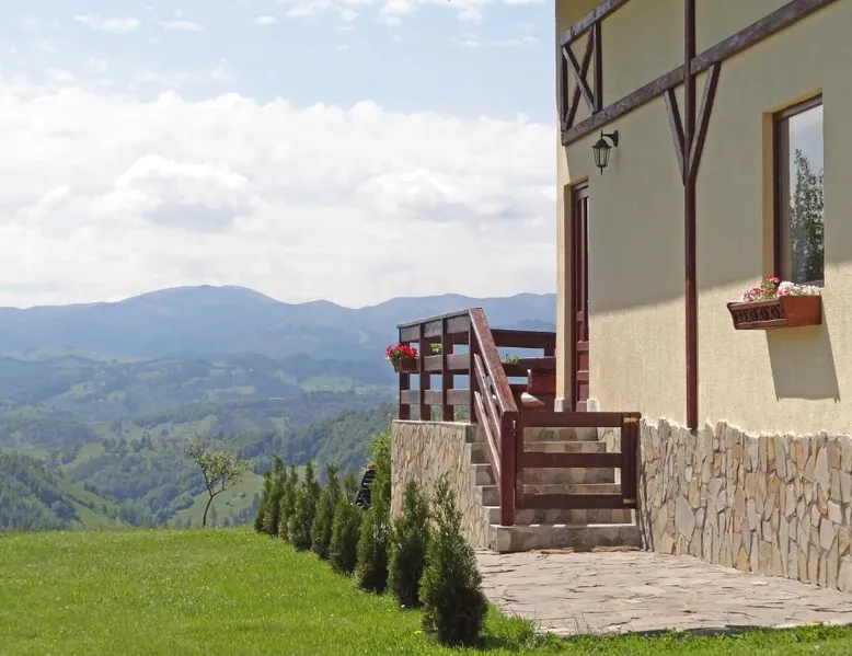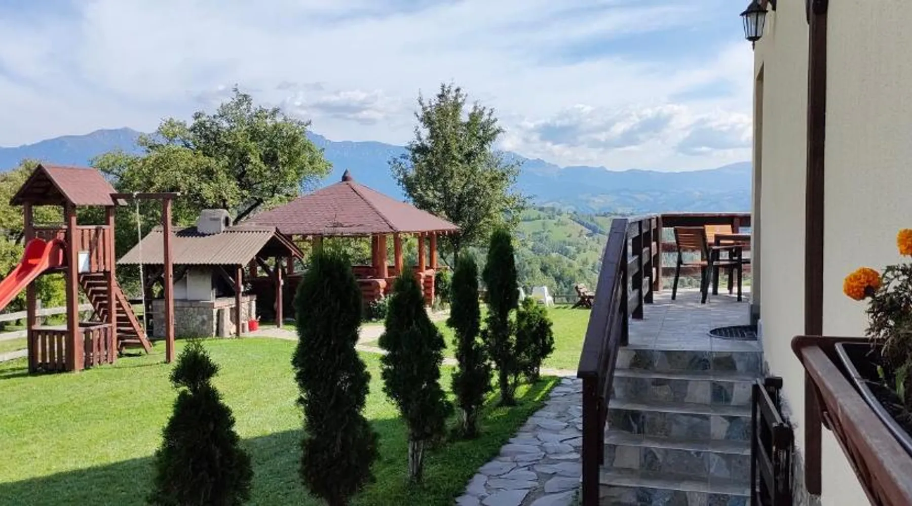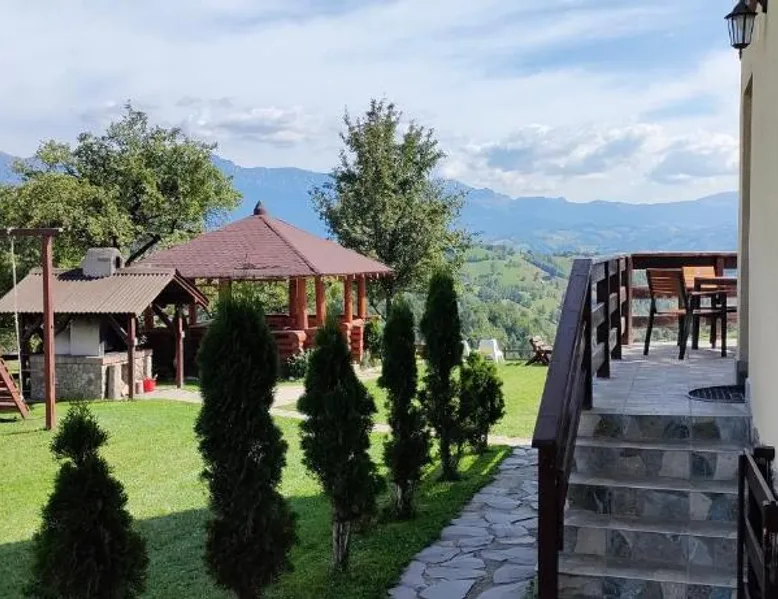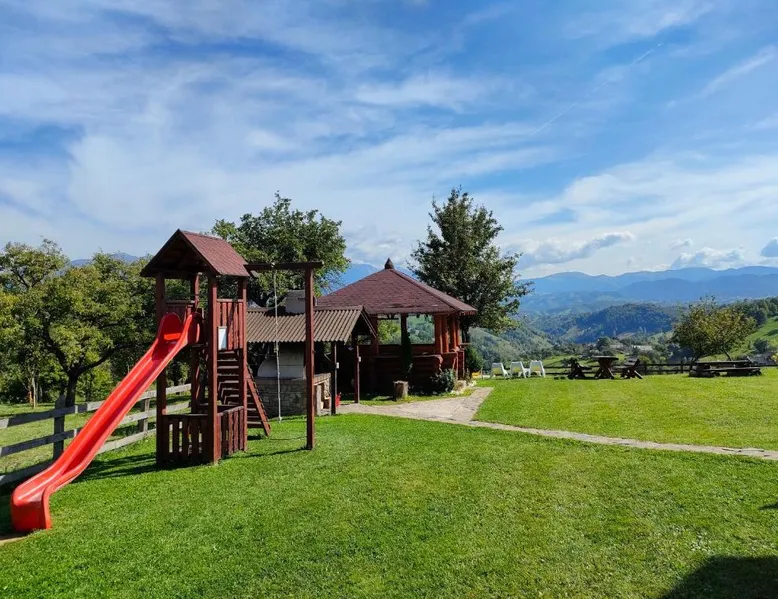 Elegant Accommodations: Pension Nea Marin in Măgura offers a villa with a sun terrace, garden, and free WiFi. Guests can relax in the outdoor fireplace or enjoy the outdoor seating area. Comfortable Amenities: The property features a lounge, shared kitchen, and family rooms. Additional amenities include a children's playground, barbecue facilities, and free on-site private parking. Local Attractions: Located 5.6 mi from Bran Castle and 88 mi from Sibiu International Airport, the villa provides easy access to Dino Parc (12 mi) and other nearby attractions. Guest Satisfaction: Highly rated by guests, Pension Nea Marin ensures a pleasant stay with its excellent facilities and scenic views. This villa is consisted of of 1 living room, 5 separate bedrooms and 6 bathrooms with a bath and free toiletries. The villa's kitchen is available for cooking and storing food. Featuring a terrace with garden views, this villa also offers a coffee machine and a flat-screen TV. The unit offers 6 beds.