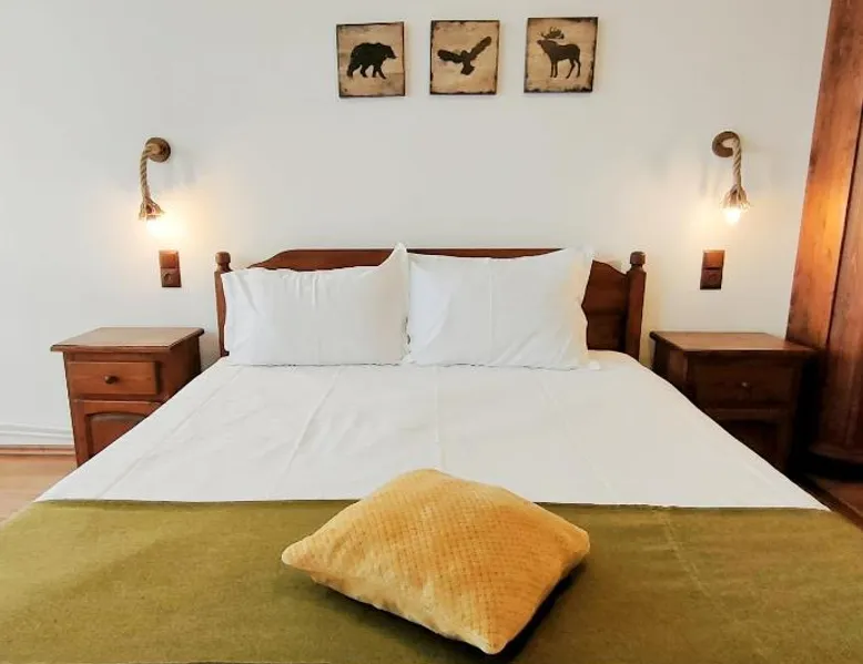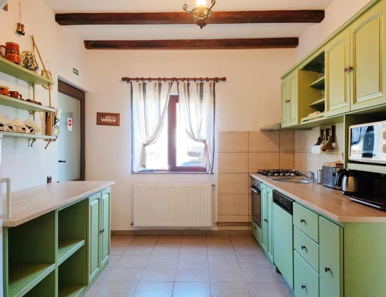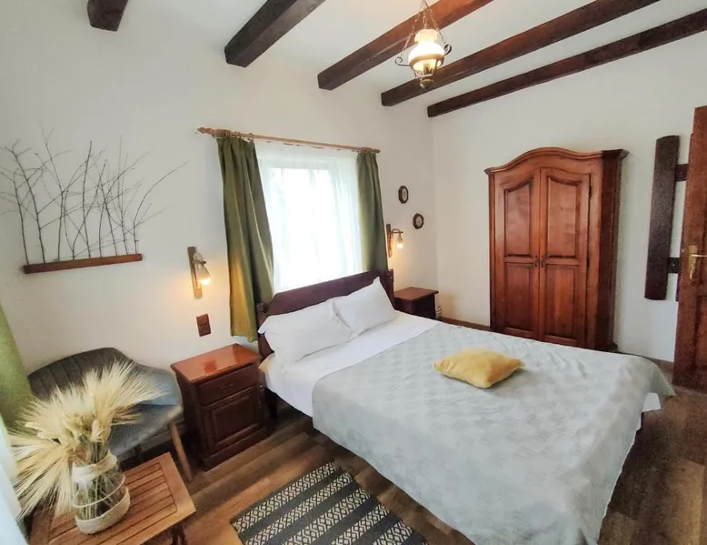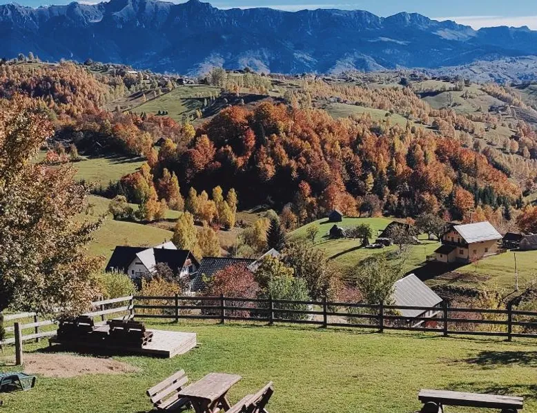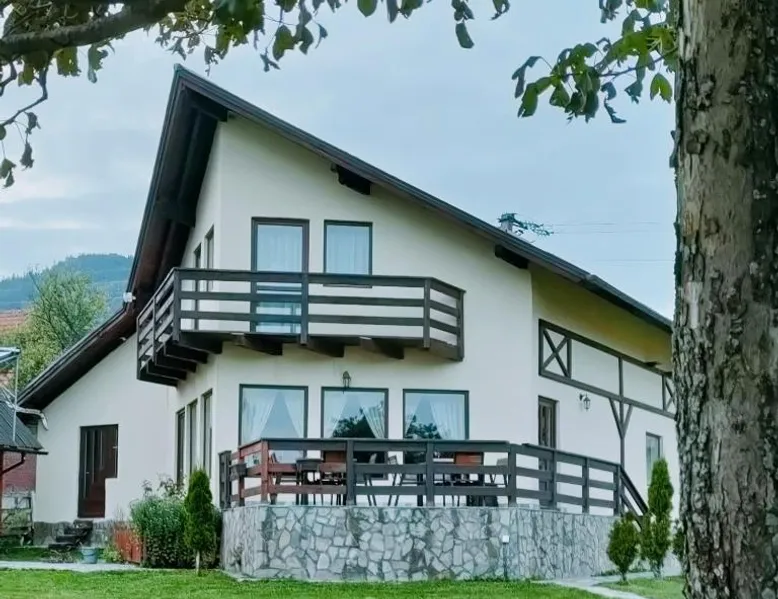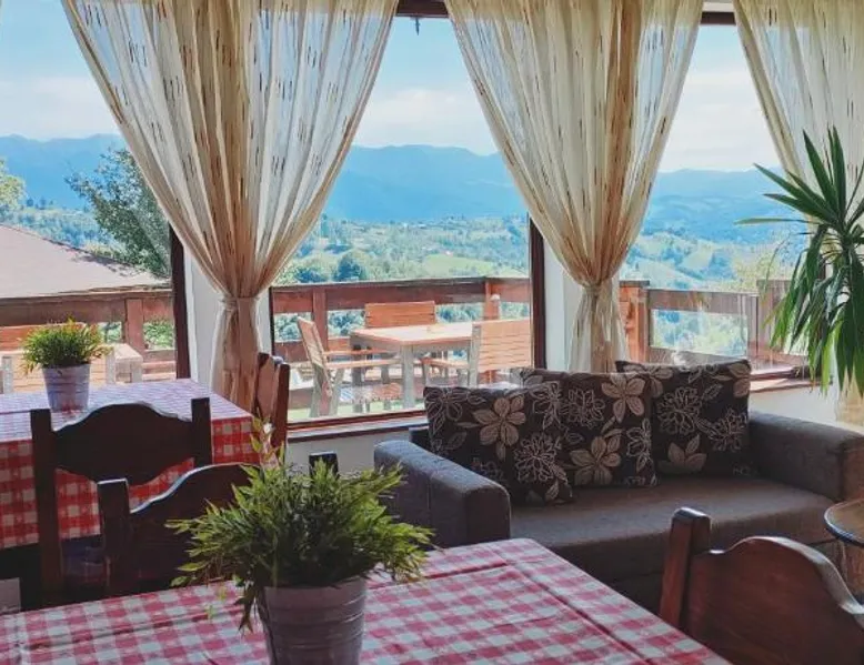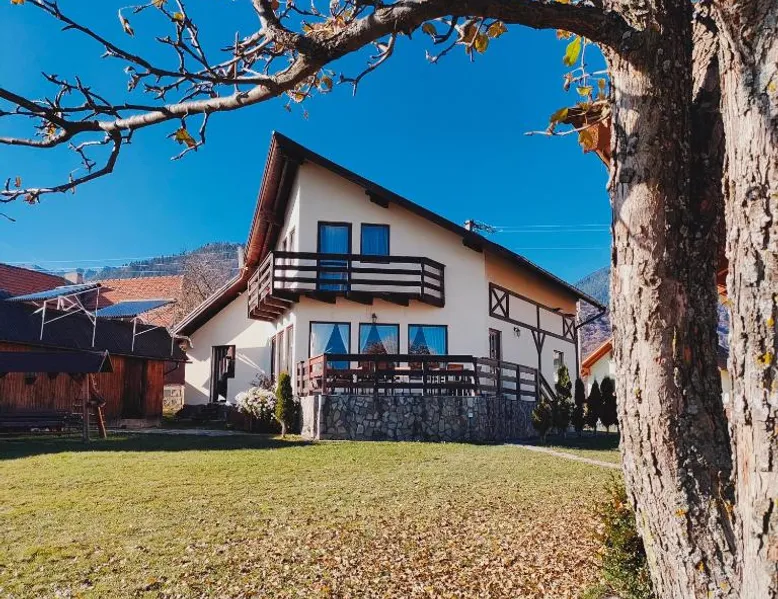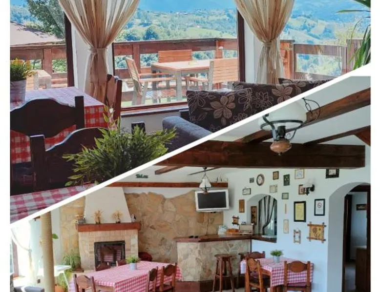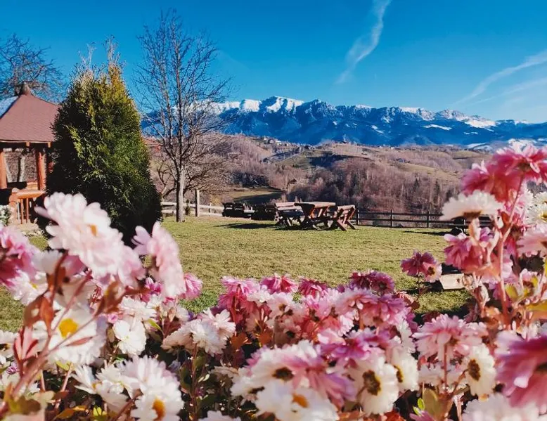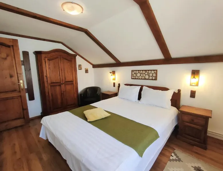 Elegant Accommodations: Pension Nea Marin in Măgura offers a villa with a sun terrace, garden, and free WiFi. Guests can relax in the outdoor fireplace or enjoy the outdoor seating area. Comfortable Amenities: The property features a lounge, shared kitchen, and family rooms. Additional amenities include a children's playground, barbecue facilities, and free on-site private parking. Local Attractions: Located 5.6 mi from Bran Castle and 88 mi from Sibiu International Airport, the villa provides easy access to Dino Parc (12 mi) and other nearby attractions. Guest Satisfaction: Highly rated by guests, Pension Nea Marin ensures a pleasant stay with its excellent facilities and scenic views. This villa is consisted of of 1 living room, 5 separate bedrooms and 6 bathrooms with a bath and free toiletries. The villa's kitchen is available for cooking and storing food. Featuring a terrace with garden views, this villa also offers a coffee machine and a flat-screen TV. The unit offers 6 beds.
