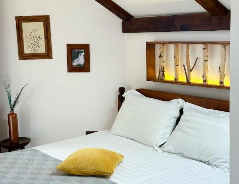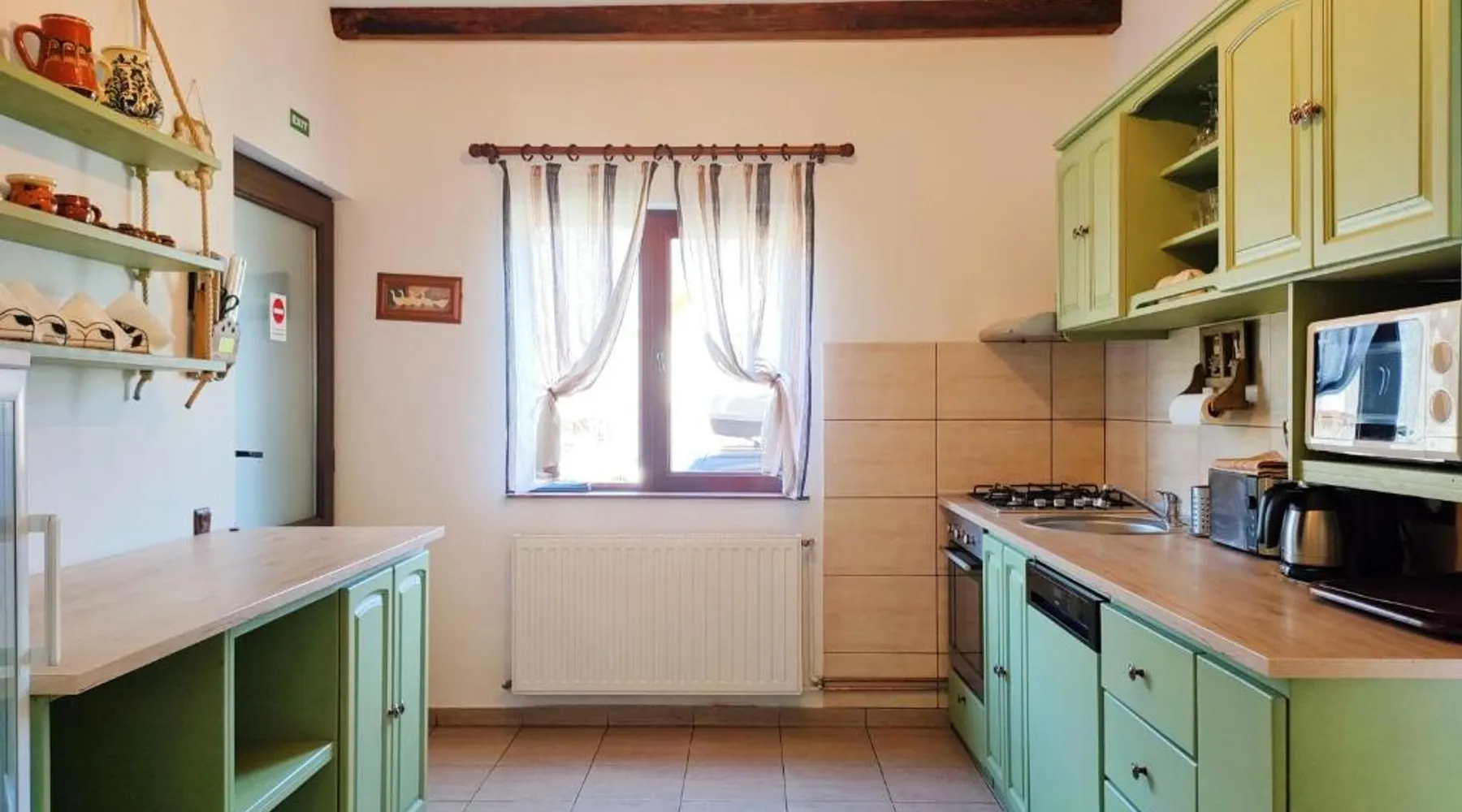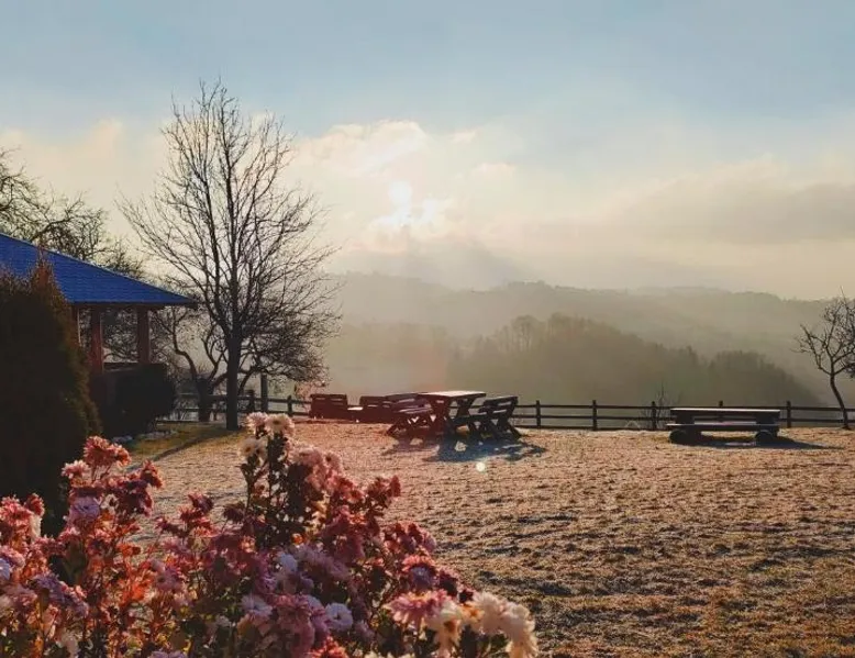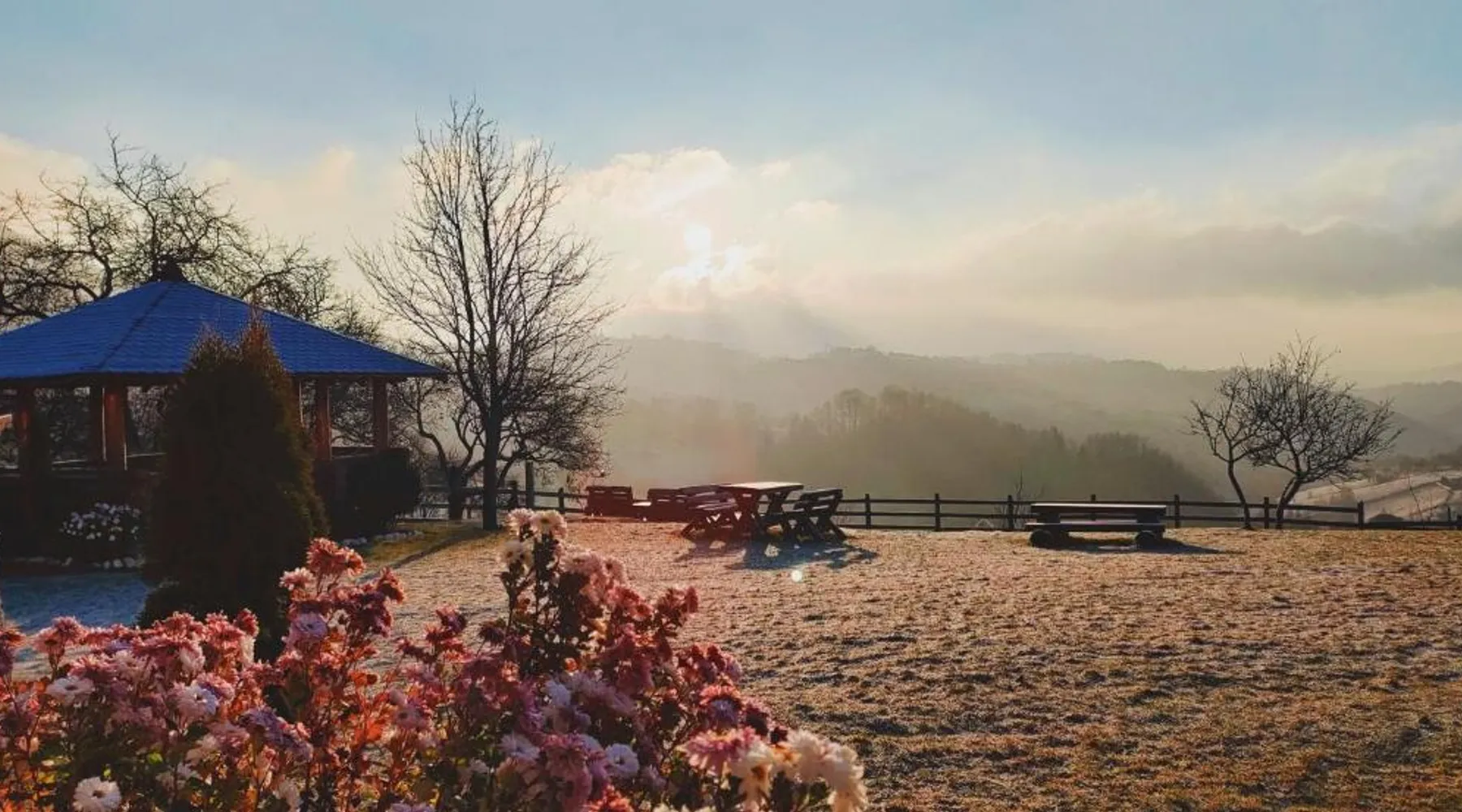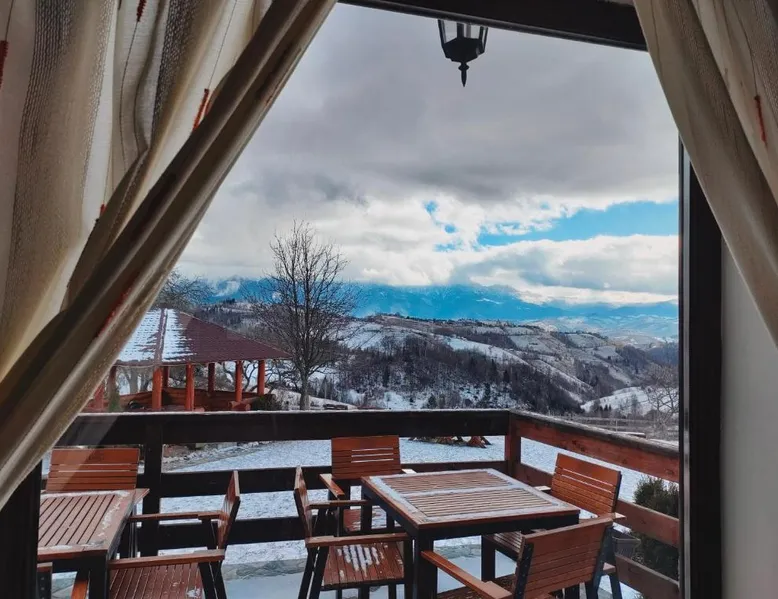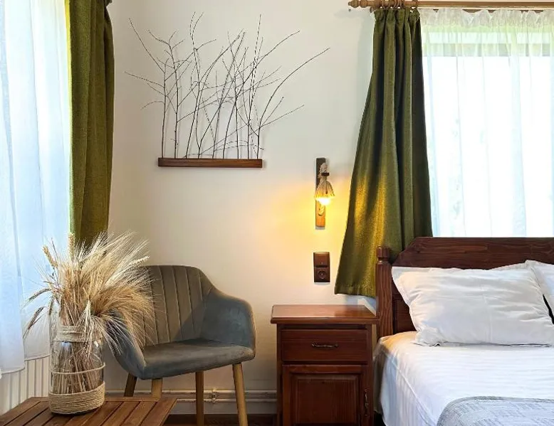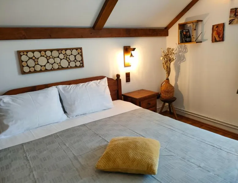 Elegant Accommodations: Pension Nea Marin in Măgura offers a villa with a sun terrace, garden, and free WiFi. Guests can relax in the outdoor fireplace or enjoy the outdoor seating area. Comfortable Amenities: The property features a lounge, shared kitchen, and family rooms. Additional amenities include a children's playground, barbecue facilities, and free on-site private parking. Local Attractions: Located 5.6 mi from Bran Castle and 88 mi from Sibiu International Airport, the villa provides easy access to Dino Parc (12 mi) and other nearby attractions. Guest Satisfaction: Highly rated by guests, Pension Nea Marin ensures a pleasant stay with its excellent facilities and scenic views. This villa is consisted of of 1 living room, 5 separate bedrooms and 6 bathrooms with a bath and free toiletries. The villa's kitchen is available for cooking and storing food. Featuring a terrace with garden views, this villa also offers a coffee machine and a flat-screen TV. The unit offers 6 beds.