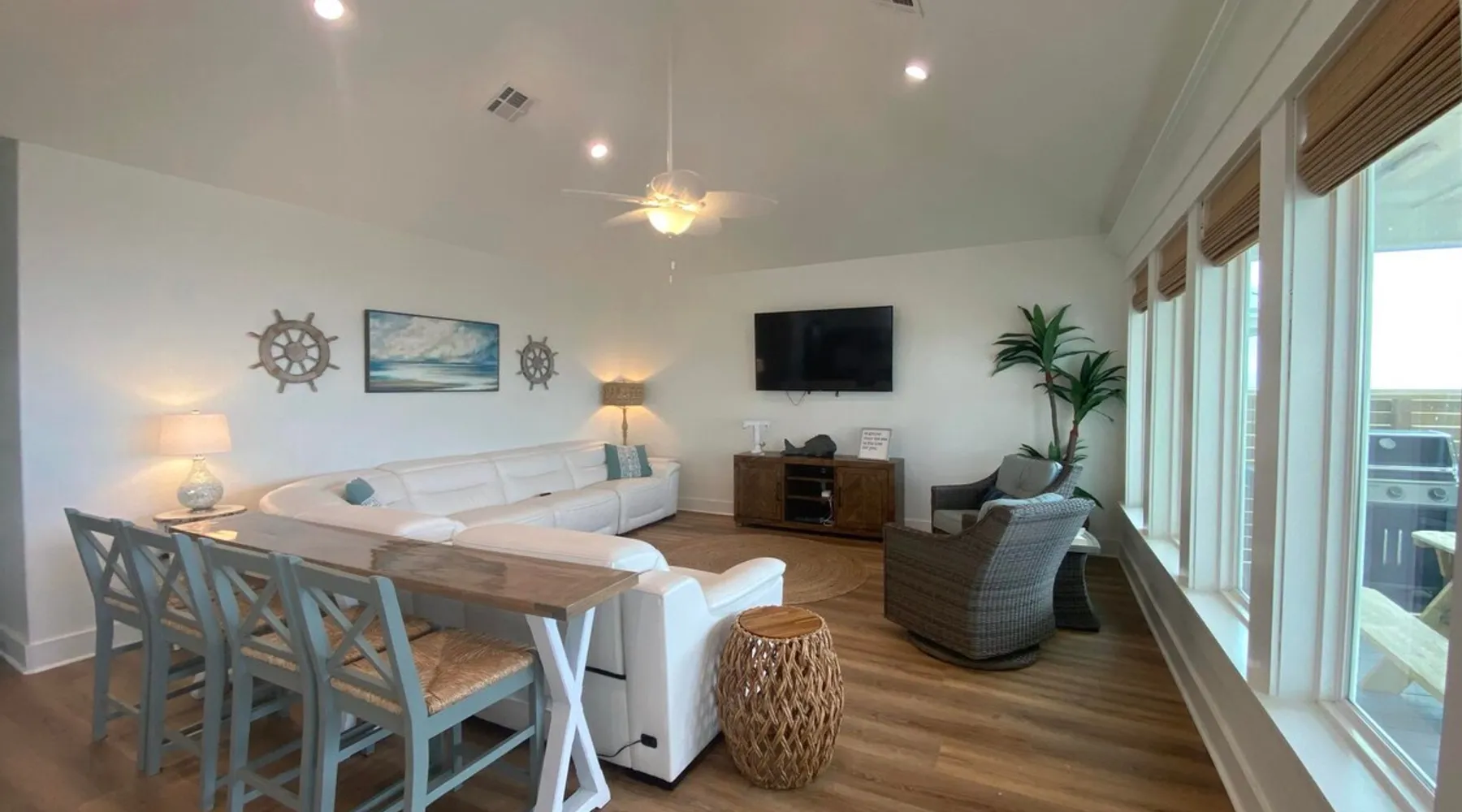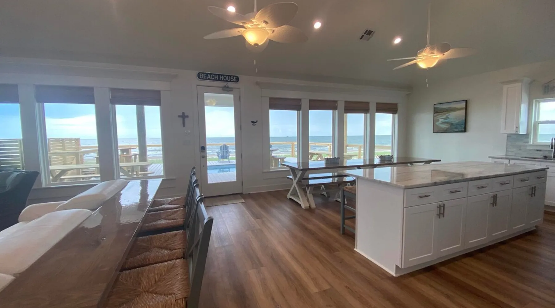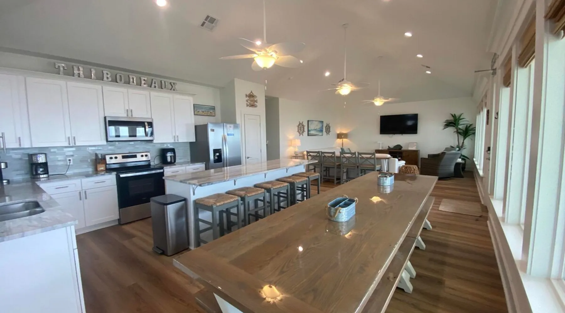 Newly constructed beach house with a pool on the deck. The space Welcome to Sportsman's paradise! The Thibodeaux is the namesake of the infamous Thibodeaux himself who built it for his sweet Clotile after winning the million-dollar scratch-off. He promised God if he won, he’d give a quarter to charity. A man of his word, he did. With the rest of the $999,999.75 he built his dream camp. There is a lot he’s proud of about this camp but most of all it’s the pool deck overlooking the Gulf. It’s perfect for relaxing, night and day! Thib’s wife Clotile never leaves (except when it's rented). “You may have quit the oil field but you’re still my deckhand,” Clotele tells Thibodeaux when asking him to fetch beer and snacks. The kitchen is large and great for the Cajun experience where cooking is essential. According to Thibodeaux, the kitchen is perfect for all 4 seasons. Duck, rabbit, deer, and squirrel. Unlike Thibodeaux, the living area and bedrooms can support a large family. With four bedrooms, each with bathrooms, and double queen size beds, you can pack this place out comfortably. Thibodeaux fears he has spoiled Clotile too much with this camp. It’s a great spot on the island with Beach access.