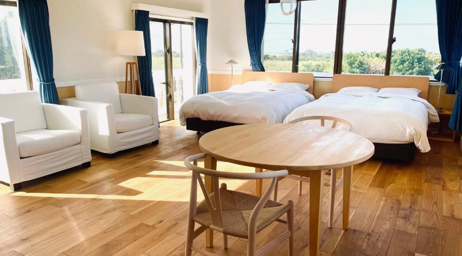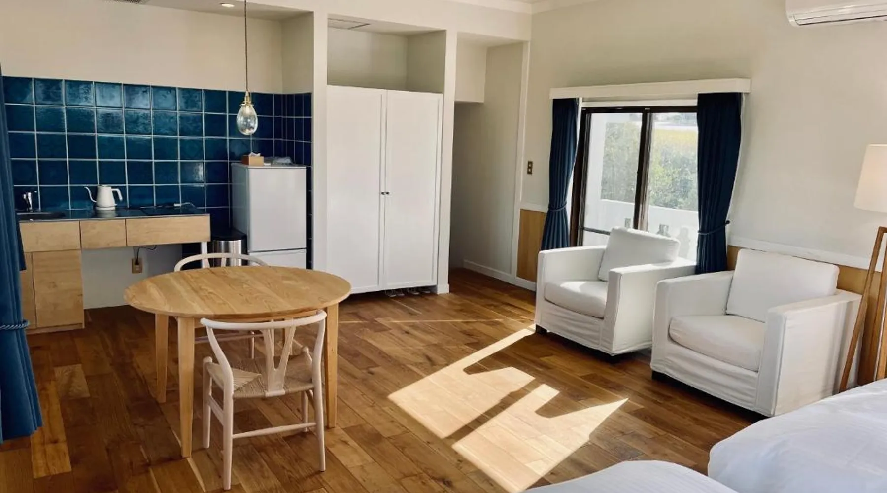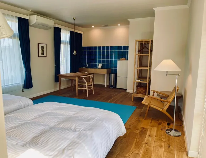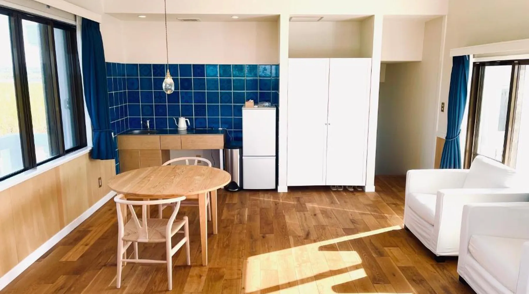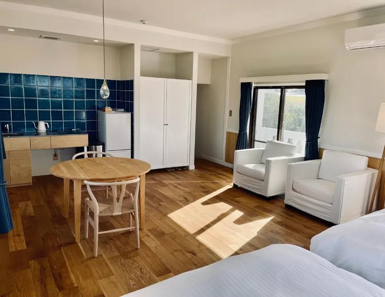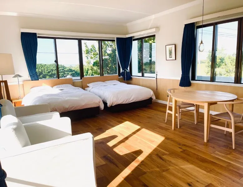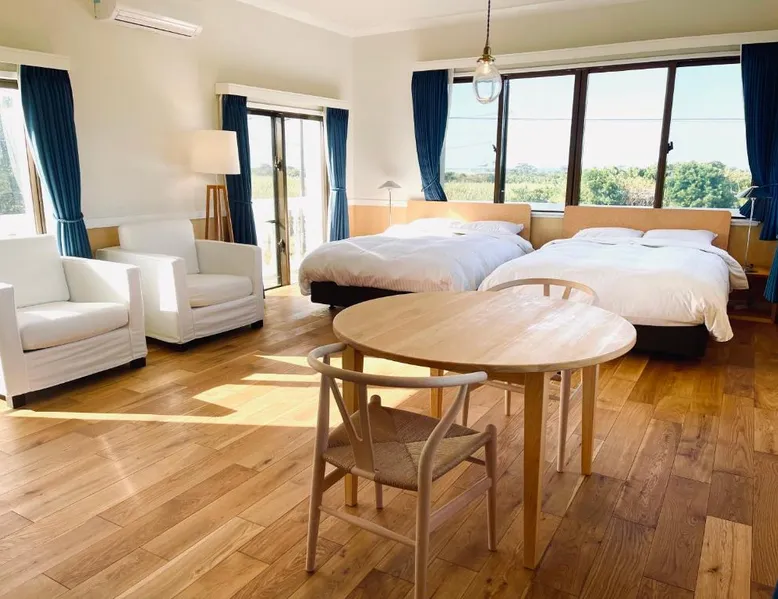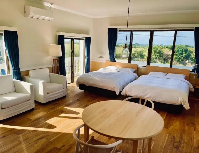 Comfortable Accommodations: Azzurra in Miyakojima offers recently renovated guest house accommodations with private bathrooms. Each room features sea views, air-conditioning, and a balcony or terrace. Essential Facilities: Guests enjoy a garden, terrace, and free WiFi. Additional amenities include a 24-hour front desk, housekeeping, laundry, breakfast in the room, and free on-site private parking. Local Attractions: Located 3.1 mi from Miyako Airport, Azzurra is near Ueno German Culture Village (1.9 mi), Kurima Bridge (4.3 mi), and Miyakojima Marine Park (12 mi). Guests can make meals in the kitchen that features a stovetop, a refrigerator, kitchenware and an electric kettle. The spacious twin room features air conditioning, a private entrance, as well as a private bathroom boasting a bath and a shower. The unit has 2 beds.