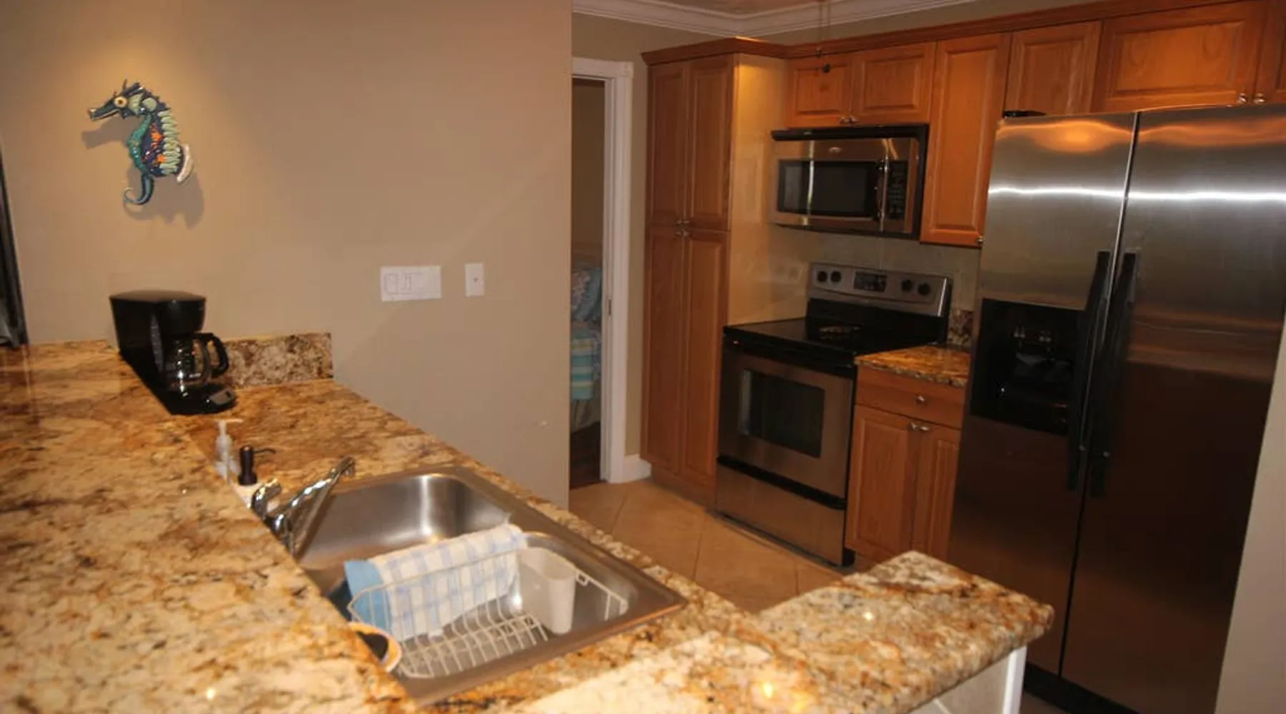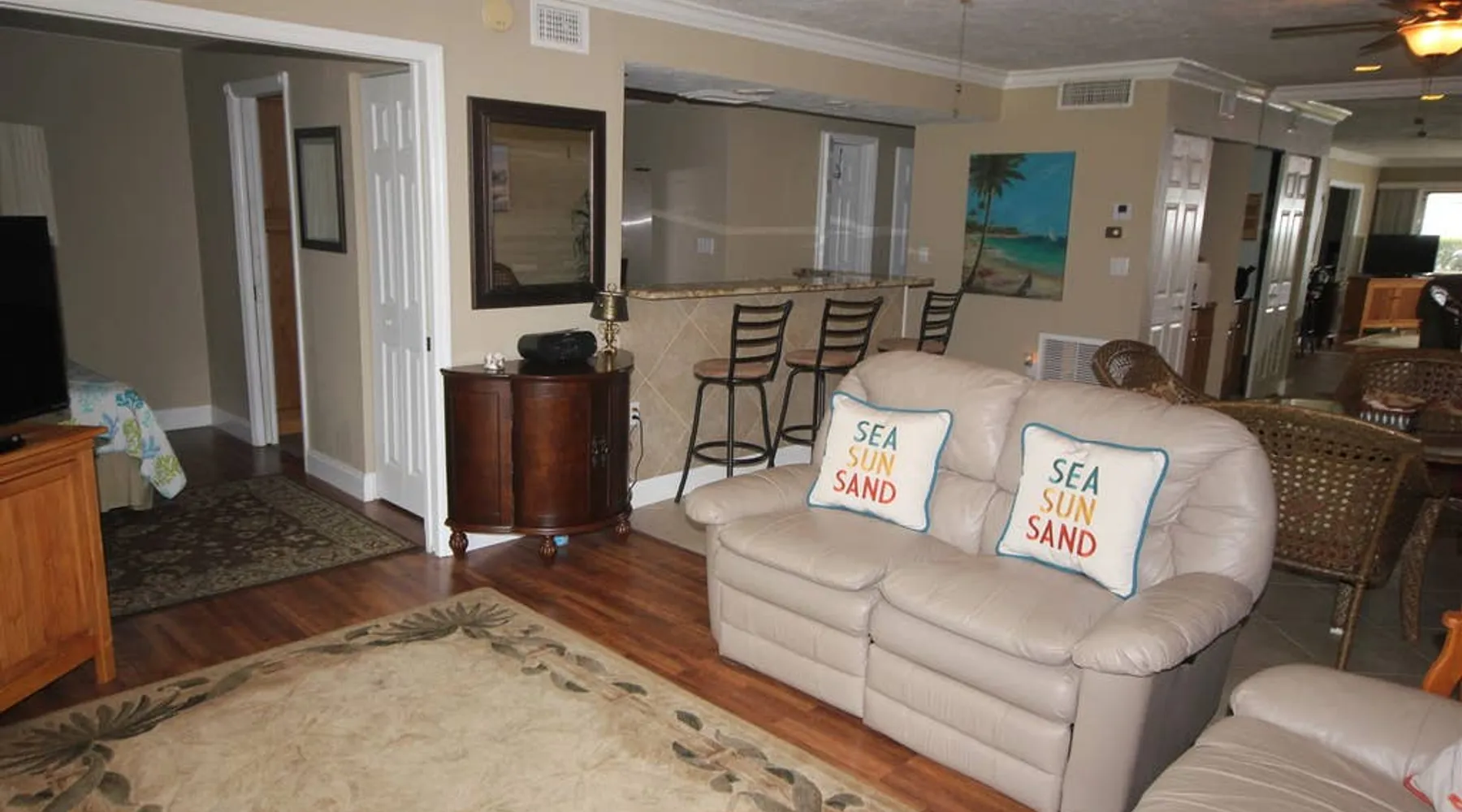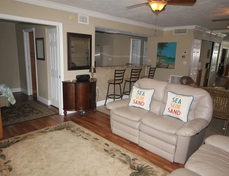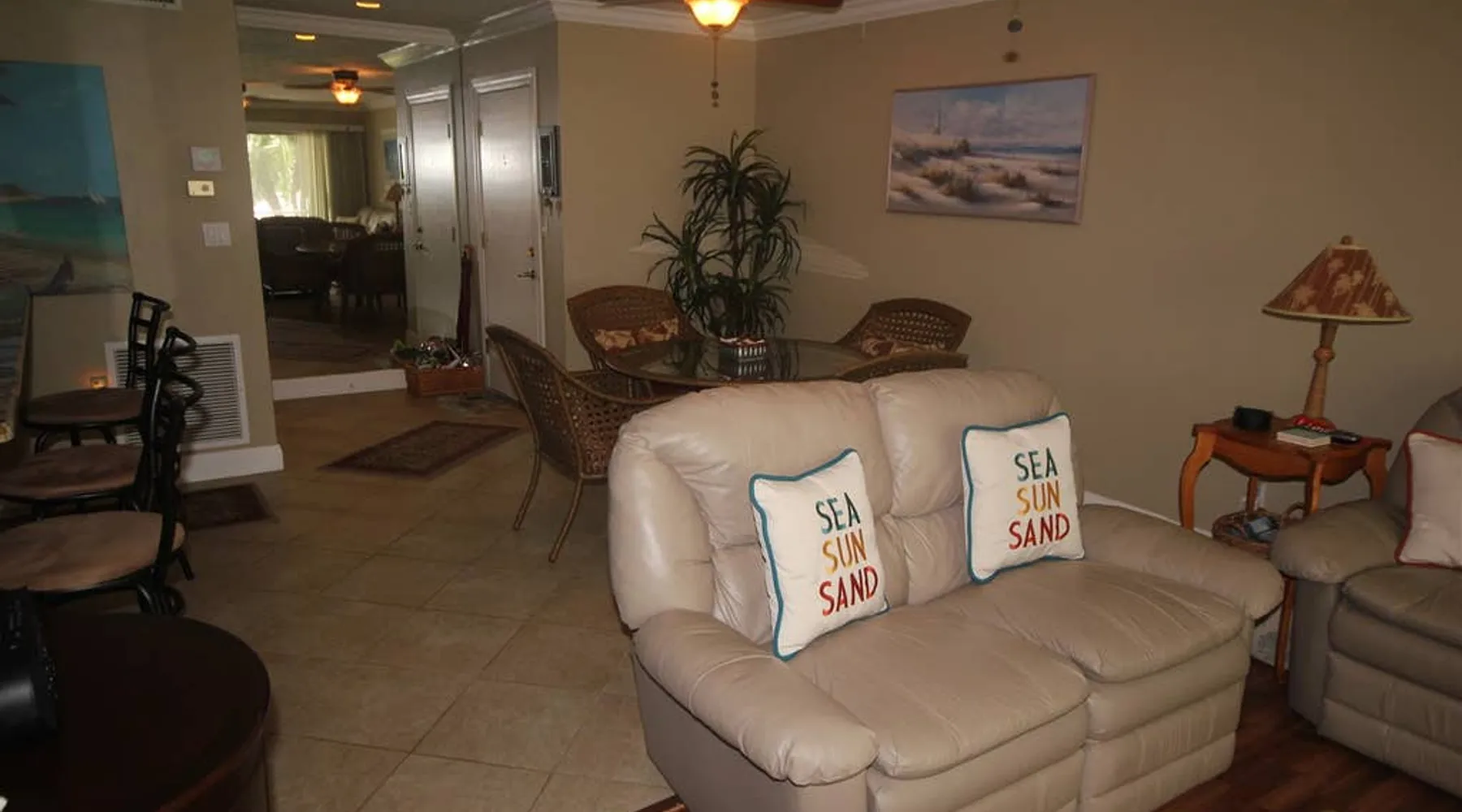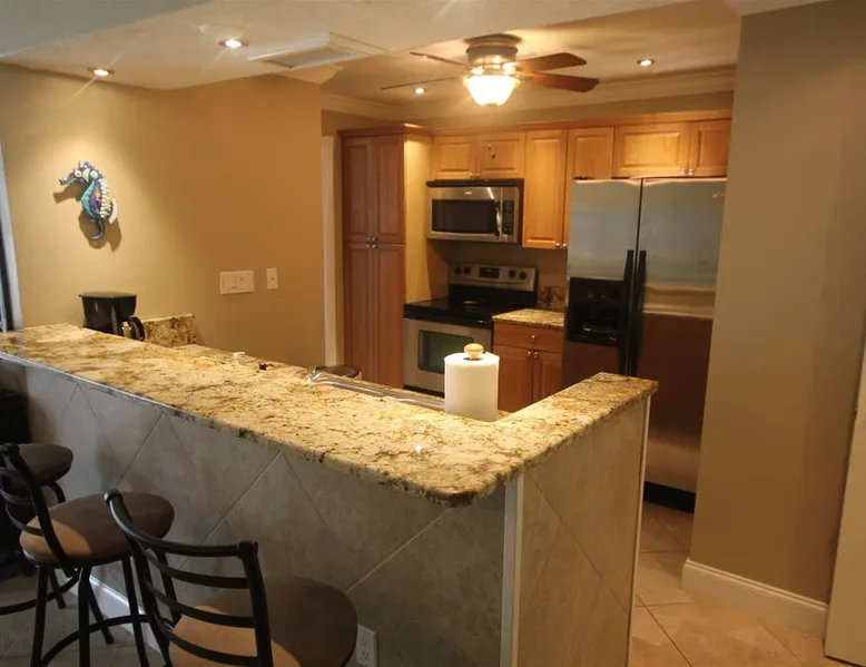 Experience relaxed comfort in our beach-to-bay condo, centrally located in Siesta Key. Start your day with breakfast or enjoy an evening glass of wine on your private screened-in patio. Prepare meals in the full kitchen or venture 1.5 miles to Siesta Key Village for dining and entertainment. Enjoy full access to Peppertree Bay’s amenities, including two swimming pools, a fitness room, a fishing pier, and private beach access to the powdery white sands of Siesta Beach. The space Welcome to your perfect getaway! This cozy and inviting condo is designed to offer a comfortable stay for up to four guests. The main bedroom features a plush queen bed and a TV for your entertainment, while the second bedroom is ideal for friends or family, offering two single beds and another TV. The unit boasts 1.5 bathrooms, providing convenience and privacy for all guests. Unwind in the comfortable living room sitting area, equipped with a TV, perfect for movie nights or relaxing after a day of exploring. The fully equipped kitchen allows you to prepare delicious meals and features a countertop seating area for casual dining or socializing while cooking. Enjoy your morning coffee or evening drinks on the screened-in patio, furnished with cozy seating. For your convenience, the condo includes full laundry facilities, making extended stays easy and hassle-free. Stay connected with wireless internet throughout the unit. This condo exudes a warm and homey feel, making it the perfect home away from home for your stay. Book now and create lasting memories in this charming space! Guest access As our guest, you will have full access to the entire condo, ensuring a private and comfortable stay. Beyond the condo, you'll enjoy a variety of fantastic amenities provided by Peppertree Bay: Two Swimming Pools: Take a refreshing dip in either of Peppertree Bay's two swimming pools, perfect for relaxation and fun. Fitness Room: Stay active and maintain your workout routine in the well-equipped fitness room. Intracoastal Waterway Views: Savor the stunning views of the intracoastal waterway, adding a serene backdrop to your stay. Fishing Pier: Spend a leisurely afternoon fishing off the private pier. Private Beach Access: Enjoy exclusive access to a beautiful private beach, complete with beach chairs for your convenience. Tropical Landscaping: Wander through lush tropical landscaping, private walk paths, and discover quiet seating areas perfect for relaxation. BBQ Areas: Utilize the BBQ areas for a delightful outdoor dining experience. These amenities are designed to enhance your stay, offering both relaxation and recreational options right at your doorstep. Enjoy the best of Peppertree Bay and make the most of your stay! Other things to note All Reservations Require a Vacation Rental Management Agreement & Condo Application that Requires Condo Association Approval.