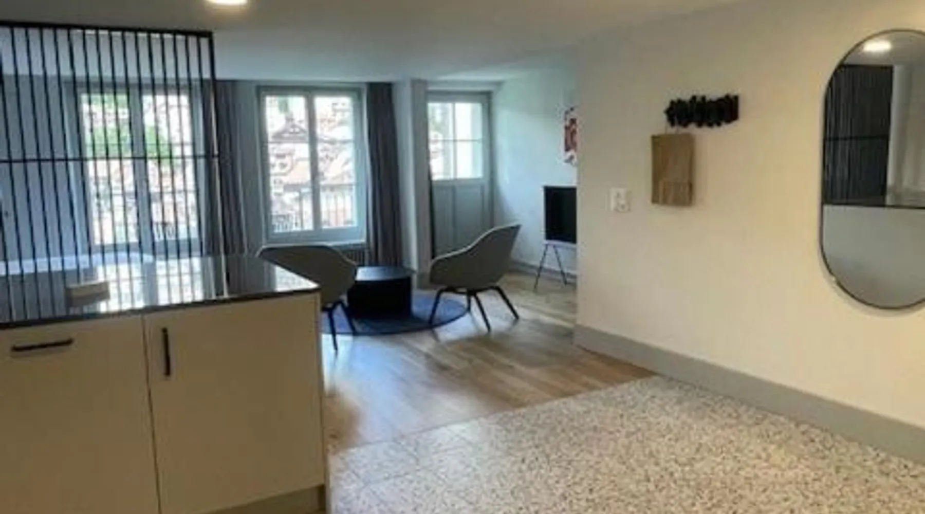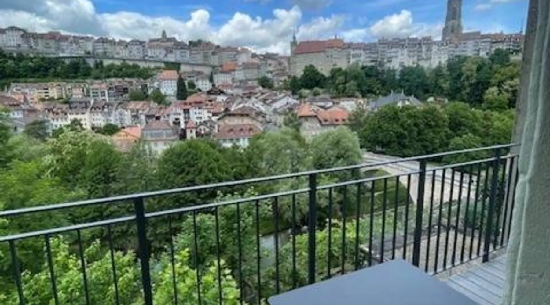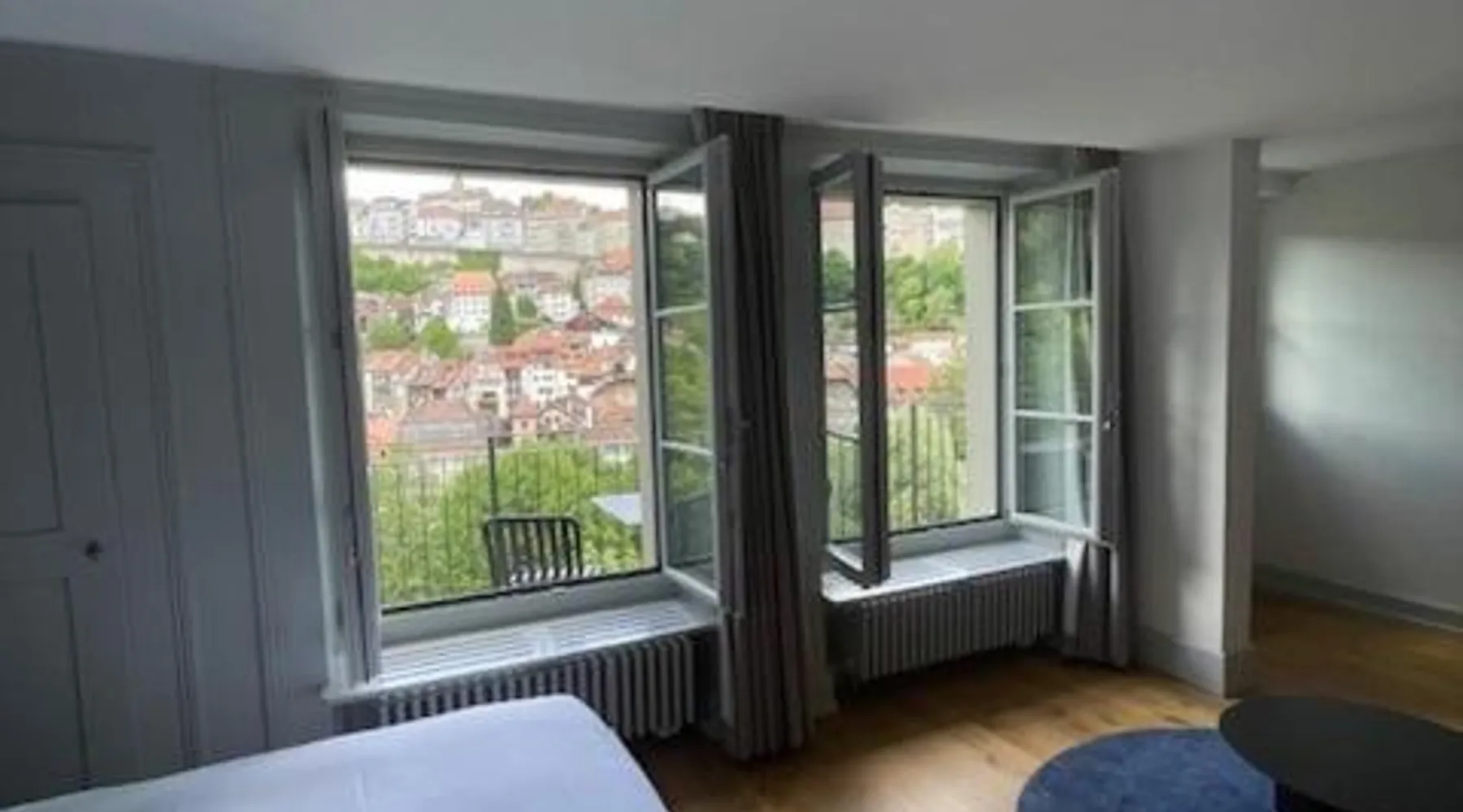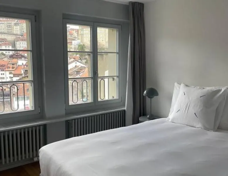 Historic Setting: La Sauvage in Friborg offers a recently renovated aparthotel housed in a historic building. The property features private bathrooms, fully equipped kitchens, and modern amenities. Dining Experience: Guests can enjoy French cuisine at the on-site restaurant, offering a modern and romantic ambiance. The restaurant serves vegetarian, gluten-free, and dairy-free options, complemented by local specialties and fresh pastries. Comfort and Services: The aparthotel provides free WiFi, a coffee shop, family rooms, and full-day security. Additional services include breakfast in the room, express check-in and check-out, room service, and luggage storage. Location and Attractions: Located 23 mi from Bern-Belp Airport, La Sauvage is near Forum Friborg (1.9 mi) and Bern railway station (20 mi). Guests can enjoy walking tours and explore nearby attractions such as Münster Cathedral and Bern Clock Tower. This apartment is consisted of of 1 living room, 1 separate bedroom and 1 bathroom with a shower. Meals can be prepared in the well-fitted kitchen, which is fitted with a stovetop, a refrigerator, a dishwasher and kitchenware. The apartment offers a flat-screen TV with satellite channels, soundproof walls, a coffee machine, a seating area as well as city views. The unit offers 1 bed.