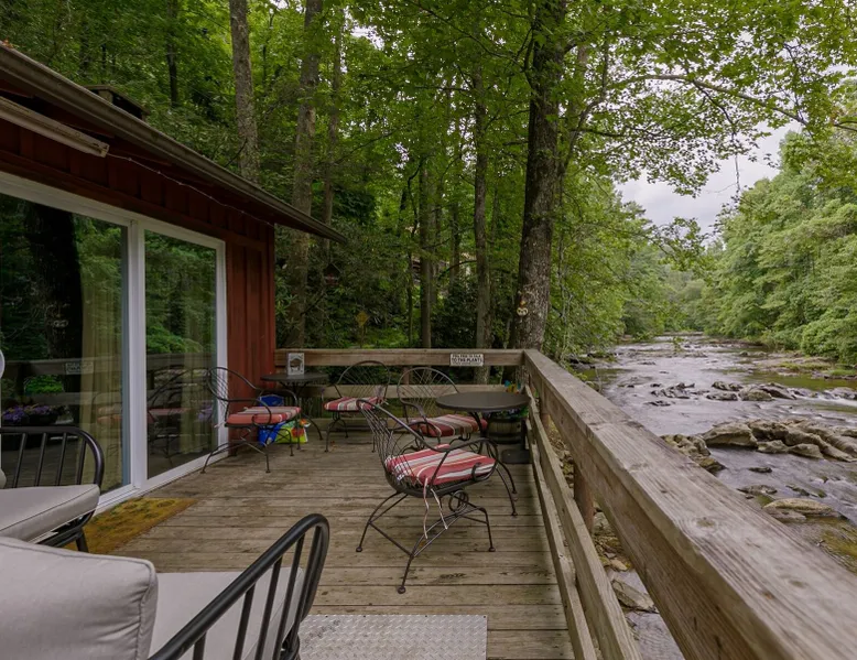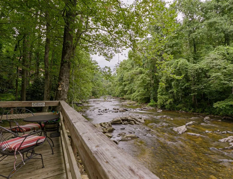 Guests will truly enjoy River Haus - a rustic one bedroom, one bath cabin, while listening to the sounds of the river running from the open deck overhanging the river. A fisherman's paradise - trout fishing right in front of your own cabin - catch your limit on the beautiful clear waters of the fast flowing Chattahoochee River. The property is close to the Chattahoochee Wildlife Management Preserve. This perfect spot for rest and relaxation is located close to nature and the headwaters of the Upper Chattahoochee River. There is something for everyone in the area- fishing, hiking, river tubing, or horseback riding at Sunburst Stables or just relaxing on the deck. It is located only 1 mile from the vibrant center of Helen, GA. It's the perfect vacation cabin for a couple. River Haus is lovingly cared for and features a cozy stone fireplace, pine paneling throughout, and a well equipped kitchen with everything you need. It is located just minutes from the shopping and dining of the delightful alpine village of Helen, GA and a short drive to the spectacular Anna Ruby Falls, Dukes Creek Falls, Smithgall Woods Center and Unicoi State Park.