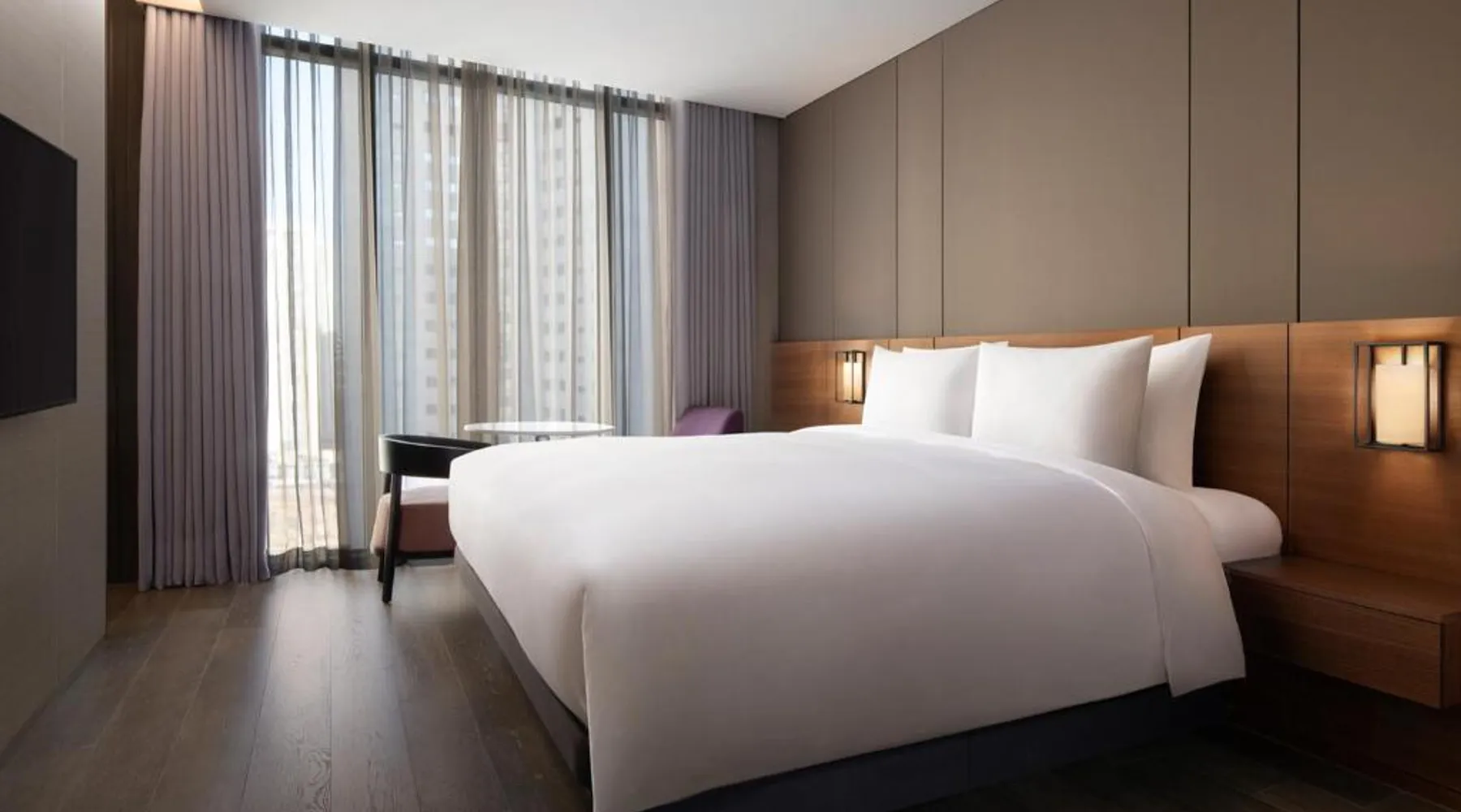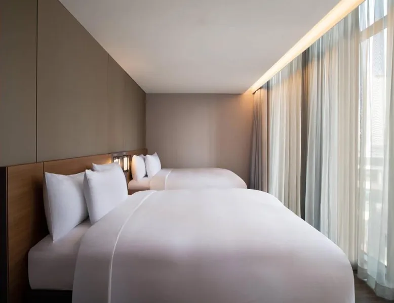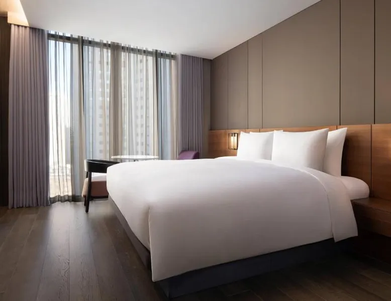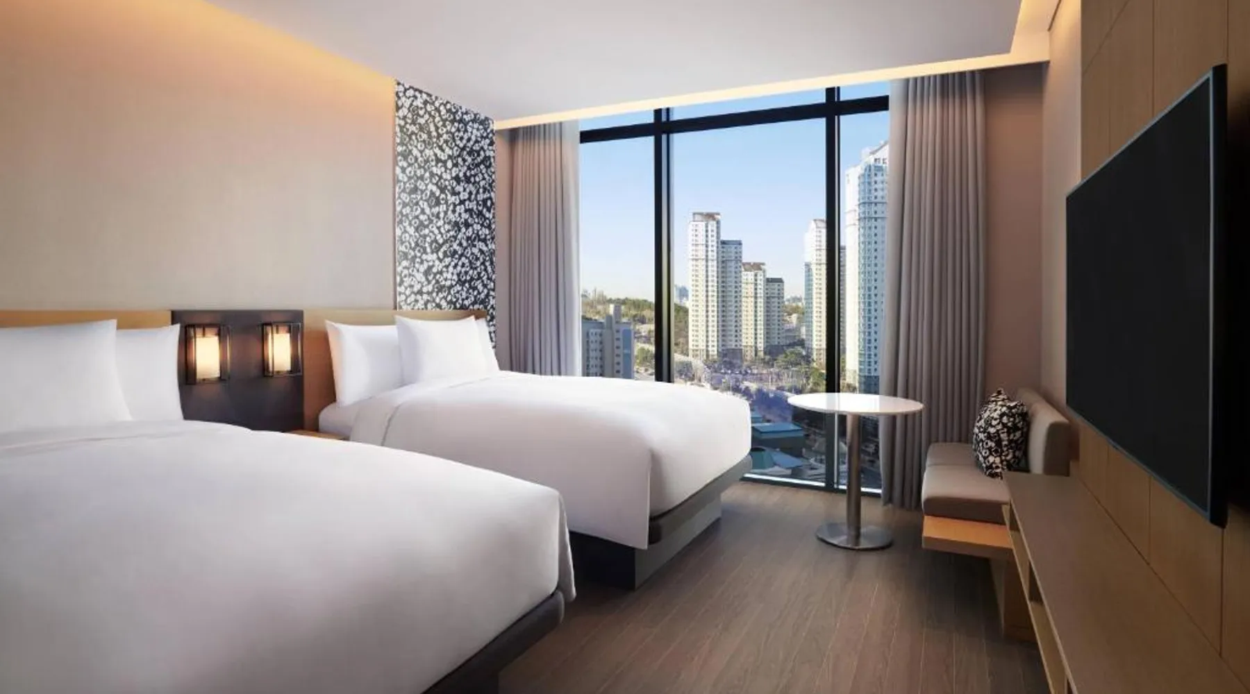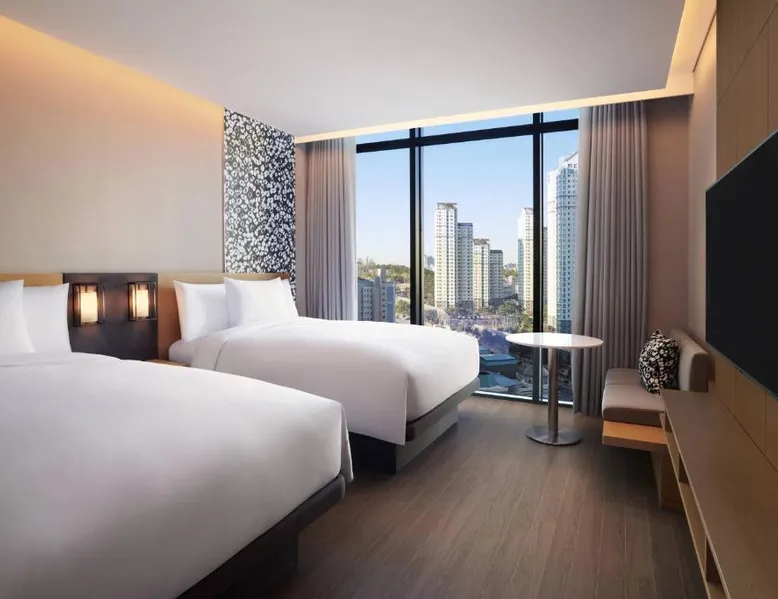 Comfortable Accommodations: Courtyard by Marriott Suwon in Suwon offers comfortable rooms with air-conditioning, private bathrooms, and city views. Each room includes a work desk, mini-bar, and soundproofing for a pleasant stay. Dining Experience: The family-friendly restaurant serves Korean, local, and international cuisines for lunch and dinner. Guests can enjoy a buffet breakfast each morning. The modern and romantic ambiance enhances the dining experience. Facilities and Services: The hotel features a fitness center, free bicycles, and a restaurant. Additional amenities include a 24-hour front desk, concierge service, daily housekeeping, and free on-site private parking. Prime Location: Located 29 mi from Gimpo International Airport, the hotel is near attractions such as Hwaseong Fortress (3.1 mi) and Gangnam Station (17 mi). Guests appreciate the convenient location, nearby lakes, and nearby shops. The unit has 2 beds.