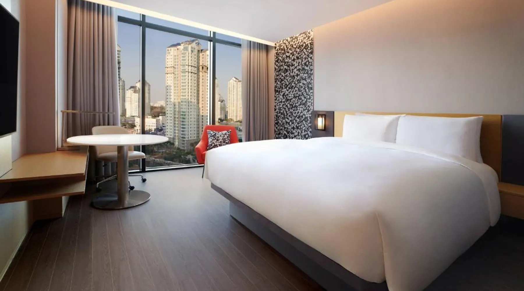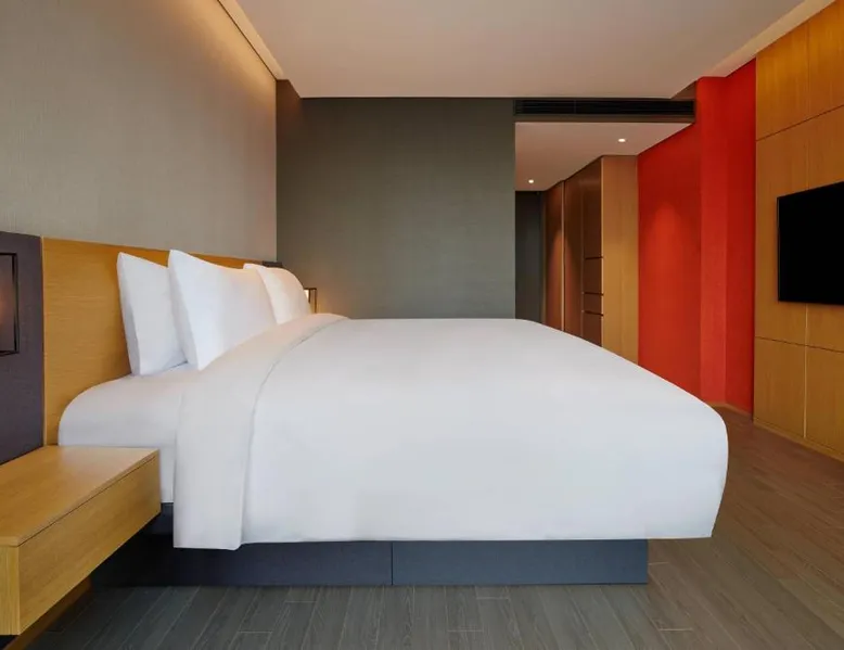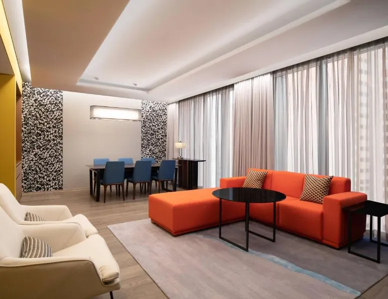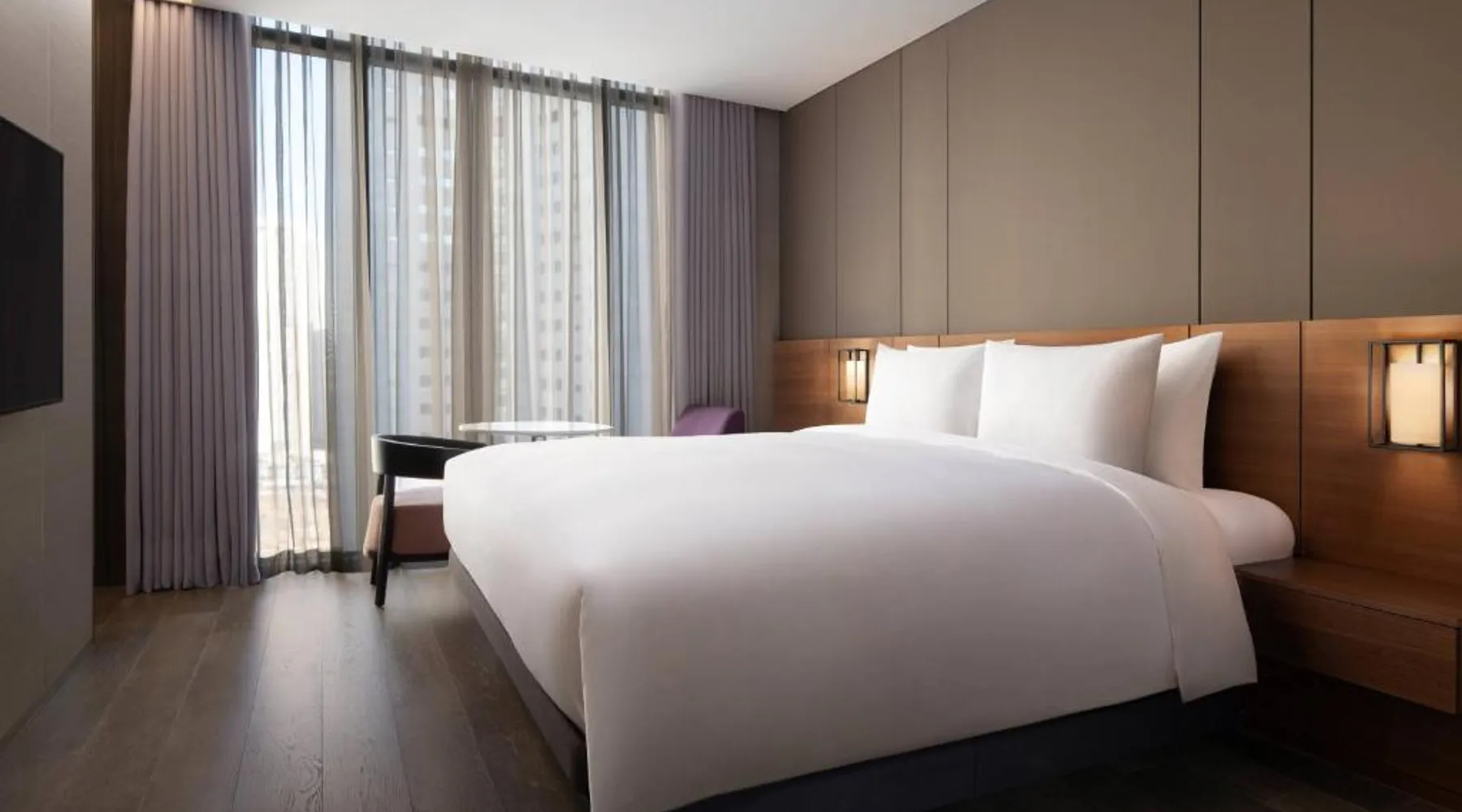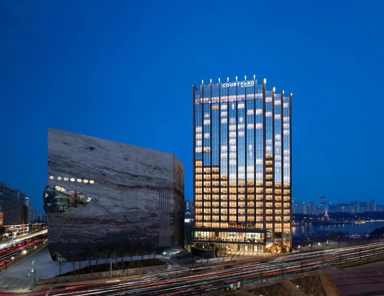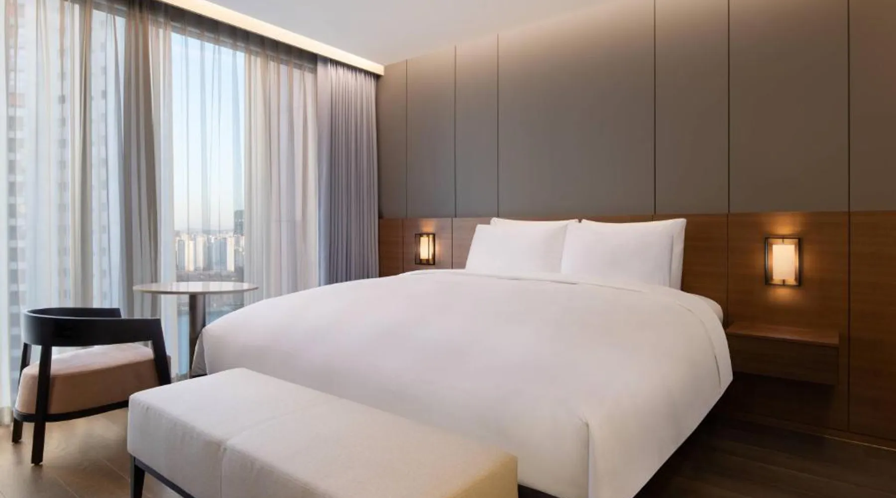 Comfortable Accommodations: Courtyard by Marriott Suwon in Suwon offers comfortable rooms with air-conditioning, private bathrooms, and city views. Each room includes a work desk, mini-bar, and soundproofing for a pleasant stay. Dining Experience: The family-friendly restaurant serves Korean, local, and international cuisines for lunch and dinner. Guests can enjoy a buffet breakfast each morning. The modern and romantic ambiance enhances the dining experience. Facilities and Services: The hotel features a fitness center, free bicycles, and a restaurant. Additional amenities include a 24-hour front desk, concierge service, daily housekeeping, and free on-site private parking. Prime Location: Located 29 mi from Gimpo International Airport, the hotel is near attractions such as Hwaseong Fortress (3.1 mi) and Gangnam Station (17 mi). Guests appreciate the convenient location, nearby lakes, and nearby shops. The unit has 2 beds.