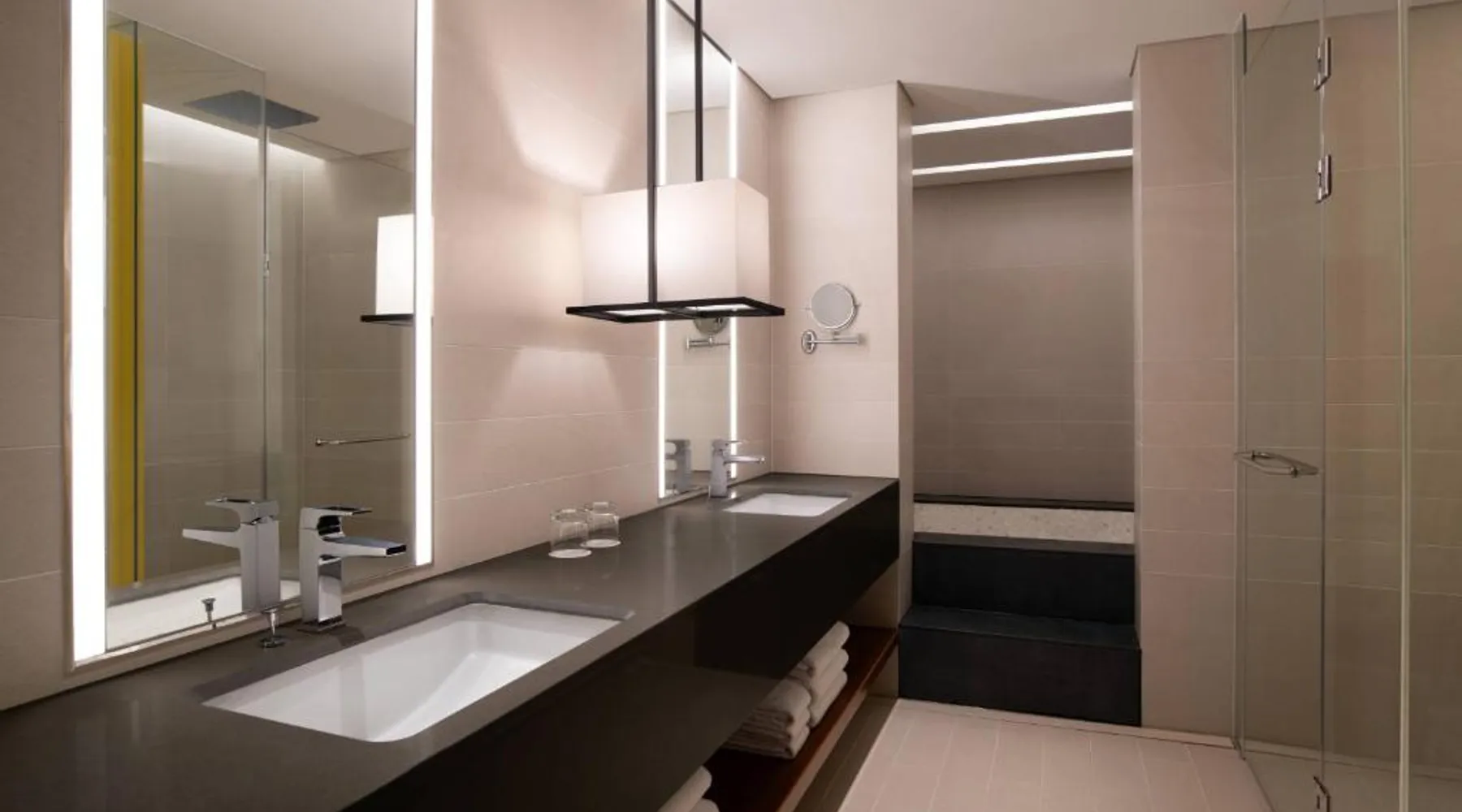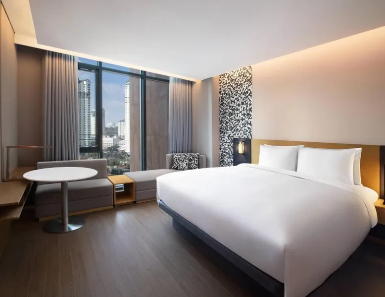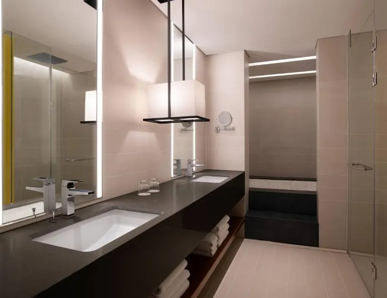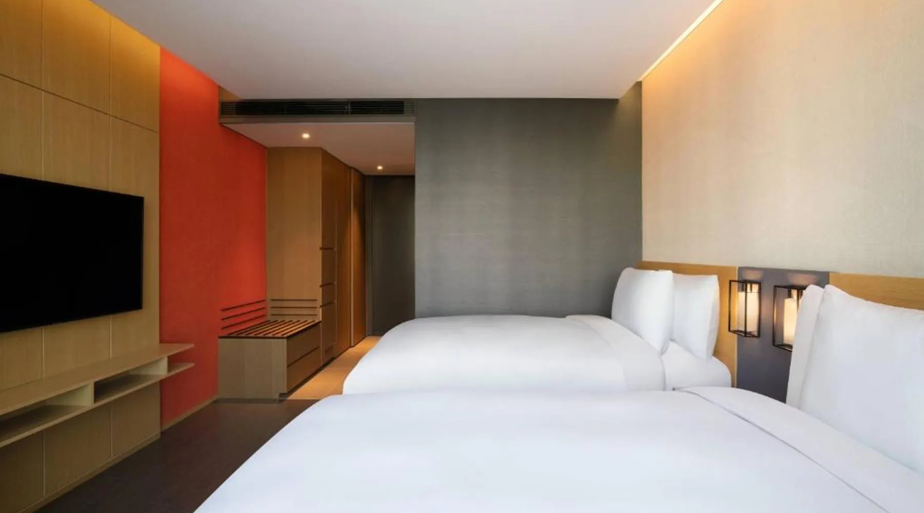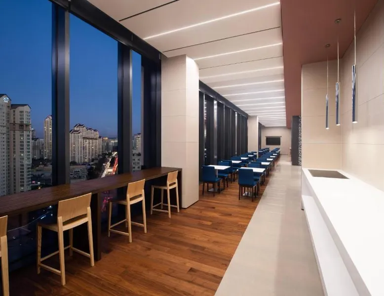 Comfortable Accommodations: Courtyard by Marriott Suwon in Suwon offers comfortable rooms with air-conditioning, private bathrooms, and city views. Each room includes a work desk, mini-bar, and soundproofing for a pleasant stay. Dining Experience: The family-friendly restaurant serves Korean, local, and international cuisines for lunch and dinner. Guests can enjoy a buffet breakfast each morning. The modern and romantic ambiance enhances the dining experience. Facilities and Services: The hotel features a fitness center, free bicycles, and a restaurant. Additional amenities include a 24-hour front desk, concierge service, daily housekeeping, and free on-site private parking. Prime Location: Located 29 mi from Gimpo International Airport, the hotel is near attractions such as Hwaseong Fortress (3.1 mi) and Gangnam Station (17 mi). Guests appreciate the convenient location, nearby lakes, and nearby shops. The unit has 2 beds.