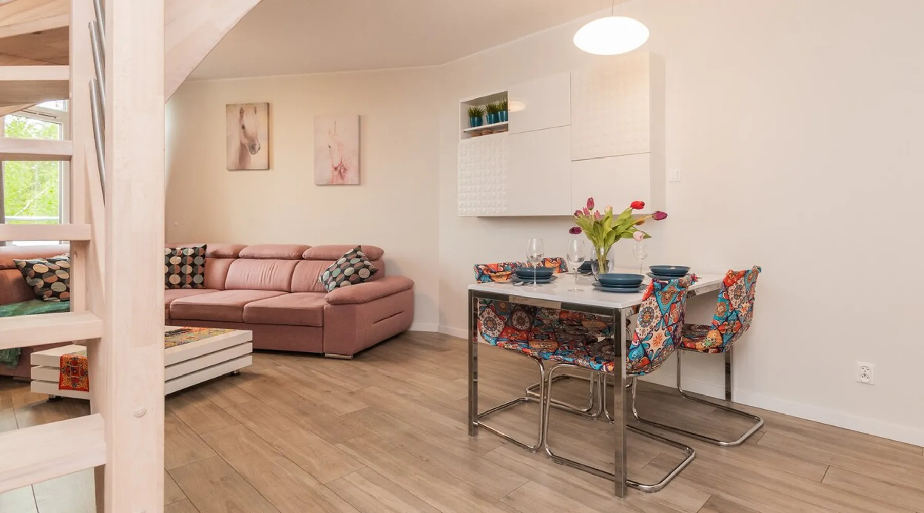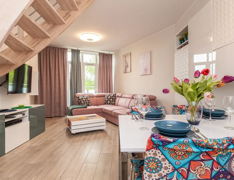 2-level apartment with an area of 57 m2, 3-room. It includes a fully equipped kitchenette, a bathroom with a shower, and a patio. The upstairs bedroom is an open space and does not lock on the door. I would like to inform you that on 14.10.2024, works related to the renovation of the road at ul.Rybackia will begin. Detours are anticipated, there may be a temporary lack of access to the estate. Please monitor the website of the City Hall in Stegna on an ongoing basis, there will be ongoing information The space Jantar is a charmingly located village on the Gulf of Gdansk, right on the route of the Żuławy Dojazdowa. It is surrounded by beautiful forest, which provides our guests with peace and quiet. Every year, during the holiday season, the World Championship in the Amber Poles takes place here, attracting amber fever lovers. A forest path leads to the beach a few minutes away. The property is located on a fenced property. Guest access Approximate distances: beach: 700 m; dog-friendly beach: 800m joint: 500 m; restauracja: 200 m; pharmacy: 1.6 km; dworzec: 600 m; Mini zoo: 700 m; Indian village: 750 m; Narrow gauge railway: 1.1 km. Other things to note In order to check in and receive the access code to the apartment, it is necessary to complete the online formalities before the stay: - The guest is obliged to sign an internal apartment rental agreement and pay a tourist tax in the amount of PLN 2.00/person/day and additional fees selected by the guest. - You will find all check-in information and instructions to pay additional fees in the stay manager that the guest receives at the number provided at the time of booking. - After completing all the formalities described, the access code to the apartment will be sent to the guest on the day of check-in.