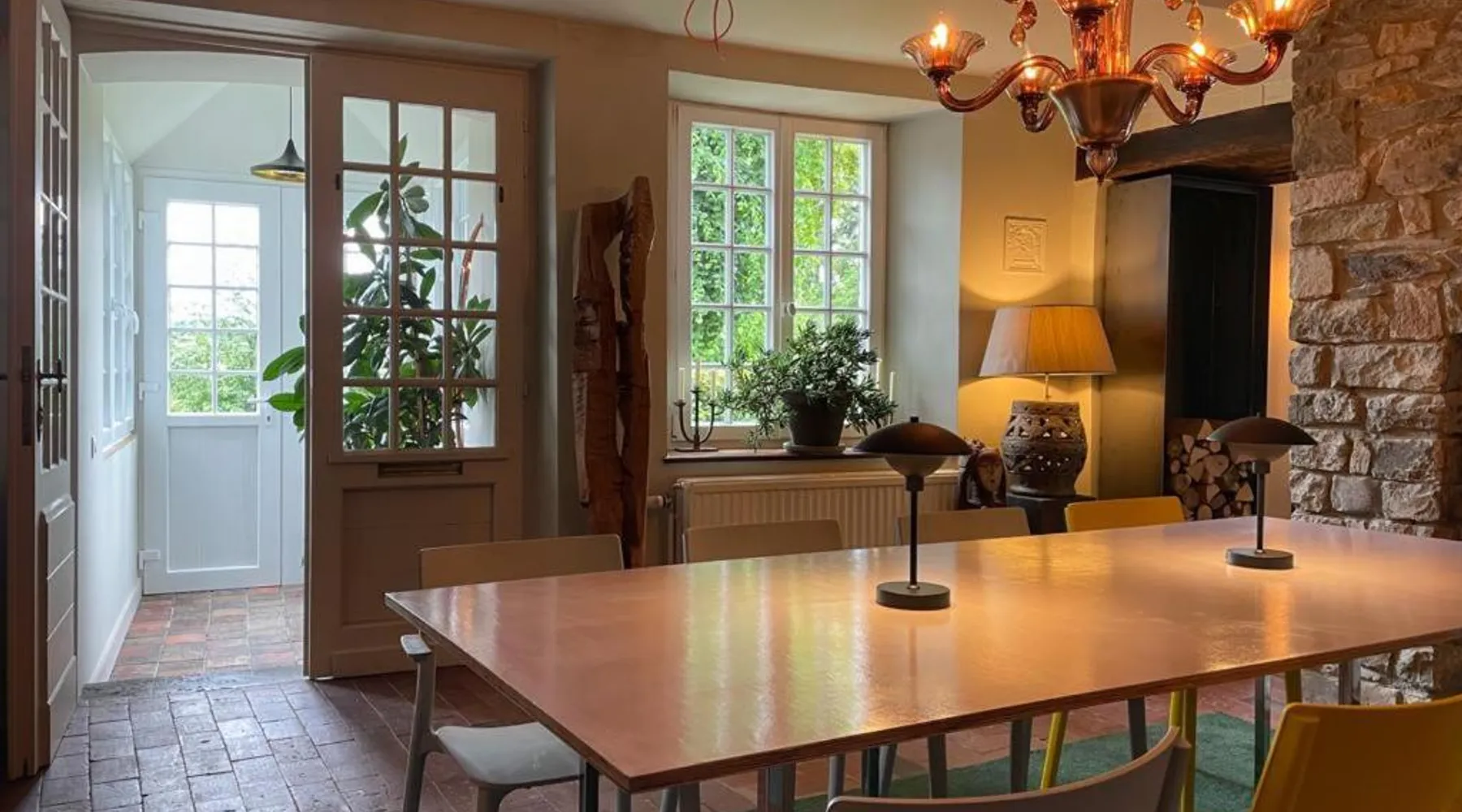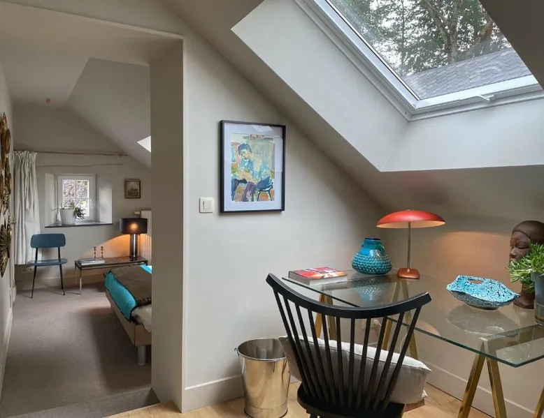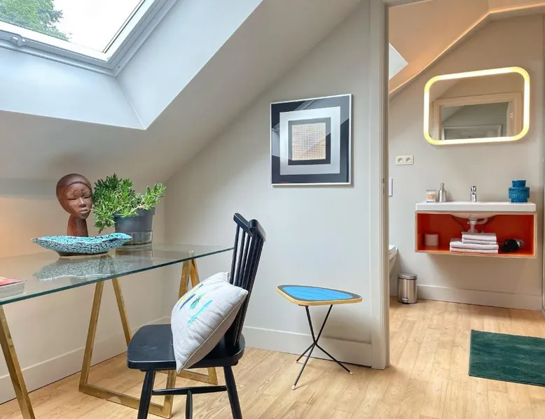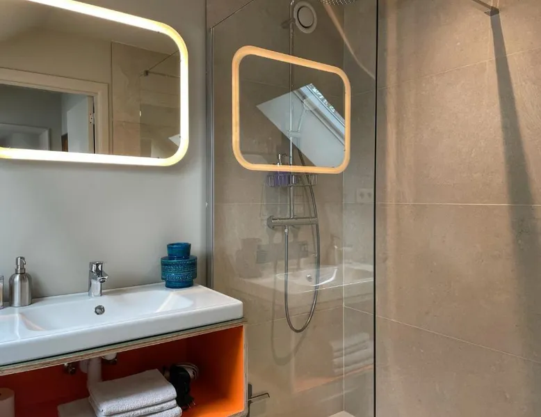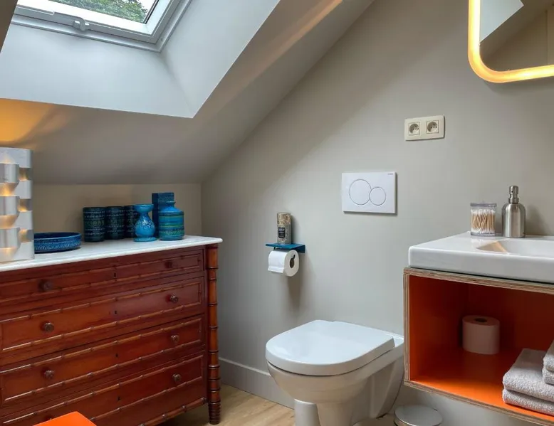 Historic Setting: L'Art de la Fugue in Daverdisse offers a recently renovated bed and breakfast experience within a historic building. The property is adults-only and pet-friendly, ensuring a comfortable stay for all guests. Exceptional Facilities: Guests can enjoy a sun terrace, garden, bar, and free WiFi. Additional amenities include a lounge, shared kitchen, minimarket, outdoor seating area, and luggage storage. Free on-site private parking is available. Comfortable Accommodations: Rooms feature private bathrooms, kitchen facilities, and garden views. The property offers a continental breakfast, highly praised by guests for its quality and variety. Nearby Attractions: Located 62 mi from Charleroi Airport, the bed and breakfast is close to Château fort de Bouillon (17 mi), Domain of the Han Caves (12 mi), and Euro Space Center (13 mi). The fireplace is a top feature of this double room. The well-fitted kitchen has a stovetop, a refrigerator, a dishwasher and kitchenware. The double room features a washing machine, a private entrance, a terrace with a quiet street view as well as a private bathroom boasting a shower. The unit has 1 bed.