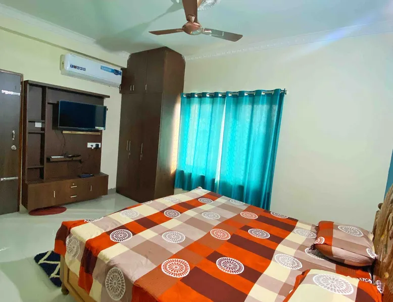 Fully Furnished high-end one-bedroom apartment conveniently located in a peaceful neighbourhood close to Puri Railway Station. A perfect getaway for peace lovers, solo travellers, couples, family and business travellers. Family-owned flats with an onsite caretaker. The flats are brightly lit and are well connected to Jagannath Temple and Sea Beach which are just 2kms away. The space About the Space - 1) Master bedroom - King-size bed - Six-inch mattress - AC - Wardrobes - Android TV 2) Ensuite bathroom - Shower - Geyser 3) Living room - Two seaters comfortable Sofa with Teapoy , 1 person Bed for relaxing, 1 sofa cum bed 4) Kitchen - Induction stove - Induction Based Pressure Cooker - Dishes and Silverware - Pots and Pans with Spatula, Mini Fridge 5) UV-RO water provision available 6) Open balcony - Sitting Chairs 7) On-Site parking space. 8) Jio Fiber with 100-150 Mbps wifi connectivity (Access to 14 OTT platforms) Note - The flat is equipped with a cooking option, with dishes. The guests are requested to clean the dishes and other utensils after use. Leftovers should be kept in the trash can. Leaving the kitchen area in a messed up state will attract a penalty of 1000 rupees. The same will be reported to Airbnb with the claim amount Guest access Guests will have access to a complete one-bedroom apartment with a Living room and Kitchen. Other things to note The flat is located on the third floor. An elevator facility is available.