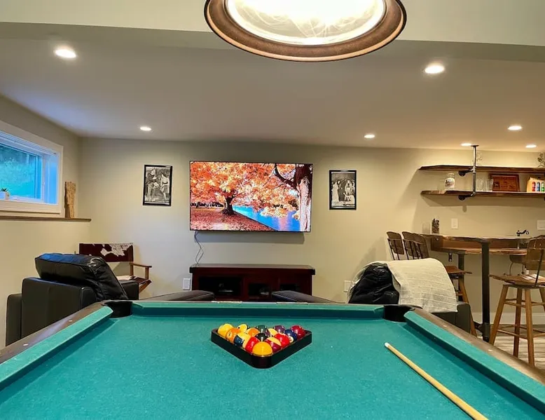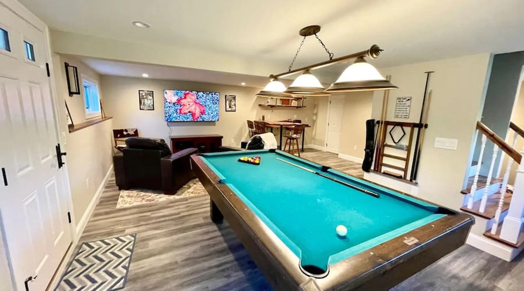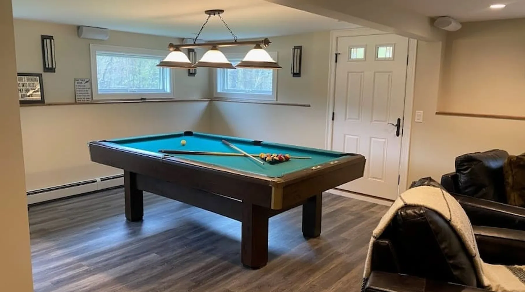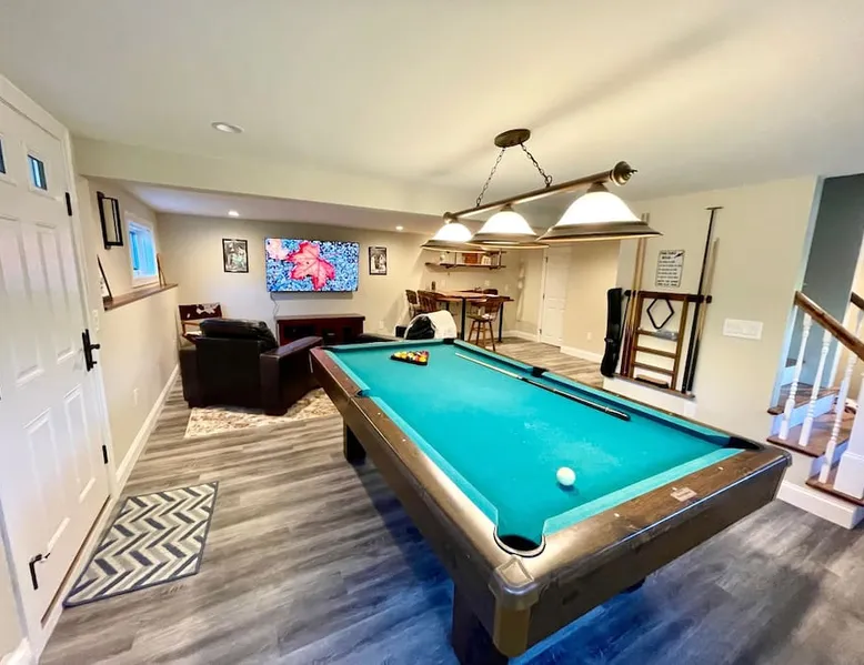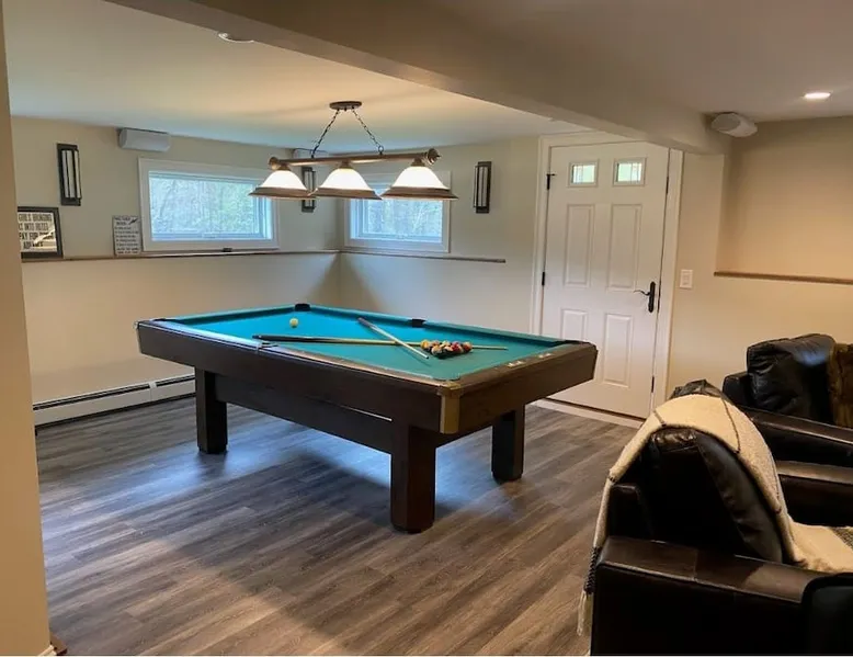 This gorgeous, spacious four bedroom house is 1.5 miles from historic Waterbury, the heart of the Green Mountains. Tons of restaurants, hiking trails, and bike trails are just minutes away. Ski the world famous trails of Stowe Mountain Resort, less than 30 minutes to the north. Sugarbush and Mad River Glen are thirty minutes south. Burlington is an easy 30 minute drive. Perfect distance to everything for your tour of northern Vermont! *Guests are welcome to use the 2 car garage. The space This clean and spacious four bedroom house minutes from historic Waterbury, Vermont. Three bedrooms on the first floor, one king, one queen and one single bed with a single trundle bed. Those bedrooms share a beautiful large bathroom. Large living room and kitchen area. Downstairs is a second sitting area with pool table and bar area plus a fourth queen bedroom and another bathroom. There is a 2 car garage for guest use and a large backyard with a firepit to enjoy those gorgeous Vermont nights. Guest access The entire house is for you. Other things to note - Please if you use the daybed, we as you to please not jump on it. It was recently repaired. Policy number: Airbnb collects and remits these taxes to the Vermont Department of Taxes for listings on the platform under a single meals and rooms tax ID number: MRT-10126712 Please be advised, this is a mountain town and conditions can change rapidly. We always recommend snow tires or four wheel drive around town in the winter months.