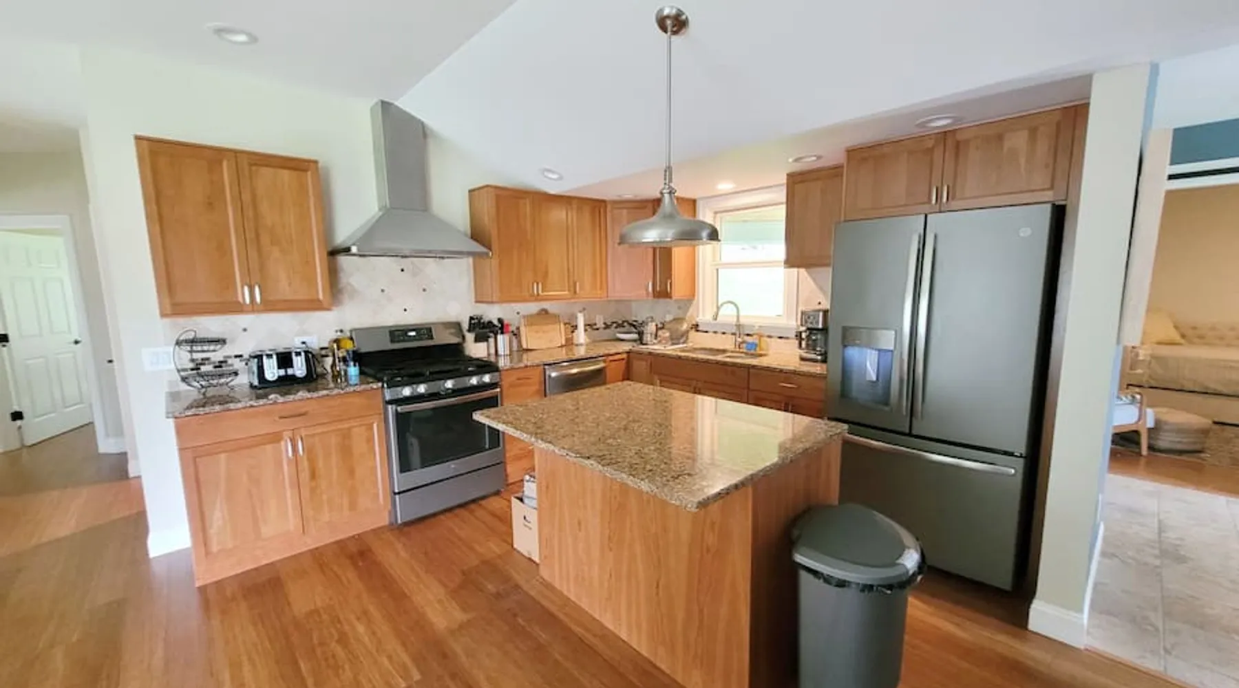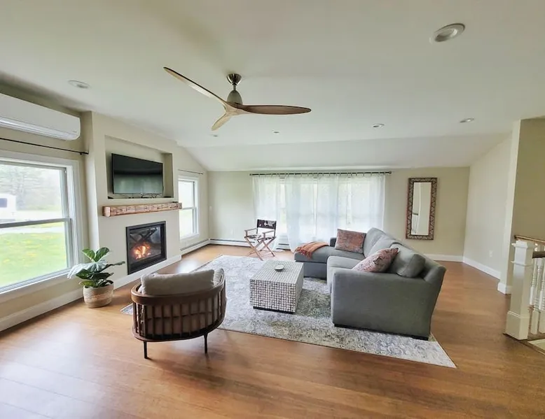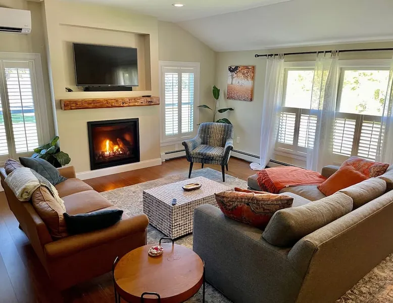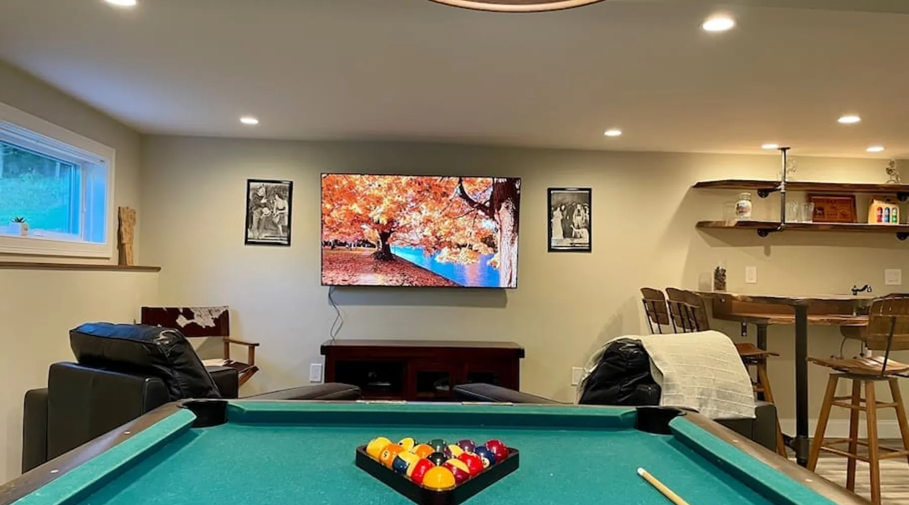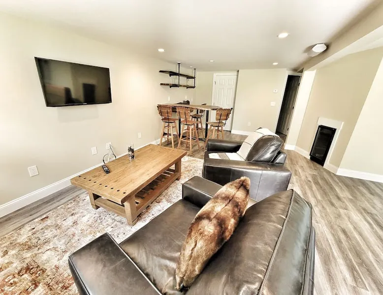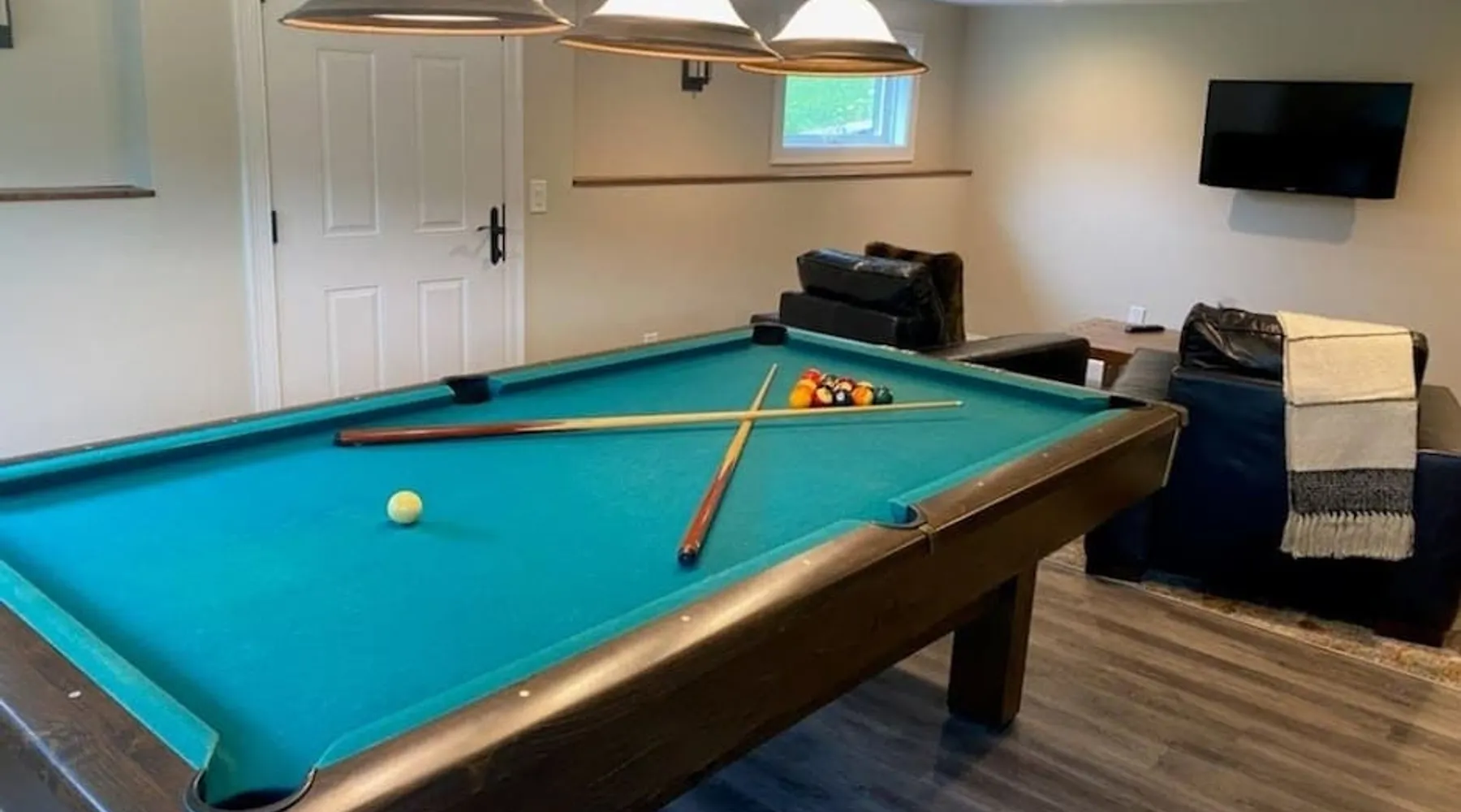 This gorgeous, spacious four bedroom house is 1.5 miles from historic Waterbury, the heart of the Green Mountains. Tons of restaurants, hiking trails, and bike trails are just minutes away. Ski the world famous trails of Stowe Mountain Resort, less than 30 minutes to the north. Sugarbush and Mad River Glen are thirty minutes south. Burlington is an easy 30 minute drive. Perfect distance to everything for your tour of northern Vermont! *Guests are welcome to use the 2 car garage. The space This clean and spacious four bedroom house minutes from historic Waterbury, Vermont. Three bedrooms on the first floor, one king, one queen and one single bed with a single trundle bed. Those bedrooms share a beautiful large bathroom. Large living room and kitchen area. Downstairs is a second sitting area with pool table and bar area plus a fourth queen bedroom and another bathroom. There is a 2 car garage for guest use and a large backyard with a firepit to enjoy those gorgeous Vermont nights. Guest access The entire house is for you. Other things to note - Please if you use the daybed, we as you to please not jump on it. It was recently repaired. Policy number: Airbnb collects and remits these taxes to the Vermont Department of Taxes for listings on the platform under a single meals and rooms tax ID number: MRT-10126712 Please be advised, this is a mountain town and conditions can change rapidly. We always recommend snow tires or four wheel drive around town in the winter months.