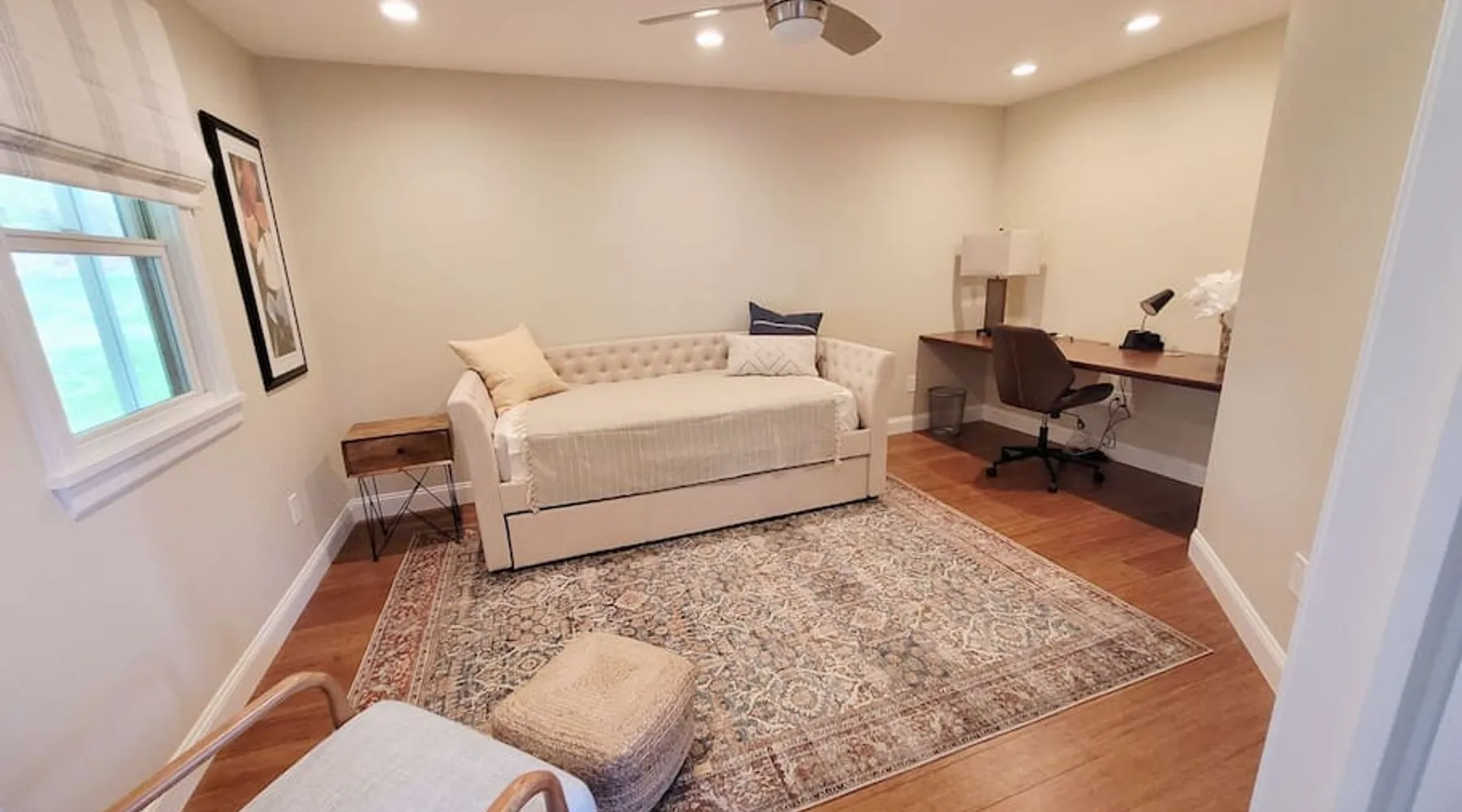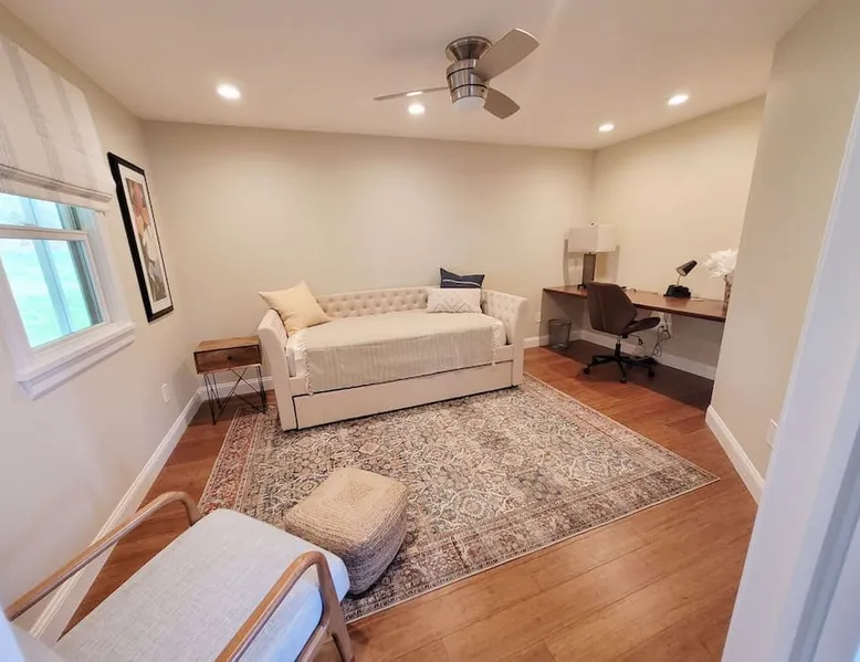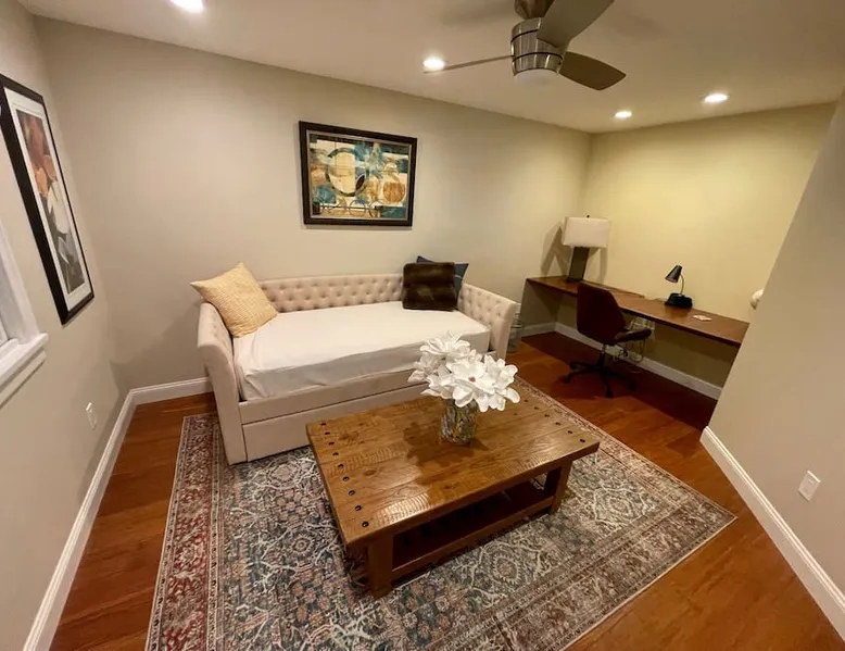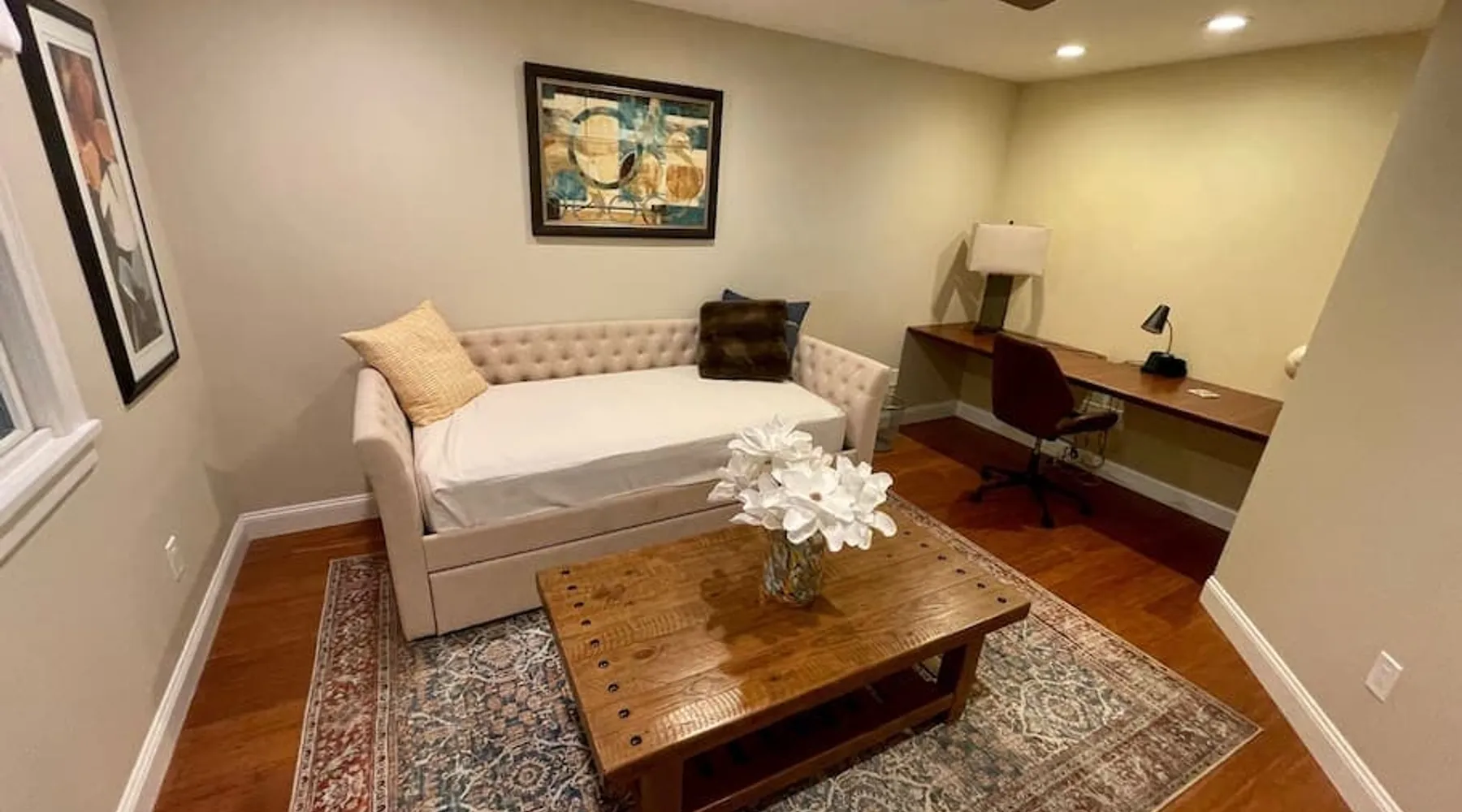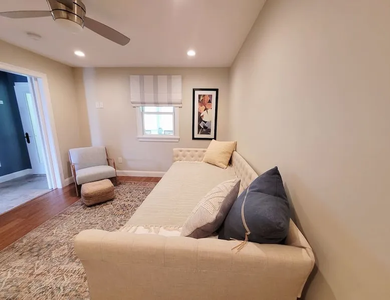 This gorgeous, spacious four bedroom house is 1.5 miles from historic Waterbury, the heart of the Green Mountains. Tons of restaurants, hiking trails, and bike trails are just minutes away. Ski the world famous trails of Stowe Mountain Resort, less than 30 minutes to the north. Sugarbush and Mad River Glen are thirty minutes south. Burlington is an easy 30 minute drive. Perfect distance to everything for your tour of northern Vermont! *Guests are welcome to use the 2 car garage. The space This clean and spacious four bedroom house minutes from historic Waterbury, Vermont. Three bedrooms on the first floor, one king, one queen and one single bed with a single trundle bed. Those bedrooms share a beautiful large bathroom. Large living room and kitchen area. Downstairs is a second sitting area with pool table and bar area plus a fourth queen bedroom and another bathroom. There is a 2 car garage for guest use and a large backyard with a firepit to enjoy those gorgeous Vermont nights. Guest access The entire house is for you. Other things to note - Please if you use the daybed, we as you to please not jump on it. It was recently repaired. Policy number: Airbnb collects and remits these taxes to the Vermont Department of Taxes for listings on the platform under a single meals and rooms tax ID number: MRT-10126712 Please be advised, this is a mountain town and conditions can change rapidly. We always recommend snow tires or four wheel drive around town in the winter months.