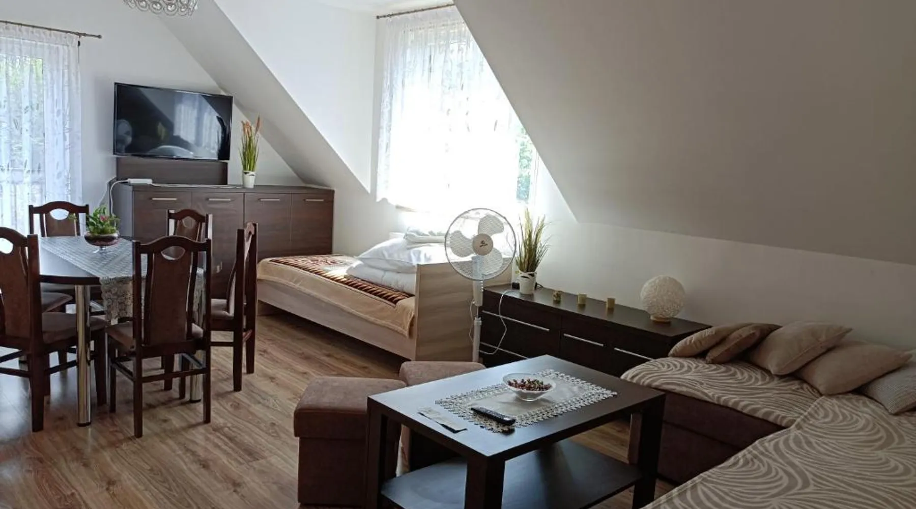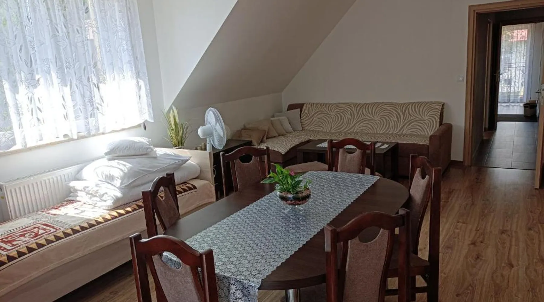 Spacious Accommodations: Dom Wakacyjny Gajówka z ogrodem in Rzyki offers a spacious apartment with three bedrooms and two bathrooms. The property features a fully equipped kitchen, balcony, terrace, and garden views. Outdoor Amenities: Guests can enjoy a sun terrace, seasonal outdoor swimming pool, and free WiFi. Additional facilities include a minimarket, laundry service, outdoor seating area, picnic area, and barbecue facilities. Convenient Location: Located 35 mi from John Paul II International Kraków–Balice Airport and 23 mi from Memorial and Museum Auschwitz-Birkenau. An ice-skating rink is nearby. Highly rated by guests. Guests will have a special experience as the apartment features a private pool. Featuring a private entrance, this spacious apartment also consists of 3 bedrooms, a seating area and 2 bathrooms with a shower and a hairdryer. Guests will find a stovetop, a refrigerator, a dishwasher and kitchenware in the fully equipped kitchen. The apartment also offers a barbecue. Boasting a terrace with garden views, this apartment also provides a washing machine and a flat-screen TV with cable channels. The unit offers 8 beds.