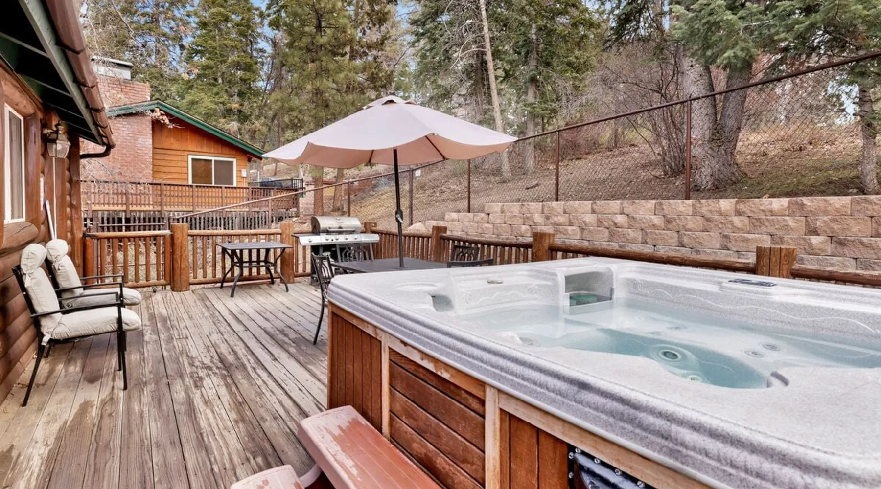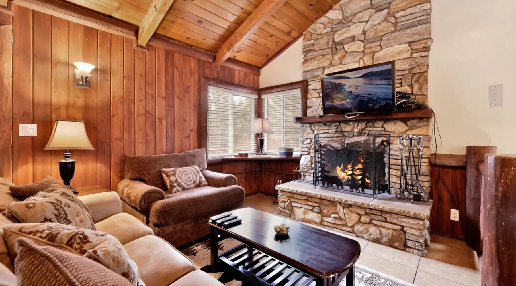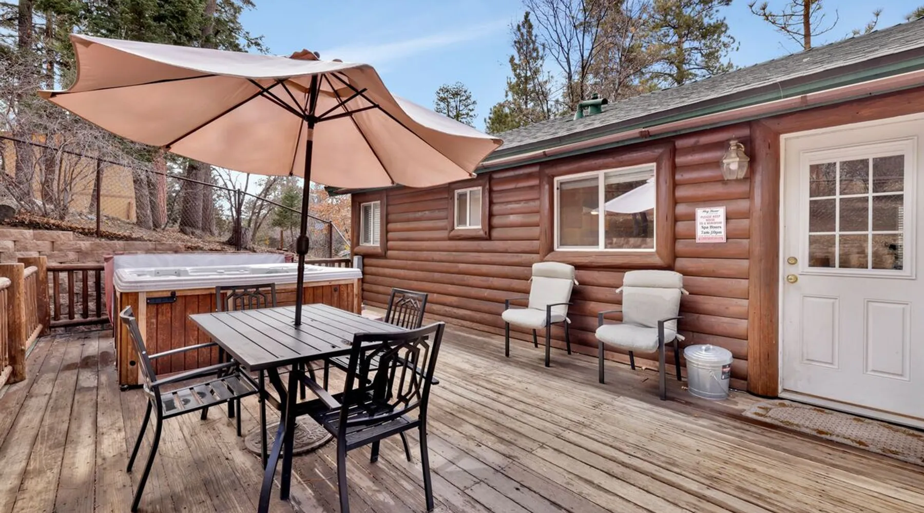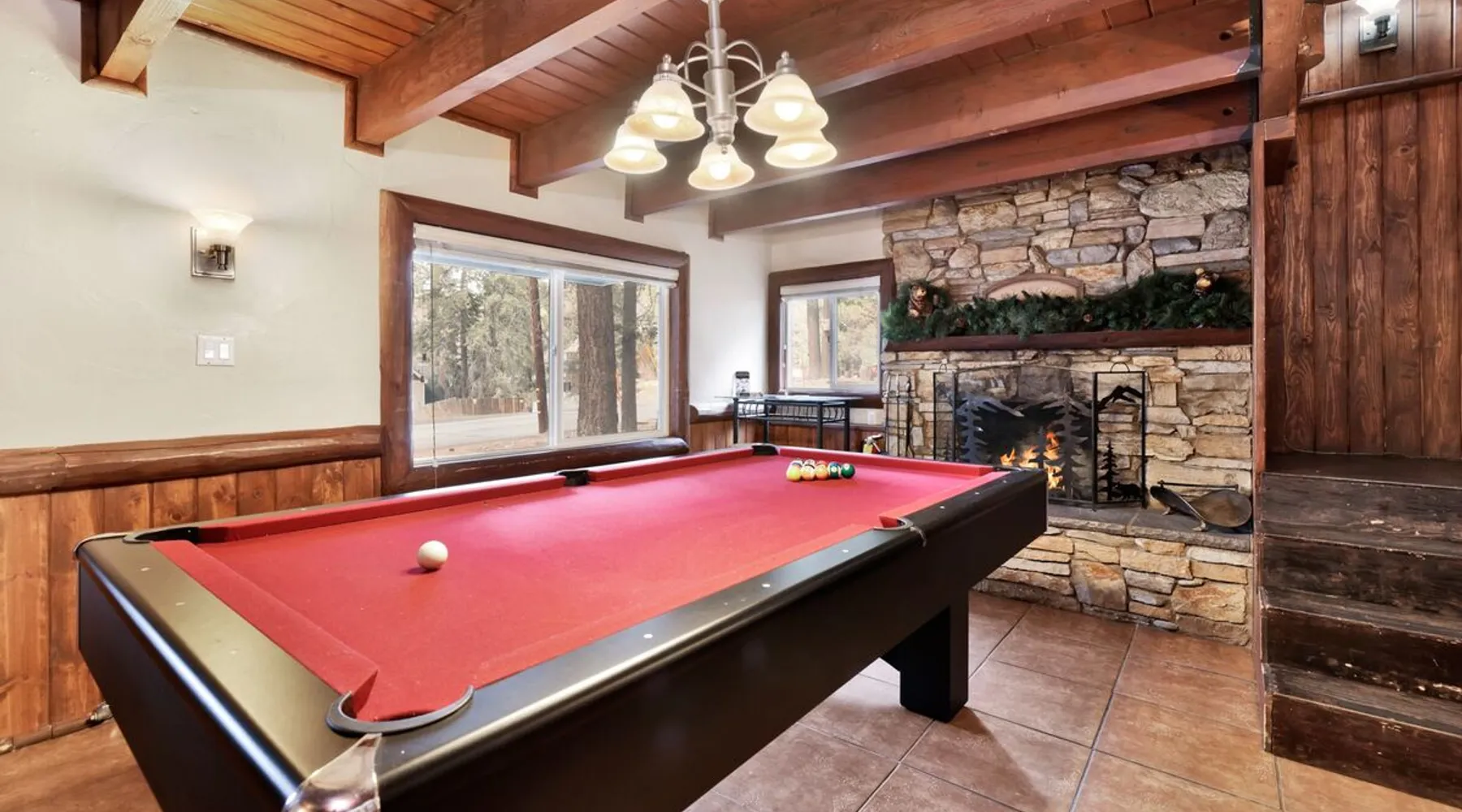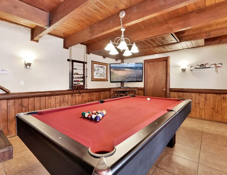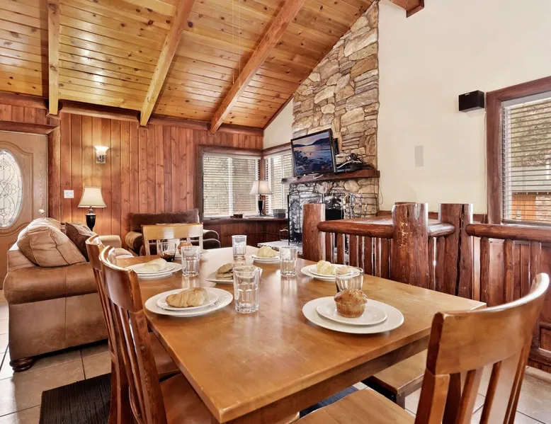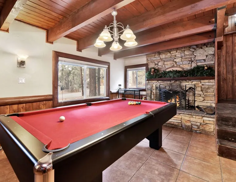 Welcome to Bear Tracks Cabin ~ gather your family and friends for the ultimate mountain vacation at Big Bear, freshly furnished from head to toe with your vacation stay in mind, your group will enjoy a central Moonridge location just below the Bear Mountain Ski Resort providing year round activity access to skiing, golf, hiking trails, and the newly constructed Alpine Zoo. Enjoy a game of billiards on the pool table or soak up your fun day of adventures in the hot tub- this chalet has it all! The space Bear Tracks | Hot Tub- Pool Table- Resort Location Welcome to Bear Tracks Cabin! Perfect for a mountain getaway, this freshly furnished cabin is centrally located in Moonridge, just below Bear Mountain Ski Resort. Enjoy easy access to skiing, golf, hiking, and the Alpine Zoo. Relax with a game of pool or soak in the private hot tub under the stars. The spacious sun deck with a propane BBQ is perfect for grilling your lake catch. Inside, the cozy woodsy interior features a reverse floor plan. The lower level offers a private suite and game room with a wood-burning fireplace, pool table, and mounted TV. Upstairs, the open floor plan includes a comfortable living room with a fireplace and TV, a dining area, and an equipped kitchen. Two additional bedrooms and a full bath with a jetted spa tub are also on this level. Step outside to enjoy the redwood decks, outdoor furnishings, and a fenced backyard, perfect for kids or pets. Bear Tracks Cabin offers the ideal location and amenities for any group. Book your stay today! Sleeping Arrangements: Bedroom 1: Queen Bed, Streaming TV, Private 3/4 Bath (Shower Only)- Downstairs Entry Level Bedroom 2: Two Full Beds, Streaming TV- Upstairs 2nd Level Bedroom 3: Queen Bed, Streaming TV- Upstairs 2nd level Bathroom Arrangements: Private 3/4 Bath (Shower Only)- Bedroom 2- Downstairs 1st Level Hallway Full Bath w/ Jetted Spa Tub- Upstairs 2nd Level -Sleeps 5 -3 Cars Driveway Parking -2 Pets Welcome w/ Additional Fee -1,034 Total Square Feet City Permit #: VRR-2025-0437 Registration details 2024-0478
