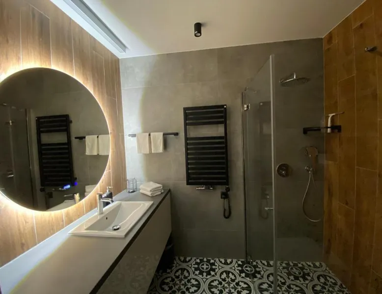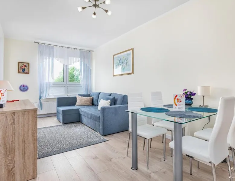 Prime Location: Jantar Apartamenty - PLATANY in Kołobrzeg offers a central position with Kolobrzeg Central Beach an 18-minute walk away. Nearby attractions include Kolobrzeg Old Town Hall (1640 feet), Kołobrzeg Railway Station (9-minute walk), and Kolberg Pier (1.2 mi). Essential Facilities: Guests enjoy free WiFi, a paid airport shuttle service, and family rooms. Free on-site parking is available, and reception staff speak German, English, and Polish. Comfortable Accommodations: Each apartment features a private bathroom, ensuring a comfortable stay. Local Attractions: Nearby points of interest include St. Mary's Basilica (4-minute walk), Polish Arms Museum (984 feet), and Kołobrzeg Lighthouse (19-minute walk). Boating is available in the surroundings. Highly Rated: Guests appreciate the excellent facilities and central location, making it a highly rated choice. The unit has 2 beds.