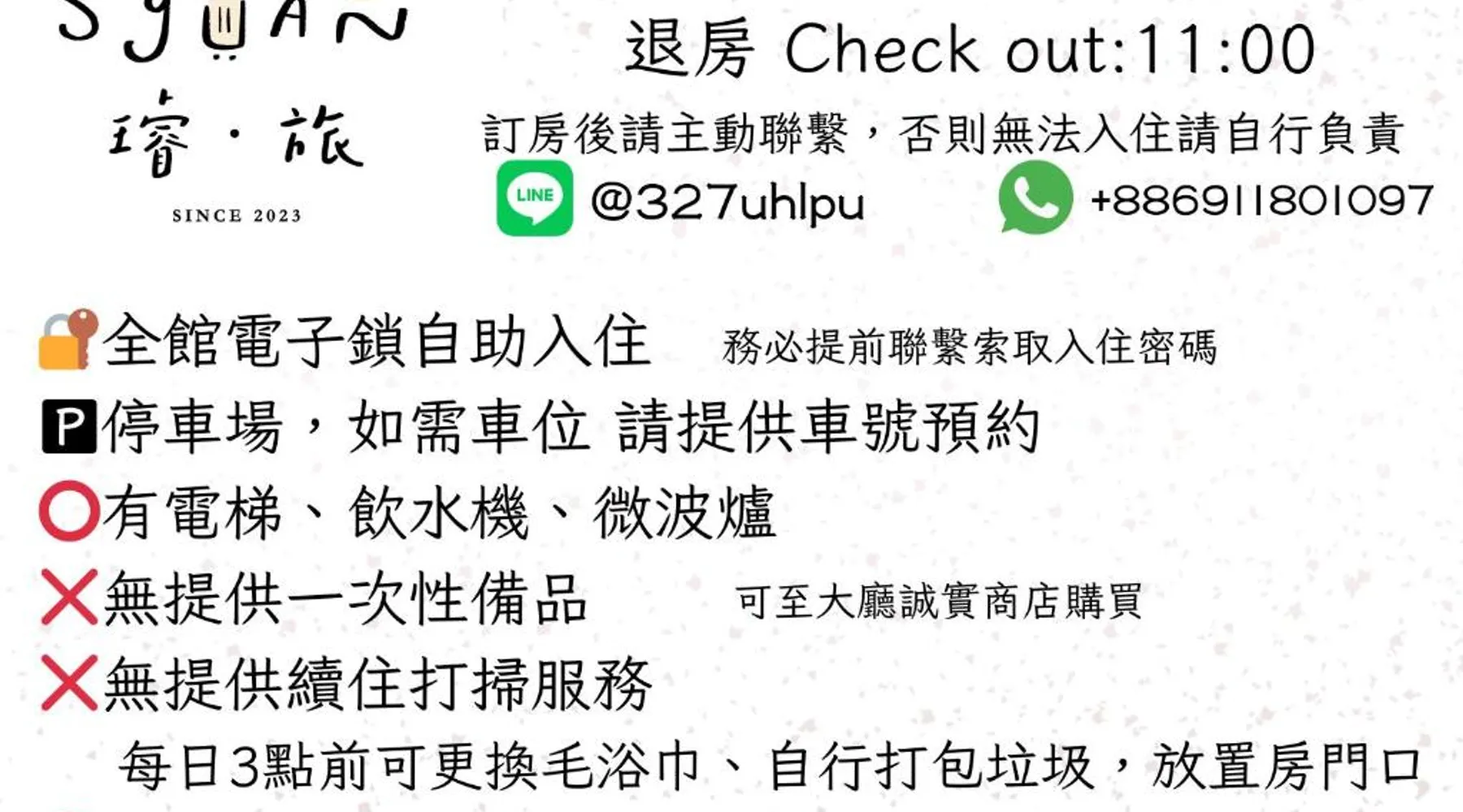 Comfortable Accommodations: 璿 旅 Syuan Hotel in Tainan offers family rooms with air-conditioning, private bathrooms, and free WiFi. Each room includes a washing machine, refrigerator, and TV. Convenient Facilities: Guests benefit from a elevator, luggage storage, and free private parking. Additional amenities include a dining area, soundproofing, and city views. Prime Location: Located 3.1 mi from Tainan Airport, the homestay is an 8-minute walk from Tainan Confucius Temple and 1969 feet from Chihkan Tower. Hiking trails surround the area. Guest Satisfaction: Highly rated for room comfort, convenient location, and spacious rooms. The spacious double room offers air conditioning, a washing machine, as well as a private bathroom boasting a bath and a shower. The double room provides soundproof walls, a dining area, a wardrobe, a flat-screen TV, as well as a quiet street view. The unit has 1 bed.