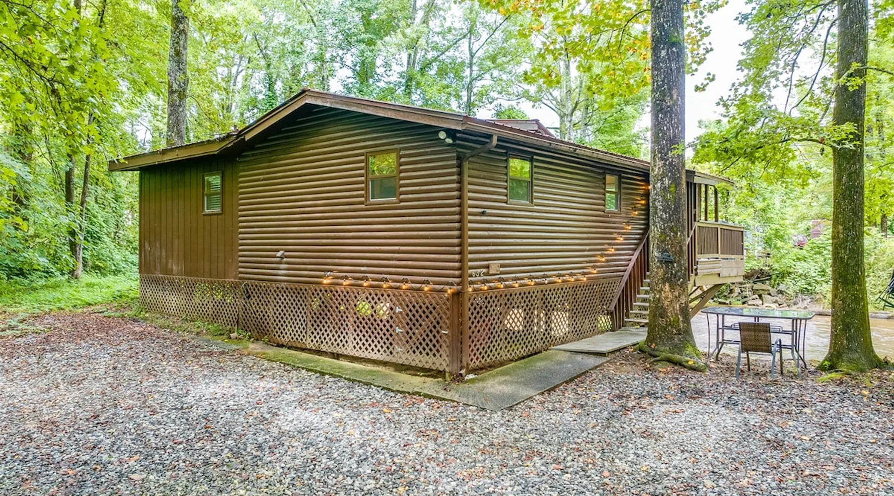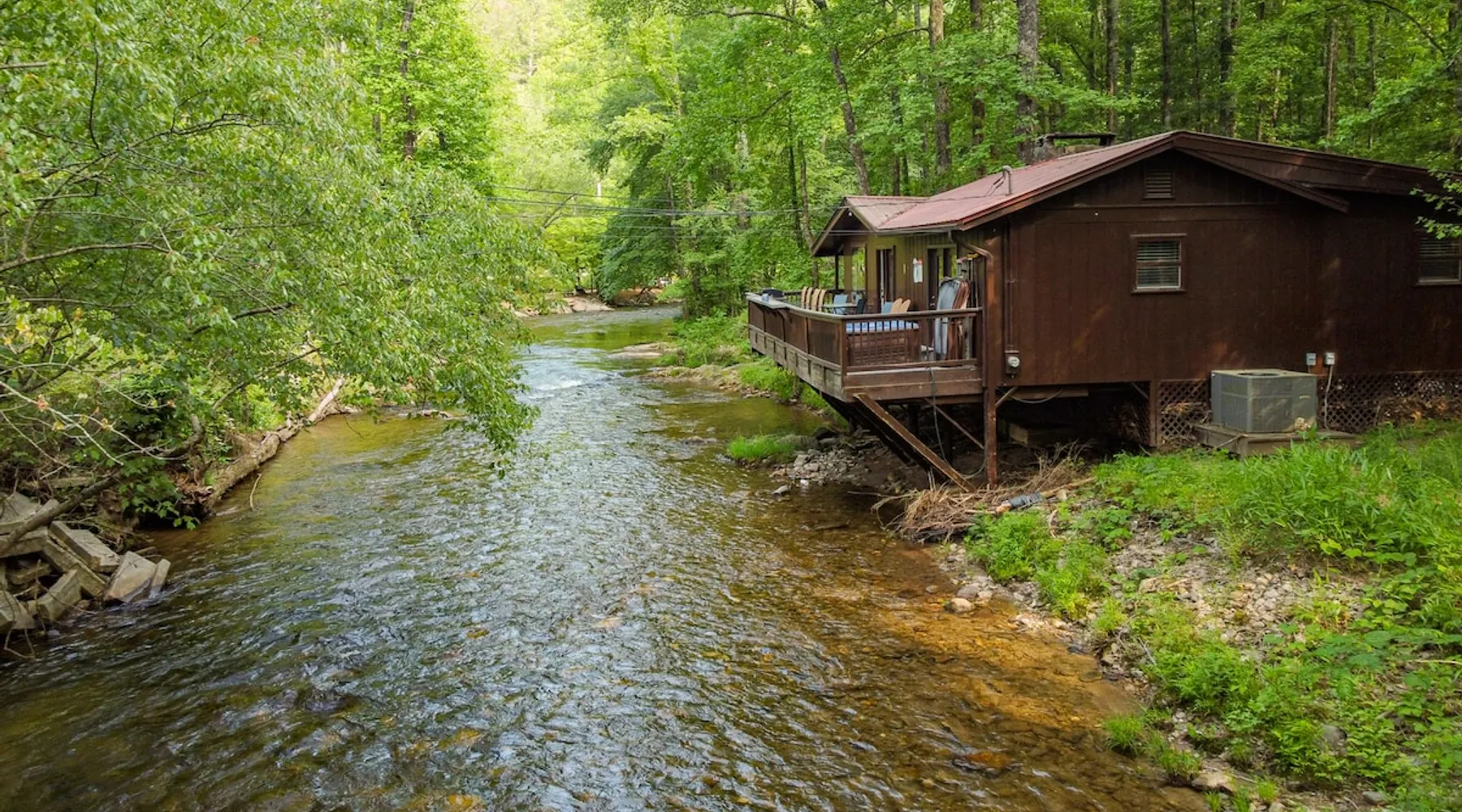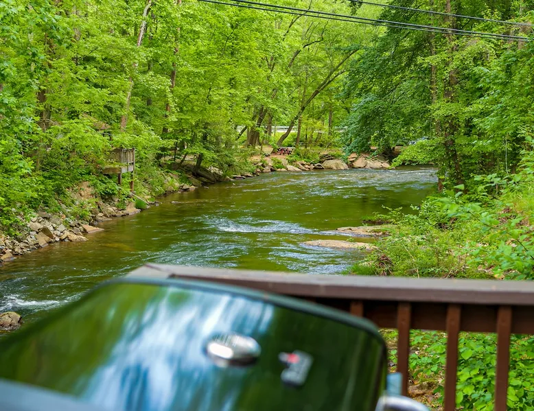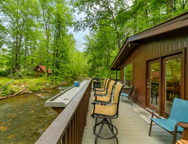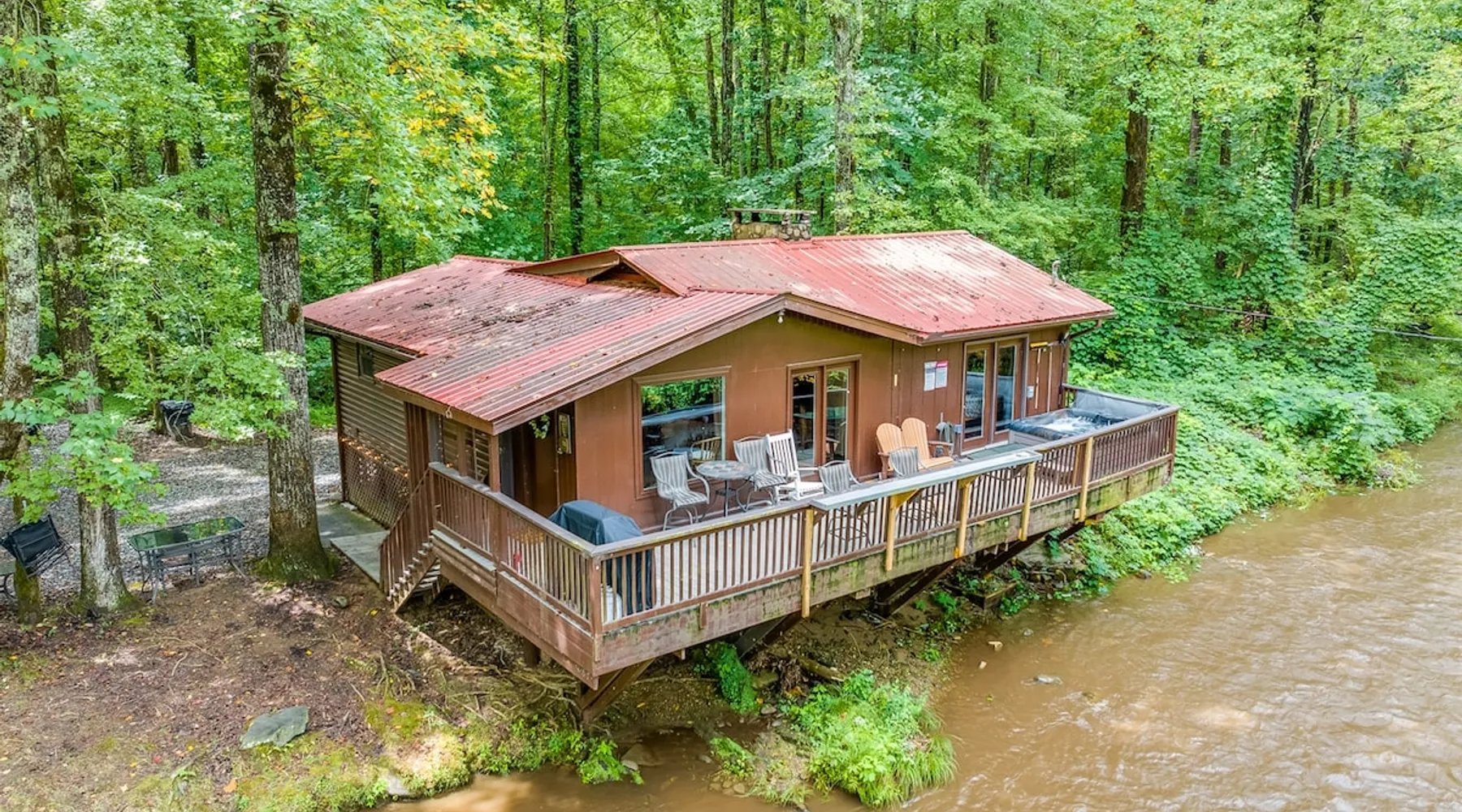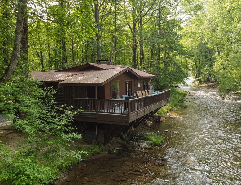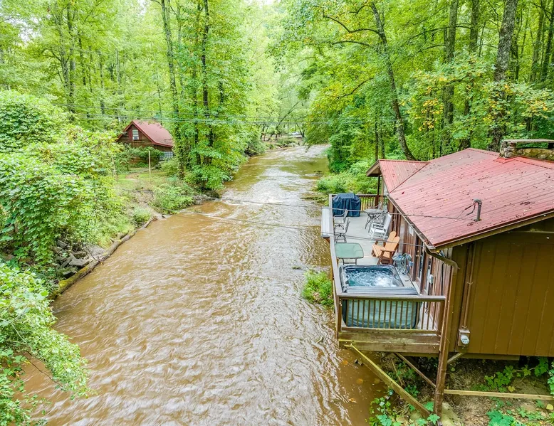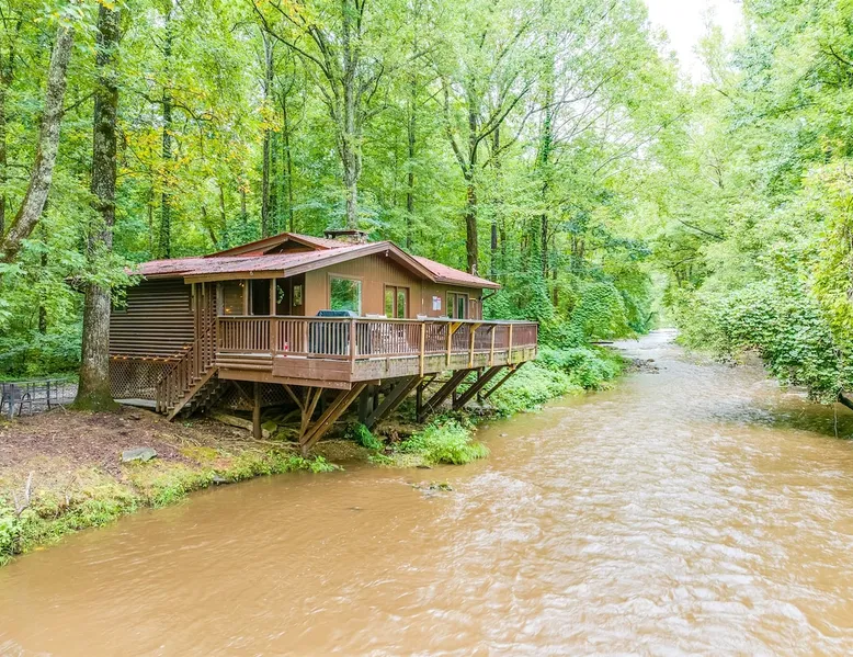 Spend your next vacation on-the-edge of the Chattahoochee River! Guests will truly enjoy River's Edge. This rustic 2 bedroom, 2 bath cabin is the perfect place to enjoy nature while listening to the sounds of the river running by from the open deck overhanging the river. A fisherman's paradise - trout fishing right in front of your own cabin - catch your limit on the beautiful clear waters of the fast-flowing Chattahoochee River. Perfect for families wanting to tube, fish, and BBQ. The space Guests will truly enjoy River`s Edge. This rustic 2 bedroom, 2 bath cabin is the perfect place to enjoy nature while listening to the sounds of the river running by from the open deck overhanging the river. A fisherman`s paradise - trout fishing right in front of your own cabin - catch your limit on the beautiful clear waters of the fast flowing Chattahoochee River. The property is close to the Chattahoochee Wildlife Management Preserve and there is something for everyone in the area: fishing, hiking, river tubing, or horseback riding at Sunburst Stables or just relaxing in the hot tub on the deck as you watch the river flow by. Could it get any better than this? This perfect spot for rest and relaxation is located close to nature and the headwaters of the Upper Chattahoochee River and only 1 mile from the vibrant center of Helen, GA. This cozy cabin is located just minutes from the shopping and dining of the delightful alpine village of Helen, GA and a short drive to the spectacular Anna Ruby Falls, Dukes Creek Falls, Smithgall Woods Center and Unicoi State Park. It is the perfect vacation cabin for a couple or small family. River`s Edge is lovingly cared for and features a cozy stone, wood-burning fireplace, wood paneling throughout, and a well equipped kitchen with everything you need. Guest access Outdoors: Large Spacious Deck Overhanging the Chattahoochee River with Hot Tub Propane Grill with Spare Tank Outdoor Lighting Large Lounger for 2 Outdoor Table and Chairs Living Room: Sofa - Leather Loveseat - Leather End Tables and Lamps Custom Designed Coffee Table Stoned Wood Burning Fire Place TV with Cable / DVD Player / VCR Central Heat and Air Vaulted Ceilings Kitchen - Dining: Table and Chairs for (6) Dishes Flatware Glassware Pots and Pans Baking Dishes Coffee Pot Toaster Blender Stove, Range, Refrigerator Microwave Washer and Dryer for Weekly Bookings Bathroom: Tub - Shower Combo Towels Provided Bedroom - #1 Private - Master Bedroom - Hot Tub Outside of Door King Sized Bed w/ High End Linens and Bedding Queen Sized Bed Entertainment Center with TV Chest Night Stand Bedroom - #2 Private - Guest Bedroom Queen Sized Bed w/ High End Bedding and Linens Chest with TV Night Stands Other things to note 25+ age requirement for lead guest. No exceptions. This property is not pet-friendly. No exceptions. Digital rental agreement will be required to sign and complete after property is booked.