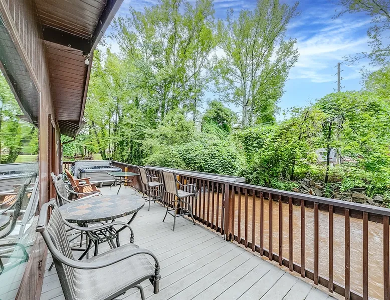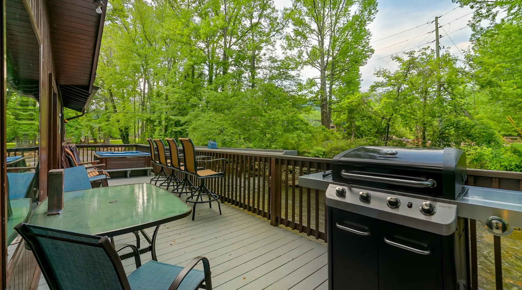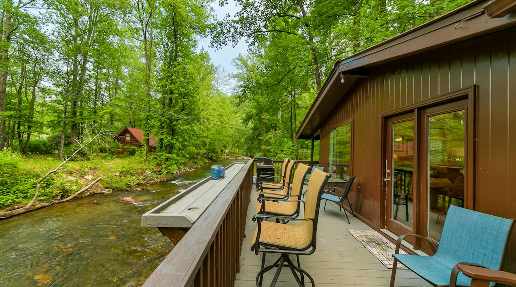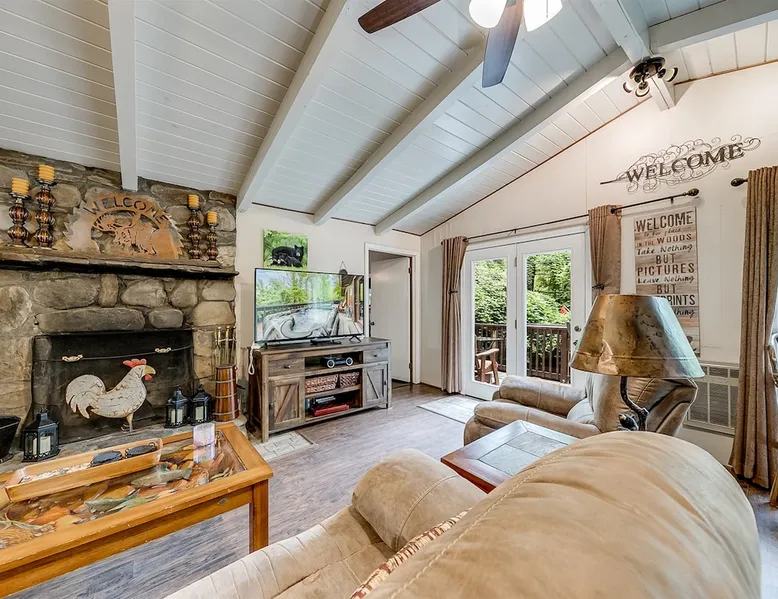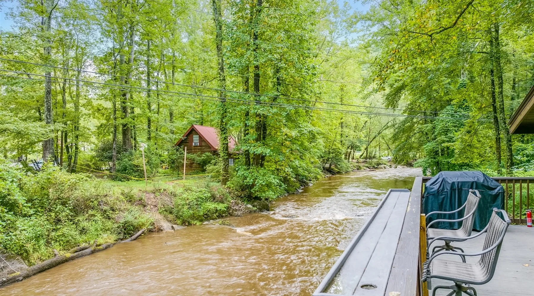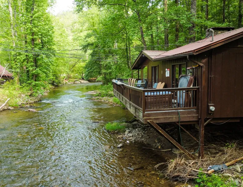 Spend your next vacation on-the-edge of the Chattahoochee River! Guests will truly enjoy River's Edge. This rustic 2 bedroom, 2 bath cabin is the perfect place to enjoy nature while listening to the sounds of the river running by from the open deck overhanging the river. A fisherman's paradise - trout fishing right in front of your own cabin - catch your limit on the beautiful clear waters of the fast-flowing Chattahoochee River. Perfect for families wanting to tube, fish, and BBQ. The space Guests will truly enjoy River`s Edge. This rustic 2 bedroom, 2 bath cabin is the perfect place to enjoy nature while listening to the sounds of the river running by from the open deck overhanging the river. A fisherman`s paradise - trout fishing right in front of your own cabin - catch your limit on the beautiful clear waters of the fast flowing Chattahoochee River. The property is close to the Chattahoochee Wildlife Management Preserve and there is something for everyone in the area: fishing, hiking, river tubing, or horseback riding at Sunburst Stables or just relaxing in the hot tub on the deck as you watch the river flow by. Could it get any better than this? This perfect spot for rest and relaxation is located close to nature and the headwaters of the Upper Chattahoochee River and only 1 mile from the vibrant center of Helen, GA. This cozy cabin is located just minutes from the shopping and dining of the delightful alpine village of Helen, GA and a short drive to the spectacular Anna Ruby Falls, Dukes Creek Falls, Smithgall Woods Center and Unicoi State Park. It is the perfect vacation cabin for a couple or small family. River`s Edge is lovingly cared for and features a cozy stone, wood-burning fireplace, wood paneling throughout, and a well equipped kitchen with everything you need. Guest access Outdoors: Large Spacious Deck Overhanging the Chattahoochee River with Hot Tub Propane Grill with Spare Tank Outdoor Lighting Large Lounger for 2 Outdoor Table and Chairs Living Room: Sofa - Leather Loveseat - Leather End Tables and Lamps Custom Designed Coffee Table Stoned Wood Burning Fire Place TV with Cable / DVD Player / VCR Central Heat and Air Vaulted Ceilings Kitchen - Dining: Table and Chairs for (6) Dishes Flatware Glassware Pots and Pans Baking Dishes Coffee Pot Toaster Blender Stove, Range, Refrigerator Microwave Washer and Dryer for Weekly Bookings Bathroom: Tub - Shower Combo Towels Provided Bedroom - #1 Private - Master Bedroom - Hot Tub Outside of Door King Sized Bed w/ High End Linens and Bedding Queen Sized Bed Entertainment Center with TV Chest Night Stand Bedroom - #2 Private - Guest Bedroom Queen Sized Bed w/ High End Bedding and Linens Chest with TV Night Stands Other things to note 25+ age requirement for lead guest. No exceptions. This property is not pet-friendly. No exceptions. Digital rental agreement will be required to sign and complete after property is booked.