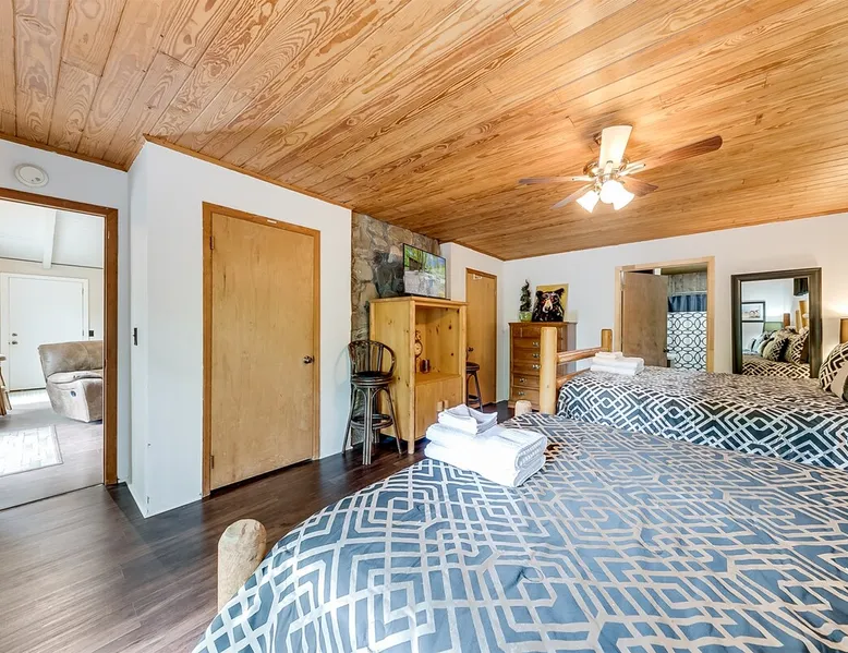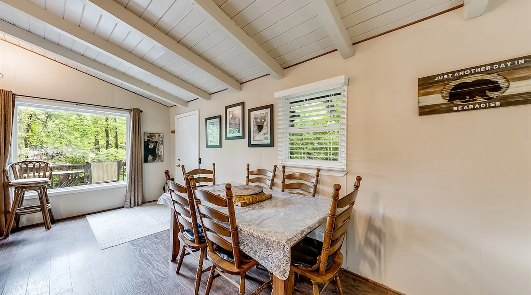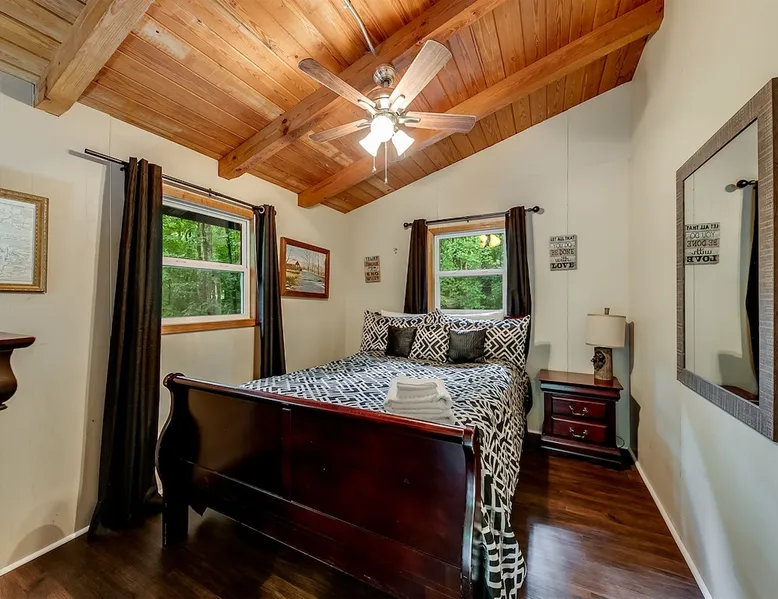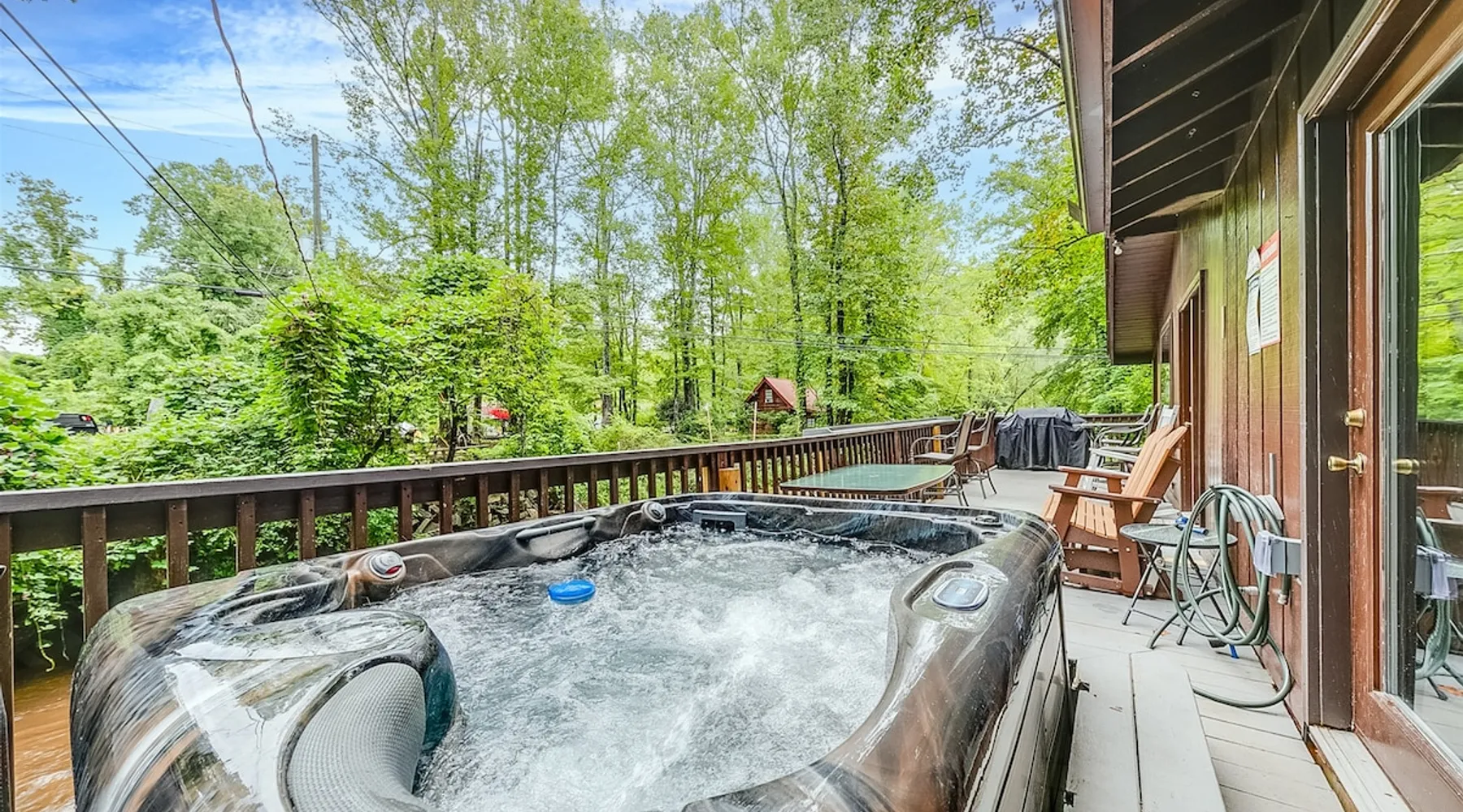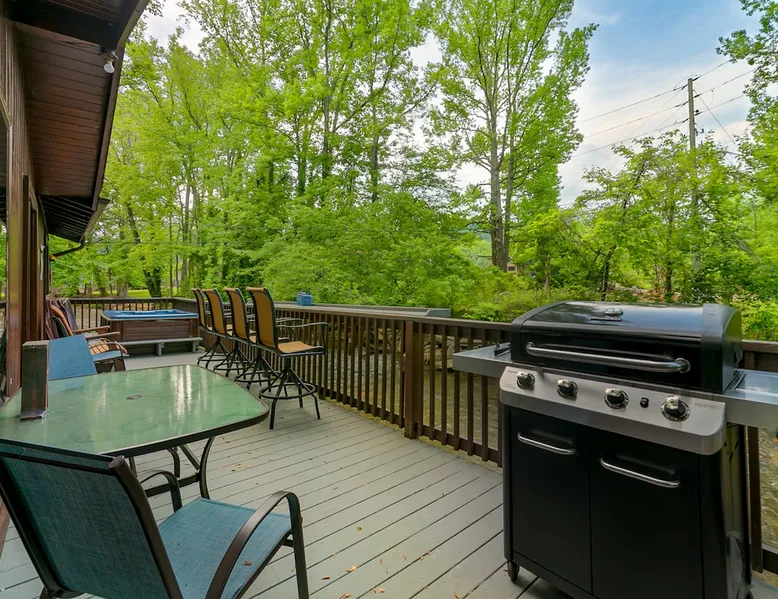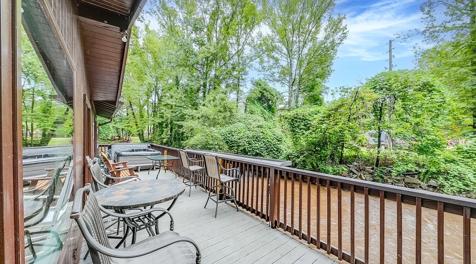 Spend your next vacation on-the-edge of the Chattahoochee River! Guests will truly enjoy River's Edge. This rustic 2 bedroom, 2 bath cabin is the perfect place to enjoy nature while listening to the sounds of the river running by from the open deck overhanging the river. A fisherman's paradise - trout fishing right in front of your own cabin - catch your limit on the beautiful clear waters of the fast-flowing Chattahoochee River. Perfect for families wanting to tube, fish, and BBQ. The space Guests will truly enjoy River`s Edge. This rustic 2 bedroom, 2 bath cabin is the perfect place to enjoy nature while listening to the sounds of the river running by from the open deck overhanging the river. A fisherman`s paradise - trout fishing right in front of your own cabin - catch your limit on the beautiful clear waters of the fast flowing Chattahoochee River. The property is close to the Chattahoochee Wildlife Management Preserve and there is something for everyone in the area: fishing, hiking, river tubing, or horseback riding at Sunburst Stables or just relaxing in the hot tub on the deck as you watch the river flow by. Could it get any better than this? This perfect spot for rest and relaxation is located close to nature and the headwaters of the Upper Chattahoochee River and only 1 mile from the vibrant center of Helen, GA. This cozy cabin is located just minutes from the shopping and dining of the delightful alpine village of Helen, GA and a short drive to the spectacular Anna Ruby Falls, Dukes Creek Falls, Smithgall Woods Center and Unicoi State Park. It is the perfect vacation cabin for a couple or small family. River`s Edge is lovingly cared for and features a cozy stone, wood-burning fireplace, wood paneling throughout, and a well equipped kitchen with everything you need. Guest access Outdoors: Large Spacious Deck Overhanging the Chattahoochee River with Hot Tub Propane Grill with Spare Tank Outdoor Lighting Large Lounger for 2 Outdoor Table and Chairs Living Room: Sofa - Leather Loveseat - Leather End Tables and Lamps Custom Designed Coffee Table Stoned Wood Burning Fire Place TV with Cable / DVD Player / VCR Central Heat and Air Vaulted Ceilings Kitchen - Dining: Table and Chairs for (6) Dishes Flatware Glassware Pots and Pans Baking Dishes Coffee Pot Toaster Blender Stove, Range, Refrigerator Microwave Washer and Dryer for Weekly Bookings Bathroom: Tub - Shower Combo Towels Provided Bedroom - #1 Private - Master Bedroom - Hot Tub Outside of Door King Sized Bed w/ High End Linens and Bedding Queen Sized Bed Entertainment Center with TV Chest Night Stand Bedroom - #2 Private - Guest Bedroom Queen Sized Bed w/ High End Bedding and Linens Chest with TV Night Stands Other things to note 25+ age requirement for lead guest. No exceptions. This property is not pet-friendly. No exceptions. Digital rental agreement will be required to sign and complete after property is booked.