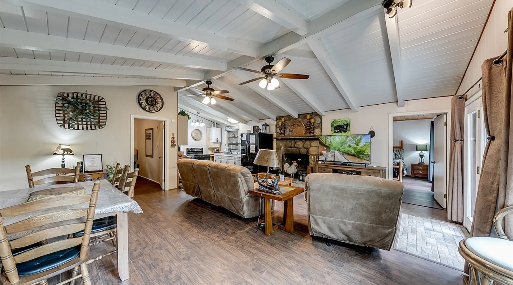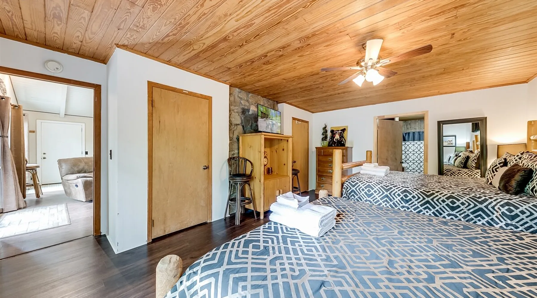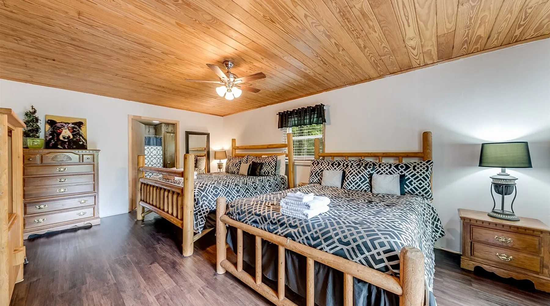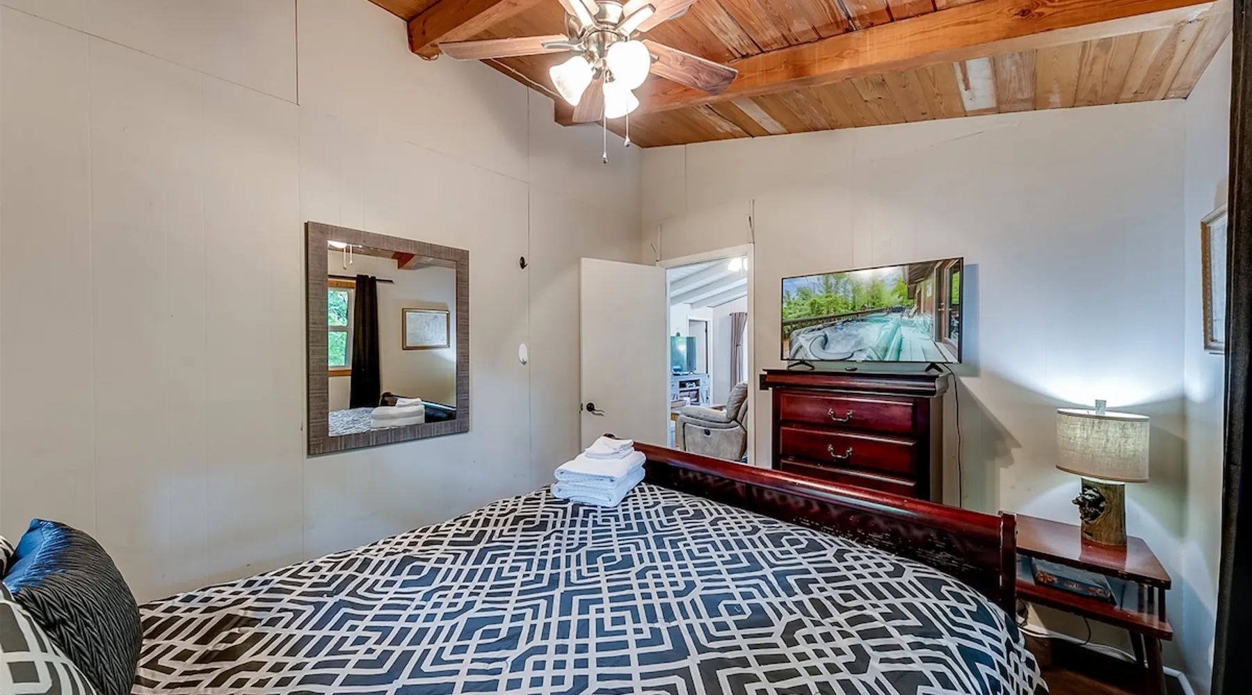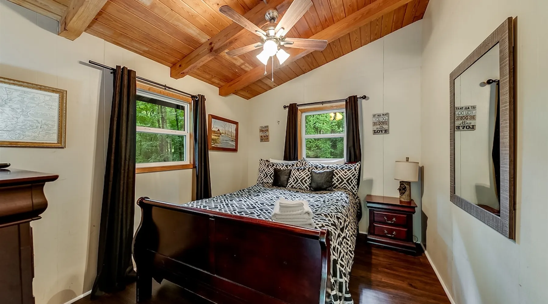 Spend your next vacation on-the-edge of the Chattahoochee River! Guests will truly enjoy River's Edge. This rustic 2 bedroom, 2 bath cabin is the perfect place to enjoy nature while listening to the sounds of the river running by from the open deck overhanging the river. A fisherman's paradise - trout fishing right in front of your own cabin - catch your limit on the beautiful clear waters of the fast-flowing Chattahoochee River. Perfect for families wanting to tube, fish, and BBQ. The space Guests will truly enjoy River`s Edge. This rustic 2 bedroom, 2 bath cabin is the perfect place to enjoy nature while listening to the sounds of the river running by from the open deck overhanging the river. A fisherman`s paradise - trout fishing right in front of your own cabin - catch your limit on the beautiful clear waters of the fast flowing Chattahoochee River. The property is close to the Chattahoochee Wildlife Management Preserve and there is something for everyone in the area: fishing, hiking, river tubing, or horseback riding at Sunburst Stables or just relaxing in the hot tub on the deck as you watch the river flow by. Could it get any better than this? This perfect spot for rest and relaxation is located close to nature and the headwaters of the Upper Chattahoochee River and only 1 mile from the vibrant center of Helen, GA. This cozy cabin is located just minutes from the shopping and dining of the delightful alpine village of Helen, GA and a short drive to the spectacular Anna Ruby Falls, Dukes Creek Falls, Smithgall Woods Center and Unicoi State Park. It is the perfect vacation cabin for a couple or small family. River`s Edge is lovingly cared for and features a cozy stone, wood-burning fireplace, wood paneling throughout, and a well equipped kitchen with everything you need. Guest access Outdoors: Large Spacious Deck Overhanging the Chattahoochee River with Hot Tub Propane Grill with Spare Tank Outdoor Lighting Large Lounger for 2 Outdoor Table and Chairs Living Room: Sofa - Leather Loveseat - Leather End Tables and Lamps Custom Designed Coffee Table Stoned Wood Burning Fire Place TV with Cable / DVD Player / VCR Central Heat and Air Vaulted Ceilings Kitchen - Dining: Table and Chairs for (6) Dishes Flatware Glassware Pots and Pans Baking Dishes Coffee Pot Toaster Blender Stove, Range, Refrigerator Microwave Washer and Dryer for Weekly Bookings Bathroom: Tub - Shower Combo Towels Provided Bedroom - #1 Private - Master Bedroom - Hot Tub Outside of Door King Sized Bed w/ High End Linens and Bedding Queen Sized Bed Entertainment Center with TV Chest Night Stand Bedroom - #2 Private - Guest Bedroom Queen Sized Bed w/ High End Bedding and Linens Chest with TV Night Stands Other things to note 25+ age requirement for lead guest. No exceptions. This property is not pet-friendly. No exceptions. Digital rental agreement will be required to sign and complete after property is booked.