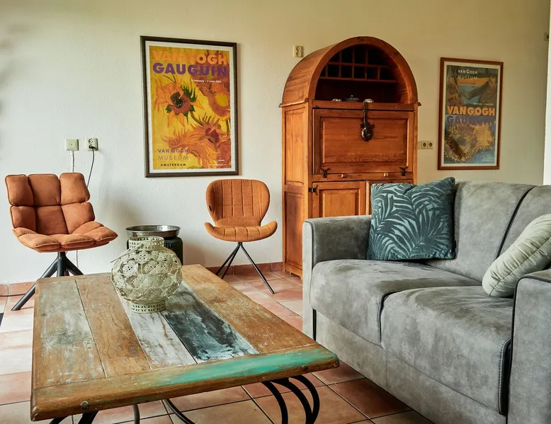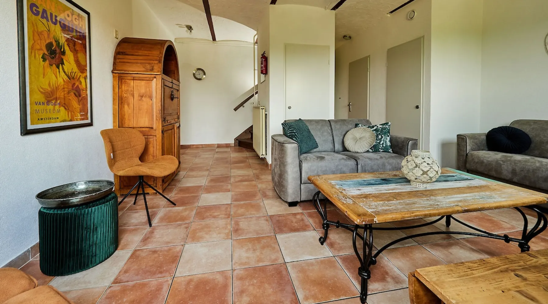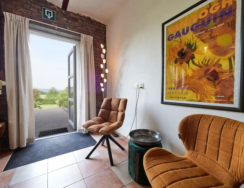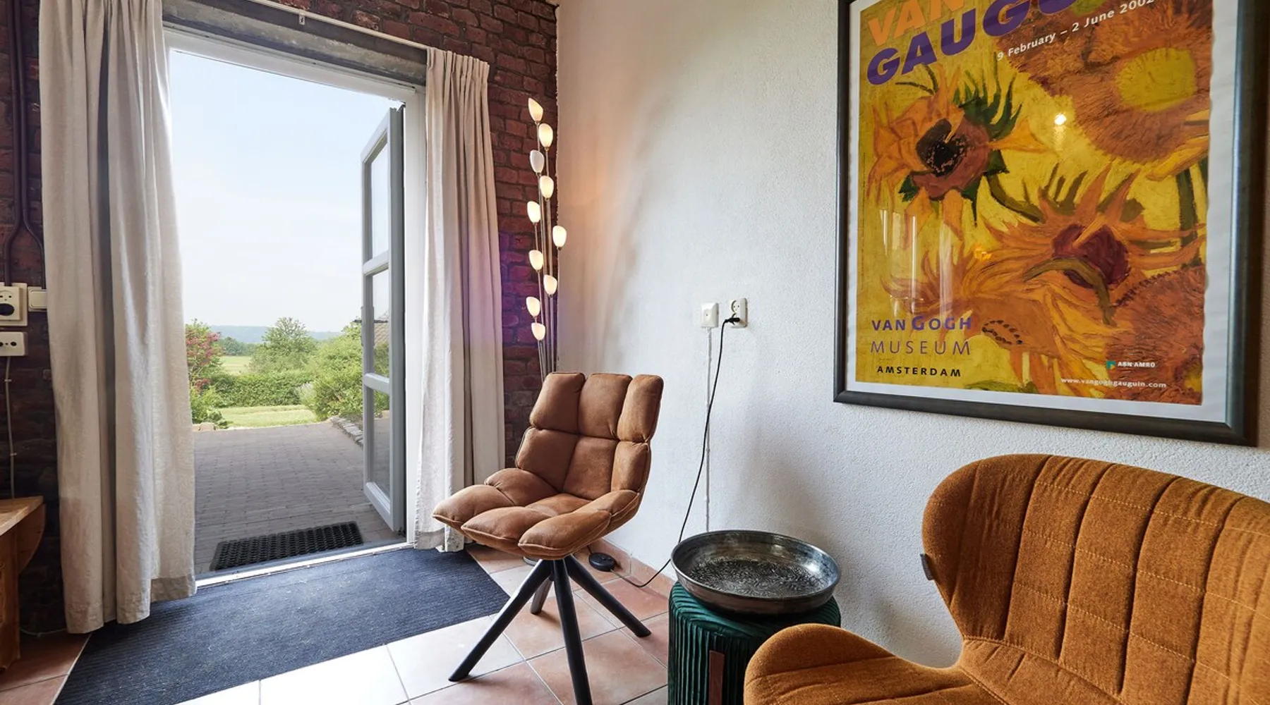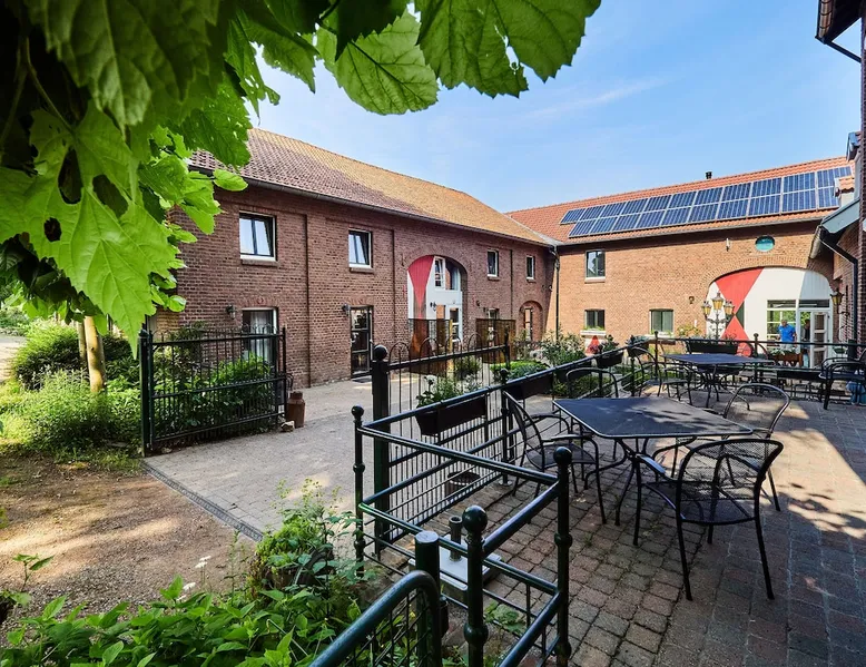 In this spacious holiday home with views over the hilly landscape, you can really catch your breath. The accommodation is authentically furnished and features a complete kitchen with new appliances, new modern sanitary facilities, two bathrooms and wonderfully comfortable quality box springs. Recreational rental only. The space The holiday flat De Oogappel offers space for 6 people and has both unobstructed views of the fantastic Limburg countryside and views of the cosy courtyard of the Hoeve. The flat has a double living room, its own kitchen, two bathrooms and three bedrooms. The kitchen is equipped with a dishwasher, two refrigerators, a new oven, induction hob, microwave and extensive kitchen equipment. The bathrooms have been completely renovated and modernised. The bedrooms have comfortable box springs in a cosy ambience with authentic furnishings. The nature and furnishings of the holiday flat make it an ideal place for fine family gatherings and friends looking for peace and quiet and recreation in the immediate surroundings and as a base for fun excursions. The farmhouse is not suitable for young people who prefer entertainment. For this reason, we cannot honour bookings of young people under 25. Guest access Access to the entire holiday flat and the surrounding 1-hectare garden Other things to note You can book: -long weekend from Friday 15:00 hours to Monday 10:00 hours -Short weekend from Friday 15:00 hours to Sunday 12:00 hours -midweek from Monday 15:00 hours to Friday 10:00 hours -week from Friday-Friday or Monday-Monday -holidays may differ Bath towel package can be ordered afterwards for €8.50 per person/package