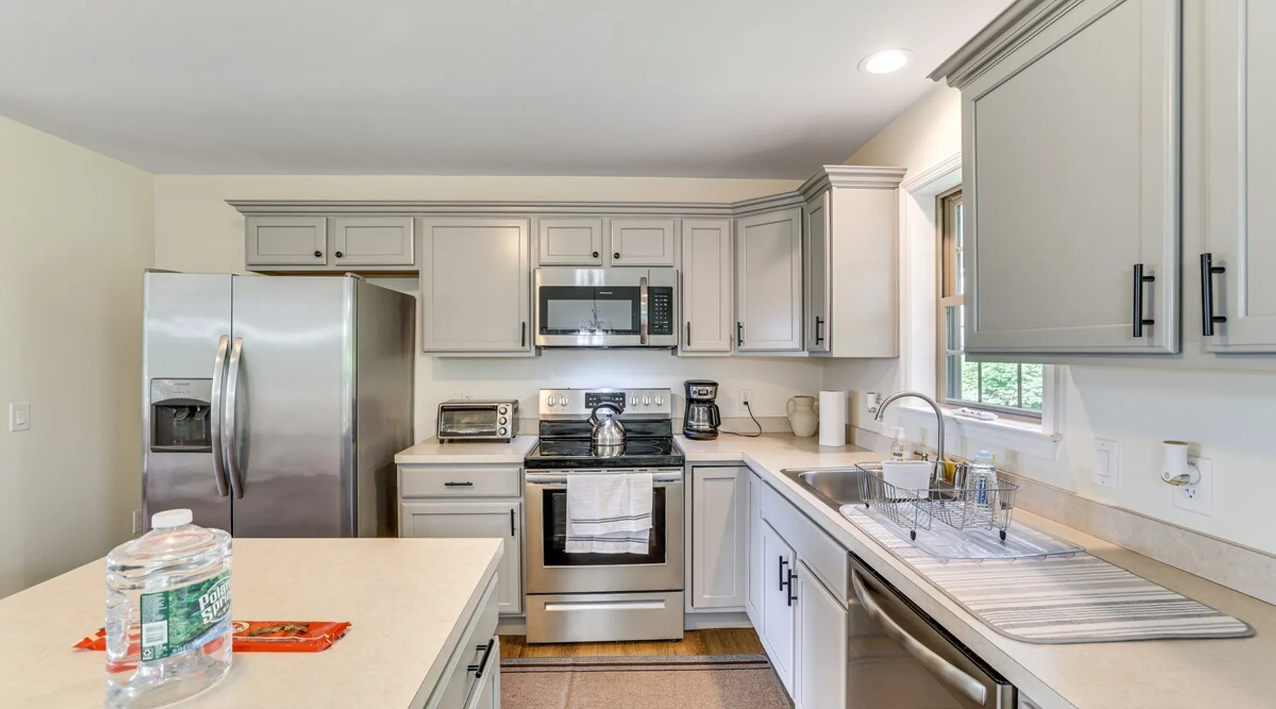 Make your escape to rural Connecticut to relax in the comfort of your home or explore activities no matter the season! This charming 3-bedroom, 2.5-bathroom vacation rental house is only steps from Red Cedar Lake and 0.5 miles to Mooween State Park. Watch your worries melt away in this Lebanon home designed for a secluded retreat with Downtown Hartford, Mystic Aquarium, Mohegan Sun Casino, Hammonasset Beach, and Powder Ridge Mountain, plus plenty of hiking trails and golf at your fingertips! The space Walk to Red Cedar Lake | 1,860 Sq Ft Sink into full relaxation upon arrival at this lakeside Lebanon home tucked away in the woods with an array of activities for family, friends and even Fido to enjoy in the lush rolling hills of eastern Connecticut. Bedroom 1: King Bed | Bedroom 2: Queen Bed | Bedroom 3: 2 Twin Beds OUTDOOR LIVING: Outside patio deck, lake access, large backyard, beach chairs, charcoal grill INDOOR LIVING: Cable flat-screen TVs, dining room table, open layout, L-shaped sofa KITCHEN: Fully equipped, dishwasher, breakfast bar, stainless steel appliances GENERAL: Free WiFi, washer & dryer, towels & linens, hair dryer, A/C, central heat FAQ: Steps required, pet fee (paid pre-trip) PARKING: Garage (2 vehicles), Driveway (4 vehicles) Guest access Guests will have access to the entire property Other things to note - No smoking - Pet friendly with $40 fee (+ fees & taxes) - No events, parties or large gatherings - Must be at least 25 years old to book - Additional fees and taxes may apply - Photo ID may be required upon check-in - The property requires 3 steps to access and may be difficult for guests with mobility impairments