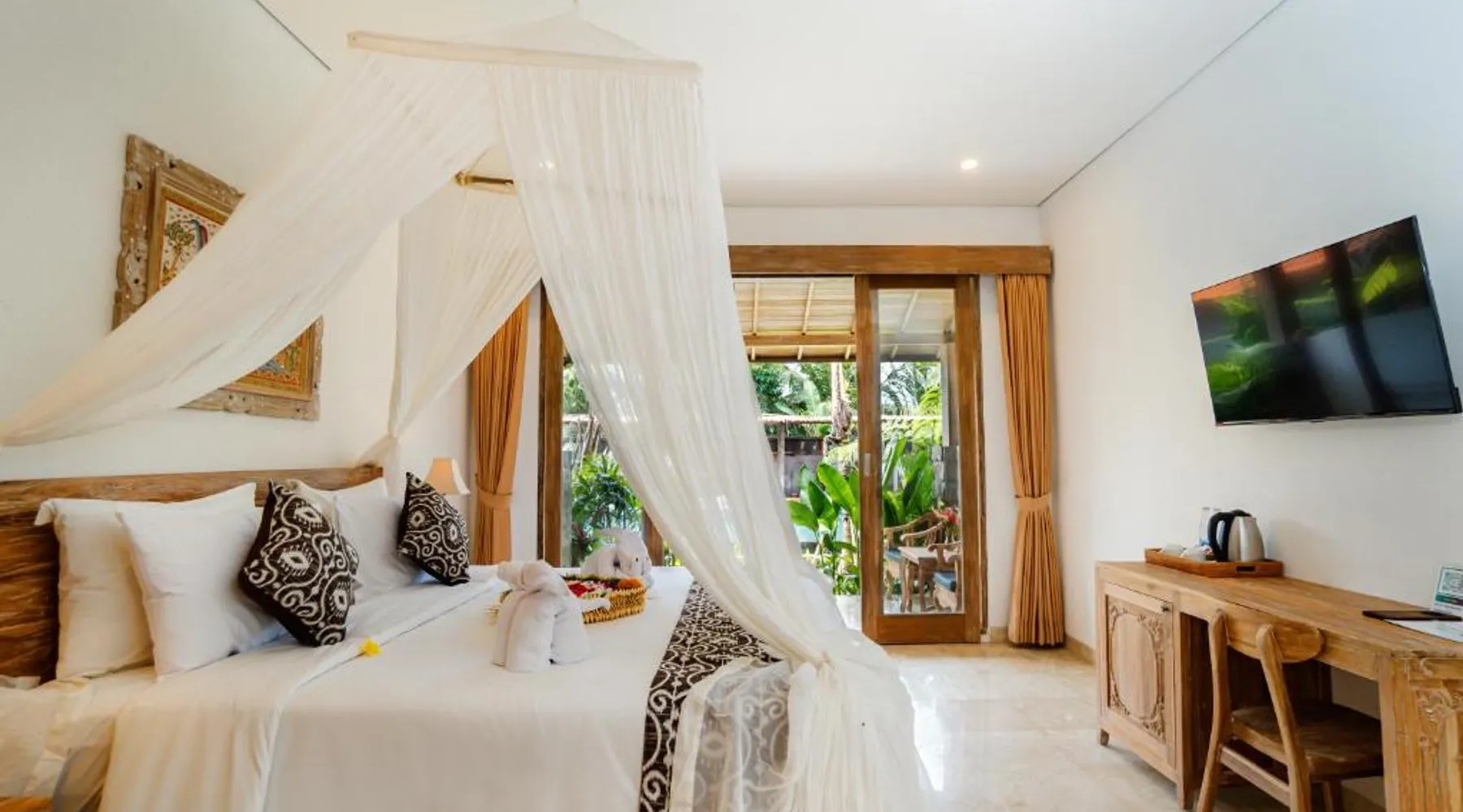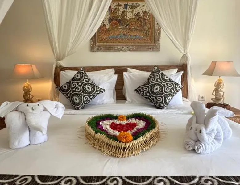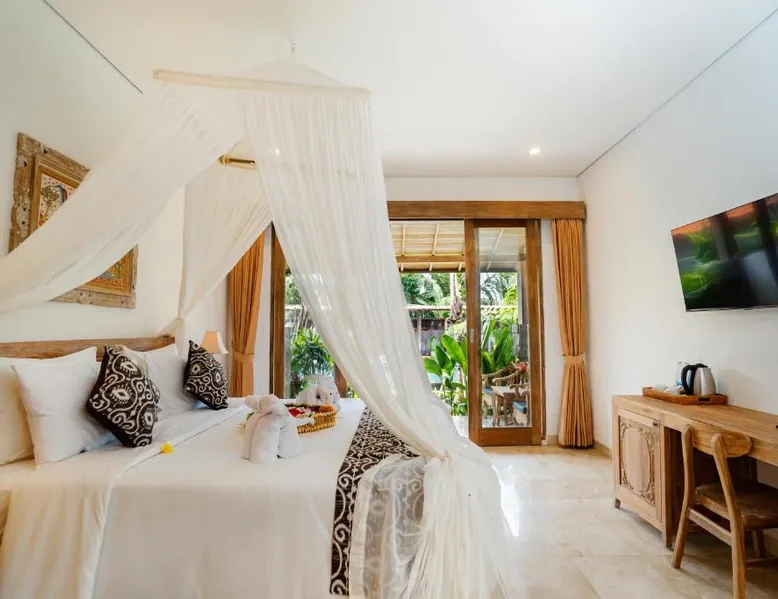 Located about a 10-minute drive from Kemenuh Waterfall, Kudesa Bali offers cozy and homey accommodations with free WiFi access and free on-site parking for guests who drive. It takes a 20-minut drive from the property to Bali Safari and Marine Park, and getting to Bali Denpasar International Airport will take around 40 minutes by car. The accommodations will provide you with a terrace and a seating area. Private bathroom also comes with a shower. You can enjoy garden view from the room. Extras include bed linen. Other facilities offered at the property include dry cleaning and laundry facilities. The friendly staff can help to arrange airport transfer service, shuttle service, laundry and ironing requests at additional charges. A tour desk is also available. As for dining option, guests can explore the surrounding area where Gahary Restaurant serving local dishes can be found just a 5-minute walk away. Guests will have a special experience as this double room offers a infinity pool. This air-conditioned double room includes a flat-screen TV with cable channels, a private bathroom as well as a terrace with garden views. The unit offers 1 bed.