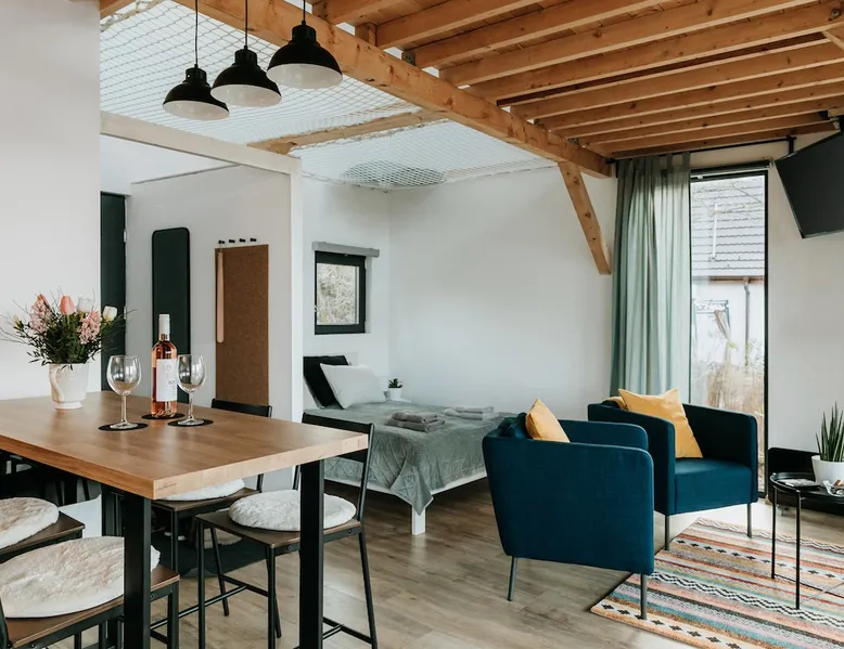 Our 30 m2 sunny cottage with a big garden is located in a quiet part of Zebegény, ideal for those who want to relax in peace. The spacious terrace offers a spectacular panoramic view over the Danube bend. On the lower level, there is a living room, a small kitchen, a double bed and a bathroom; on the mezzanine a double mattress and a loft net. The house is ONE SPACE, that comfortably accommodates 2 people. Nearby Michelin-recommended restaurant. The space Wifi, Netflix available. Guest access The whole house and garden is yours. Other things to note The house has 2 floors, is not accessible by wheelchair and is not safe for children under 14. The house is not so close to the village center or the train station; it is located on a hill. We recommend this accommodation mainly for those arriving by car, as it is not really comfortable to walk up the hill with a suitcase. :) Registration Details MA22053827