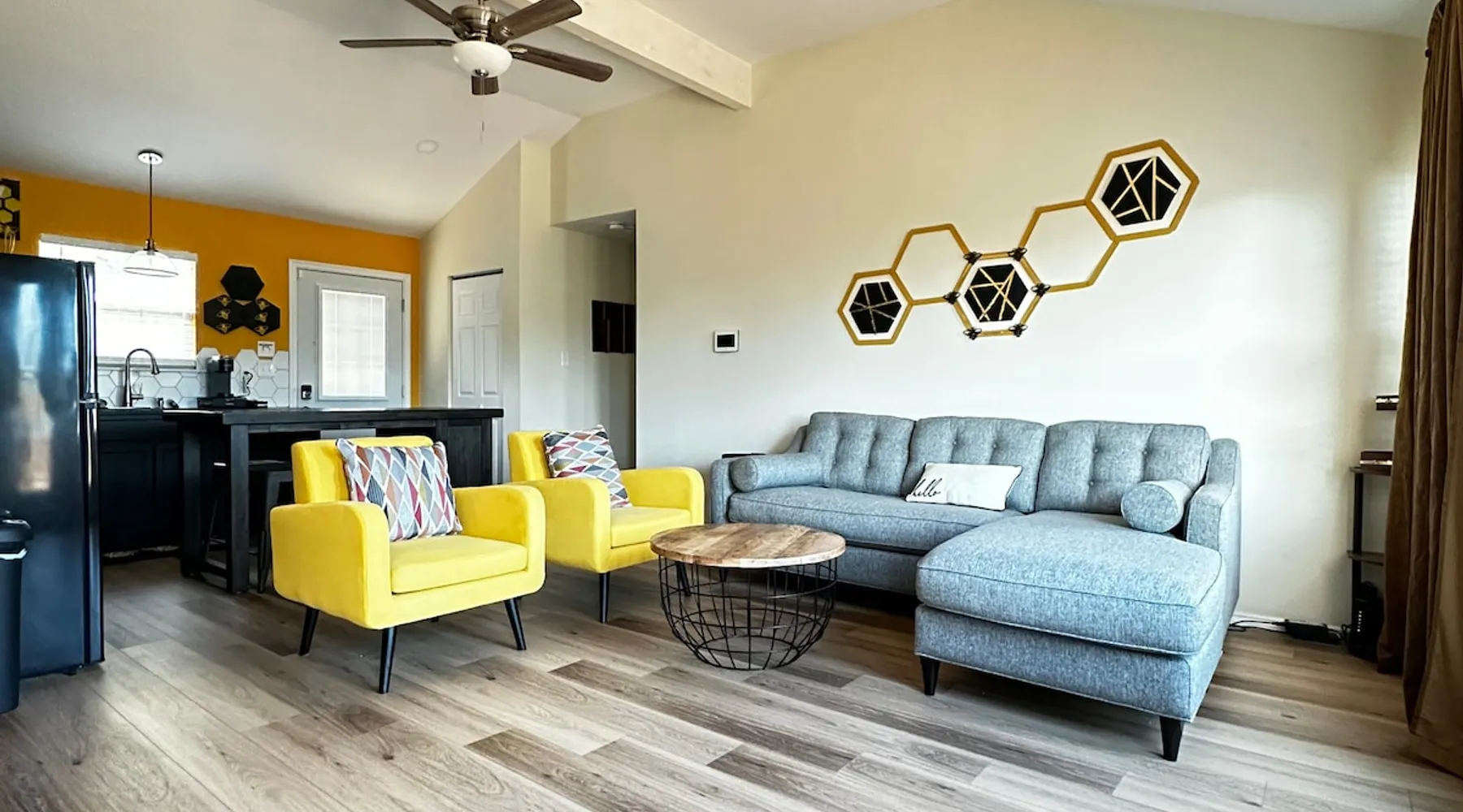 Welcome to Texas Honey Bee—your hive away from home, just a mile from Canyon Lake and minutes from Whitewater Amphitheater and historic Gruene Hall. This charming 2BR/2BA retreat sleeps 6 with a queen sleeper sofa, panoramic Hill Country views, and cozy bee-themed charm. This property buzzes with warmth, comfort, and relaxation. Whether you’re floating the river or dancing under the stars, let the good times bee-gin at this buzzworthy getaway. The space Introducing "Texas Honey Bee" – a newly renovated retreat near Canyon Lake. With 2 bedrooms, 2 bathrooms, and a queen sleeper sofa, up to 6 guests can experience the charm. Take in Texas Hill Country views from the deck and embrace the joy of handwashing dishes, turning tasks into memories. Buzzing with comfort, remember your comfort comes first – message anytime on Airbnb. Enjoy the sweetness of a getaway, where no dishwasher or garbage disposal means more time to savor the moments. Guest access Guests have access to the rooms in the entire house except for “Private” areas where posted.