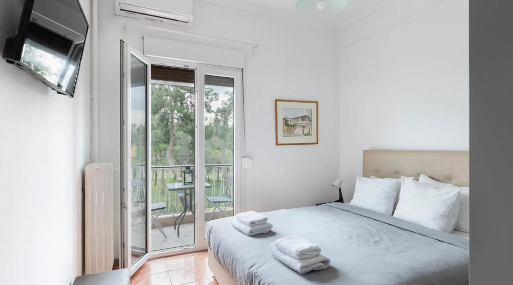 Spacious and Modern: Olympic Hadrian view apartment! in Athens offers a spacious, recently renovated apartment with two bedrooms and two bathrooms. The living room includes a sofa bed and a dining area. Essential Facilities: Guests enjoy a terrace with city views, free WiFi, air-conditioning, and a fully equipped kitchen with a coffee machine, microwave, and oven. Additional amenities include a balcony, walk-in shower, and a washing machine. Prime Location: Located in the city center, the apartment is a short walk from Akropolis Metro Station (4 minutes) and the Temple of Olympion Zeus (984 feet). Eleftherios Venizelos Airport is 19 mi away. Guest Satisfaction: Highly rated for its convenient location, attentive host, and immaculate room cleanliness. This spacious apartment is consisted of of 1 living room, 2 separate bedrooms and 2 bathrooms with a walk-in shower and a hairdryer. The well-fitted kitchen features a refrigerator, kitchenware, an oven and a microwave. Featuring a terrace with city views, this apartment also offers air conditioning and a flat-screen TV. The unit offers 3 beds.