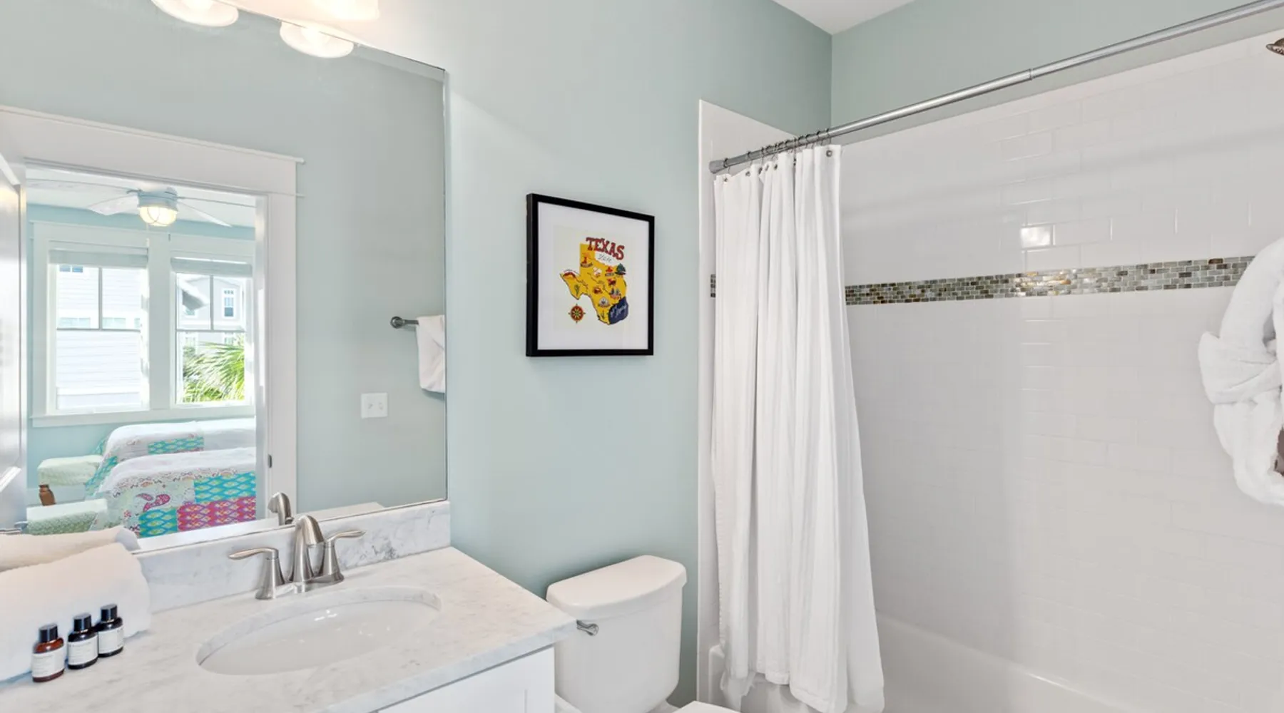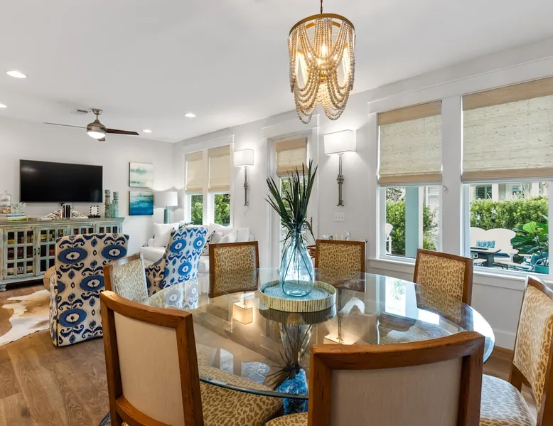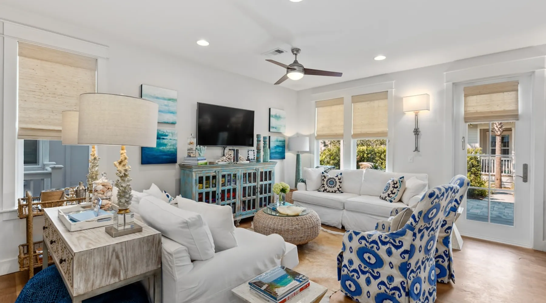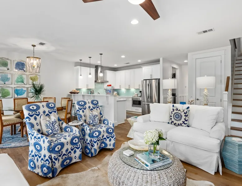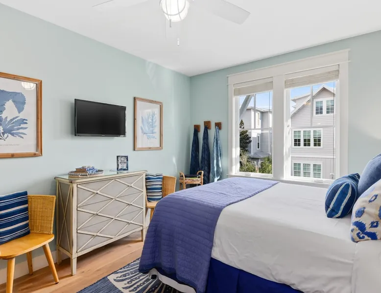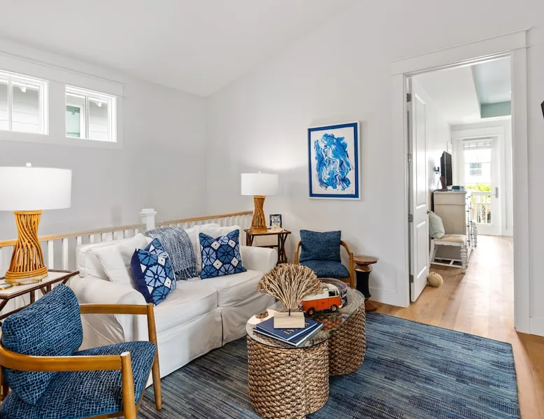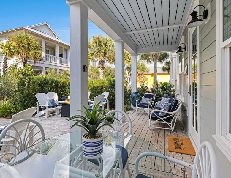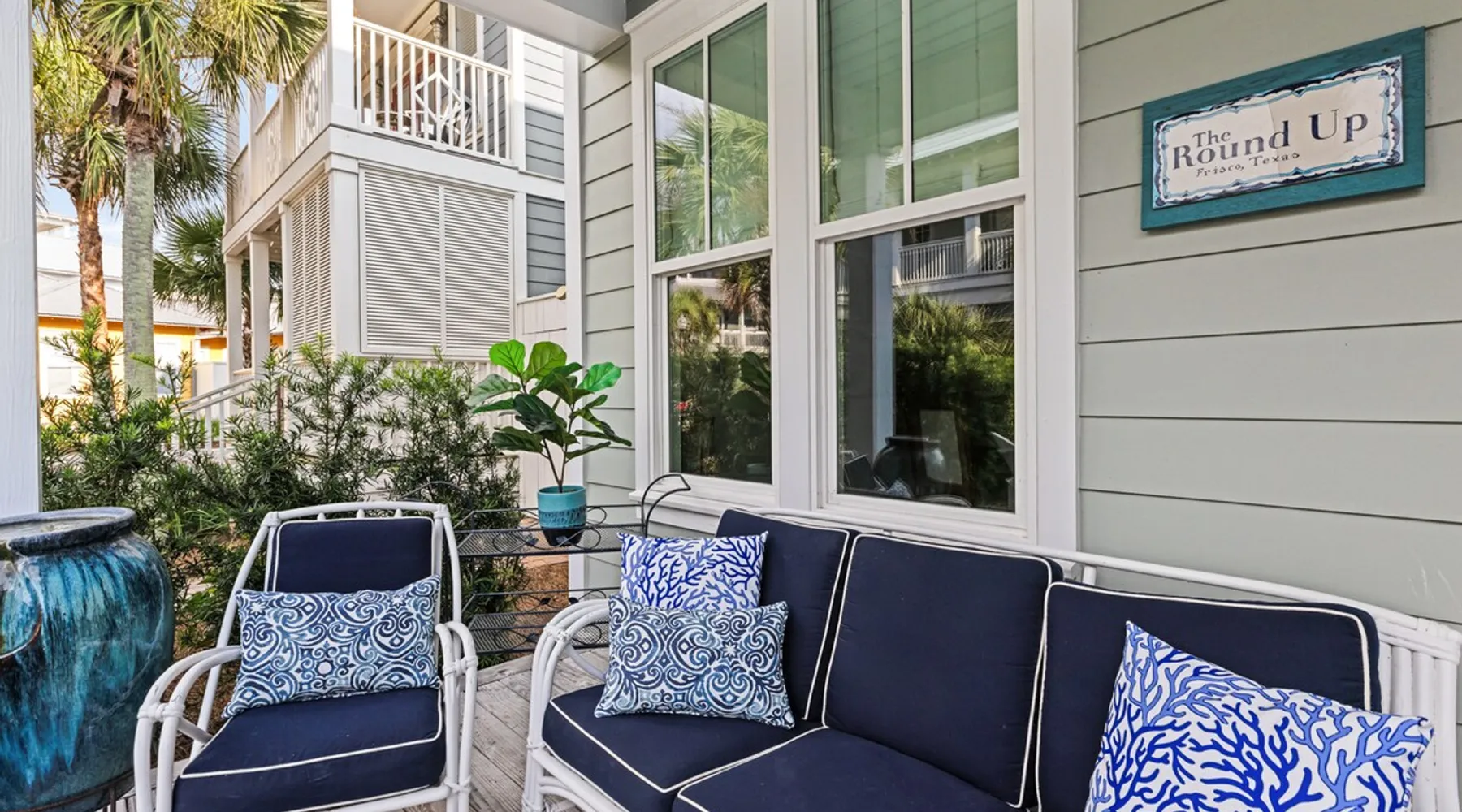 The Round Up - New luxury listing in Seacrest Beach! The space The Round Up by Oversee 30A | 2025 Diamond Winner-Best Rental Mgmt. Introducing "The Round Up", your ultimate beach getaway. With 2,440 square feet of luxury living space, this stunning 5 BDRM, 4.5 BTH home sleeps up to 12 guests. Highlights: 📍 Seacrest 👣 .4 mile to beach (private access) 👙 1 block to Florida's 2nd largest community pool! 🕶️ Complimentary tram to beach and back 🔥 Near Rosemary Beach and Alys Beach 🚲 4 bikes! 🚿 Outdoor shower 🦞 4-star restaurants 🛍️ Boutiques Staying between Alys Beach and Rosemary Beach? My goodness, what a great spot! With 4 complimentary bikes, you and your crew will have a blast cruising to 30A’s best shopping and dining. Also, the beach tram stop is right outside the home, providing a convenient shuttle to the shore, just minutes away. Inside, the inviting coastal décor is adorable! And features soothing white and blue hues, beach glass accents, and pearlescent tile, creating a beachy atmosphere. You'll appreciate the convenience of the fully enclosed outdoor shower near the back door. Relax and reconnect on the covered front porch, in the cozy living room, or in the loft, with a seating area and TV on the upstairs landing. Outside, unwind in the shade of the covered porch, which comfortably seats seven, or bask in the Florida sunshine on the expansive patio or gather around the fire pit. The open galley kitchen features custom cabinets, marble countertops, and a spacious pantry. Enjoy the 8-person dining table, with additional seating for four at the breakfast bar. A luxurious primary bedroom, king, is on the first floor, while another occupies the upstairs area, with a private deck and porch swing bed, and an in-room coffee maker. Additionally, the white marble bathroom includes a soaking tub. On the second floor is a bunk room with four twin beds, a guest room with two twin beds, and another guest room, queen. Don't miss the chance to experience coastal living at its finest. Go on half-day bike adventures through gorgeous neighborhoods, over dune lakes, to faraway beaches! Pack for a wine-picnic, in the sand! There isn’t a single beach access, or eatery, or bar, that isn’t bike-friendly. Book your luxurious stay at The Round Up today and create adventures, laughs, and lots of lasting memories. Welcome! Our dedicated team at Oversee 30A, a local company, is committed to ensuring your stay is nothing short of exceptional. We strive for perfection and are just a stone's throw away should you require any assistance. Reach out to us anytime, seven days a week, with the added peace of a 24/7 emergency line. Overview: -.4 mile to beach (private access) - 1 block to community pool and amphitheater - Short walk or bike ride to Rosemary Beach and Alys Beach - Complimentary tram service to beach and back (March-October) - 5 bedrooms, 4.5 baths - 2,440 sq. ft. - Gas grill - Outdoor shower - Wi-Fi - 4 bikes included - Parking for 2 vehicles in front, plus spaces on first come, first serve basis on side of home Overnight: - King in 1st floor primary bedroom; walk-in shower; TV - King in 2nd floor primary bedroom; walk-in shower, soaking tub; TV; private balcony - Bunk room with 4 twin beds in 2nd floor guest room; shared bath - Queen in 2nd floor guest room; shared bath - Two twin beds in 2nd floor guest room; full bath Check-in is 4:00 PM CST. Checkout is 10:00 AM CST. Other things to note Oversee 30A has a policy that prohibits renting to guests under the age of 25. Guests under 25 must be accompanied by a parent or guardian. This policy supersedes any other age-related information you might find on Airbnb listings. Violating this rule will result in the cancellation of your booking. Additionally, guests who book through Airbnb are required to sign our rental agreement. We look forward to hosting you soon!