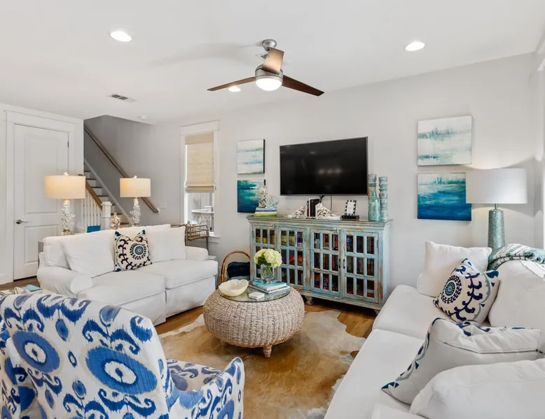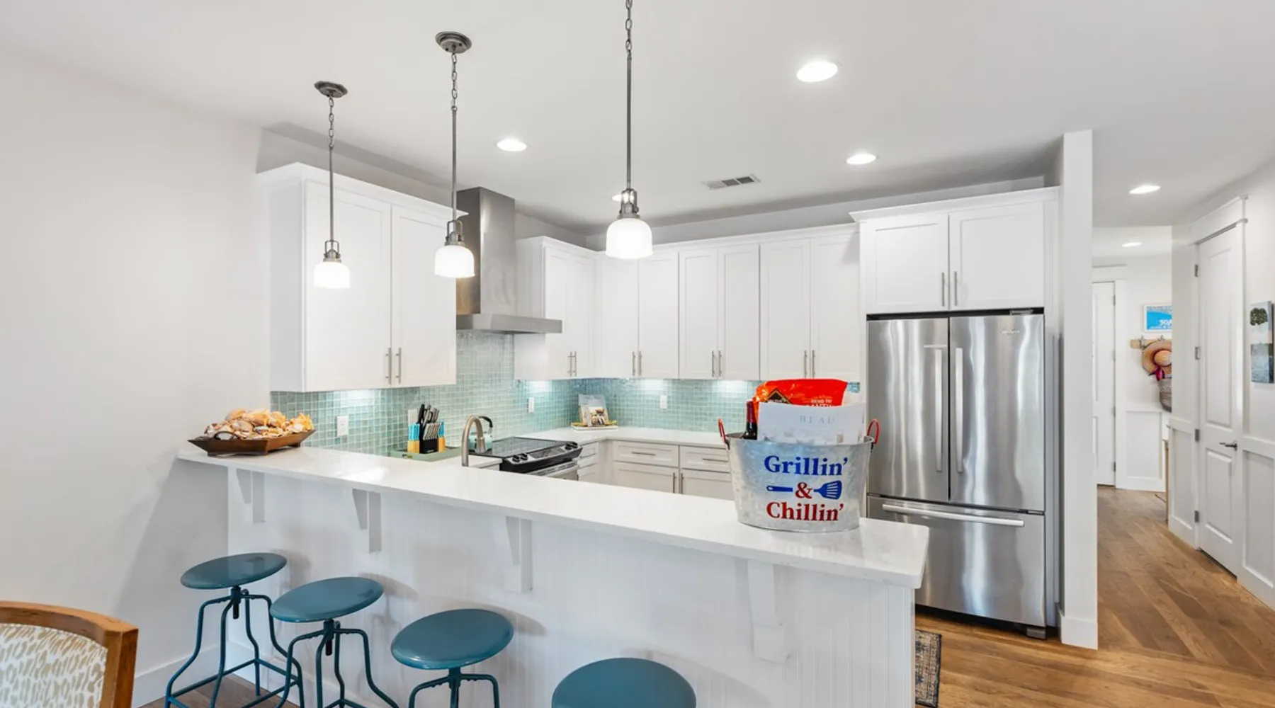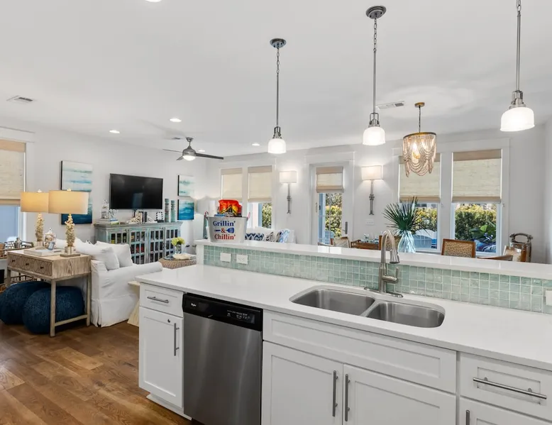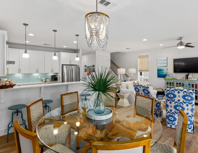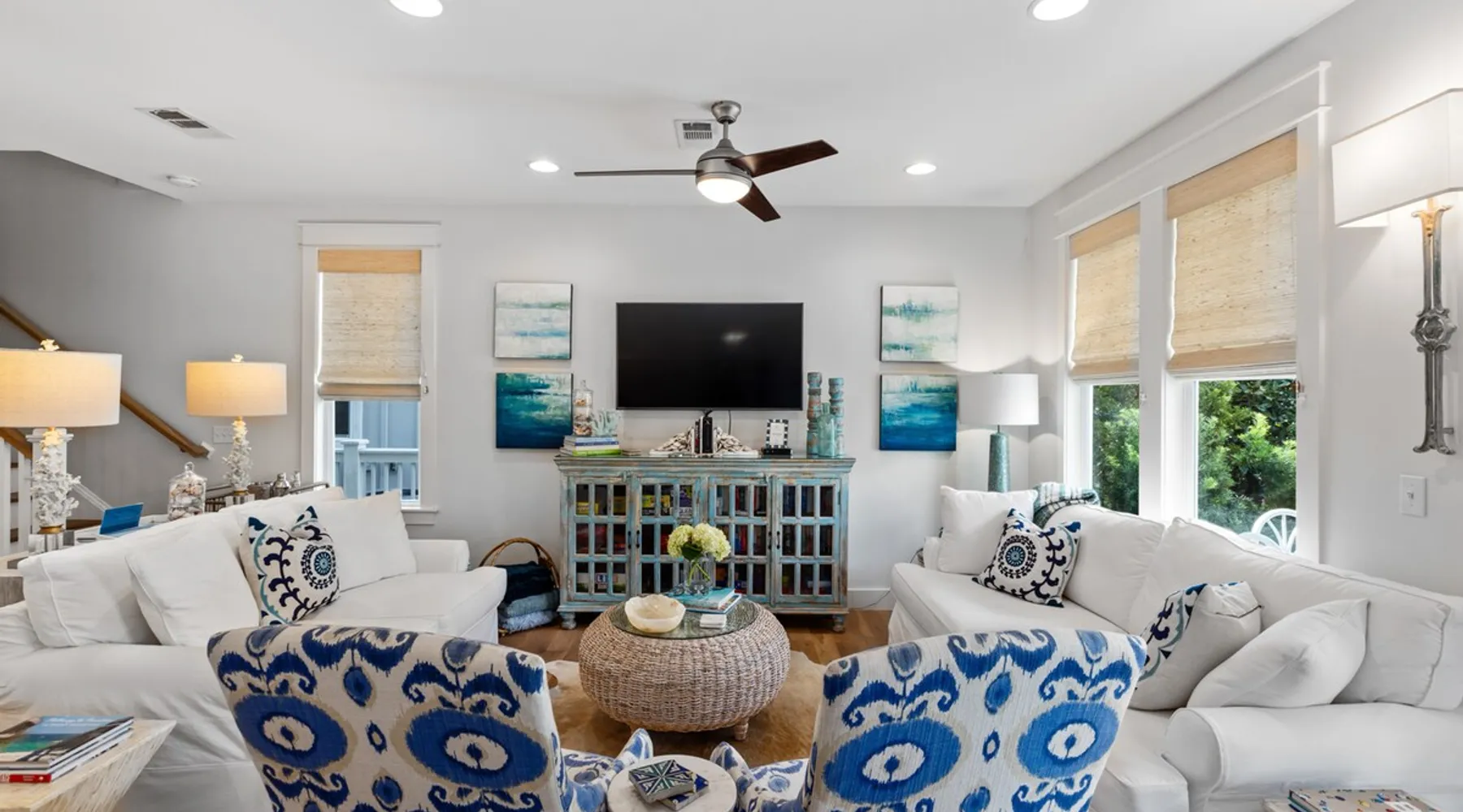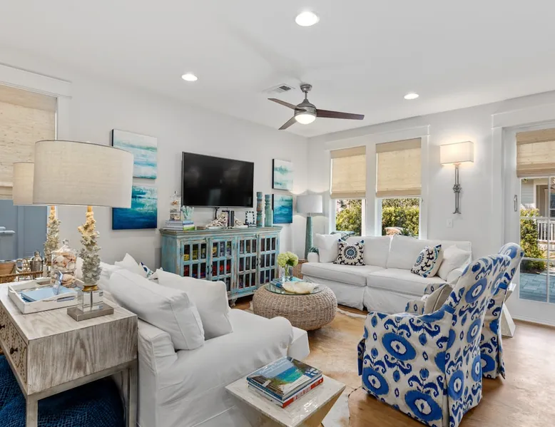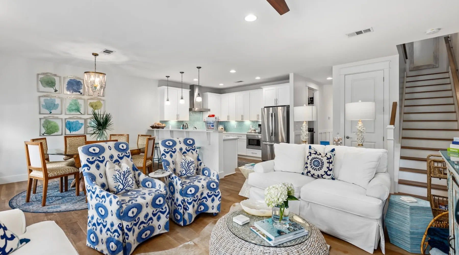 The Round Up - New luxury listing in Seacrest Beach! The space The Round Up by Oversee 30A | 2025 Diamond Winner-Best Rental Mgmt. Introducing "The Round Up", your ultimate beach getaway. With 2,440 square feet of luxury living space, this stunning 5 BDRM, 4.5 BTH home sleeps up to 12 guests. Highlights: 📍 Seacrest 👣 .4 mile to beach (private access) 👙 1 block to Florida's 2nd largest community pool! 🕶️ Complimentary tram to beach and back 🔥 Near Rosemary Beach and Alys Beach 🚲 4 bikes! 🚿 Outdoor shower 🦞 4-star restaurants 🛍️ Boutiques Staying between Alys Beach and Rosemary Beach? My goodness, what a great spot! With 4 complimentary bikes, you and your crew will have a blast cruising to 30A’s best shopping and dining. Also, the beach tram stop is right outside the home, providing a convenient shuttle to the shore, just minutes away. Inside, the inviting coastal décor is adorable! And features soothing white and blue hues, beach glass accents, and pearlescent tile, creating a beachy atmosphere. You'll appreciate the convenience of the fully enclosed outdoor shower near the back door. Relax and reconnect on the covered front porch, in the cozy living room, or in the loft, with a seating area and TV on the upstairs landing. Outside, unwind in the shade of the covered porch, which comfortably seats seven, or bask in the Florida sunshine on the expansive patio or gather around the fire pit. The open galley kitchen features custom cabinets, marble countertops, and a spacious pantry. Enjoy the 8-person dining table, with additional seating for four at the breakfast bar. A luxurious primary bedroom, king, is on the first floor, while another occupies the upstairs area, with a private deck and porch swing bed, and an in-room coffee maker. Additionally, the white marble bathroom includes a soaking tub. On the second floor is a bunk room with four twin beds, a guest room with two twin beds, and another guest room, queen. Don't miss the chance to experience coastal living at its finest. Go on half-day bike adventures through gorgeous neighborhoods, over dune lakes, to faraway beaches! Pack for a wine-picnic, in the sand! There isn’t a single beach access, or eatery, or bar, that isn’t bike-friendly. Book your luxurious stay at The Round Up today and create adventures, laughs, and lots of lasting memories. Welcome! Our dedicated team at Oversee 30A, a local company, is committed to ensuring your stay is nothing short of exceptional. We strive for perfection and are just a stone's throw away should you require any assistance. Reach out to us anytime, seven days a week, with the added peace of a 24/7 emergency line. Overview: -.4 mile to beach (private access) - 1 block to community pool and amphitheater - Short walk or bike ride to Rosemary Beach and Alys Beach - Complimentary tram service to beach and back (March-October) - 5 bedrooms, 4.5 baths - 2,440 sq. ft. - Gas grill - Outdoor shower - Wi-Fi - 4 bikes included - Parking for 2 vehicles in front, plus spaces on first come, first serve basis on side of home Overnight: - King in 1st floor primary bedroom; walk-in shower; TV - King in 2nd floor primary bedroom; walk-in shower, soaking tub; TV; private balcony - Bunk room with 4 twin beds in 2nd floor guest room; shared bath - Queen in 2nd floor guest room; shared bath - Two twin beds in 2nd floor guest room; full bath Check-in is 4:00 PM CST. Checkout is 10:00 AM CST. Other things to note Oversee 30A has a policy that prohibits renting to guests under the age of 25. Guests under 25 must be accompanied by a parent or guardian. This policy supersedes any other age-related information you might find on Airbnb listings. Violating this rule will result in the cancellation of your booking. Additionally, guests who book through Airbnb are required to sign our rental agreement. We look forward to hosting you soon!