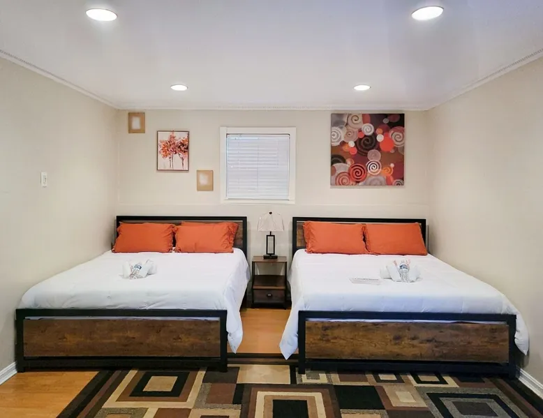 Fully furnished bedrooms on lower level, with dedicated bath. Enjoy Washington DC Metro (VA, DC & MD). Walk to biggest Shopping center in Alexandria & Fairfax County- almost all the restaurants, shops, stores like Walmart, Costco, Home Depot,etc. Express & 24/7 public buses to Kings St. & Huntington Metro station which connect to buses, trains, Amtrack to VA, DC & MD. Walk to Sherwood Hospital & regional Library. Close to National Harbor, MGM, Fort Belvoir, Old town, DCA Airport, Pentagon & DC. The space Fully furnished private quiet rooms with dedicated bathroom. The room on the right of the hallway includes a queen size bed, desk/workspace, TV and plenty of closet space. The room on the left includes 2 queen size beds, TV, wardrobe rack and and accent couch. There is free street parking. Park anywhere in the complex on the sides of the streets where there are no yellow lines (based on availability). Whatever your travel reason, we hope you enjoy the perfect combination of comfort and convenience this home has to offer !. Other guests maybe at the home. Guests have shared access to the entire main floor of the home which includes the kitchen, dining, half bathroom and uniquely decorated living room area.