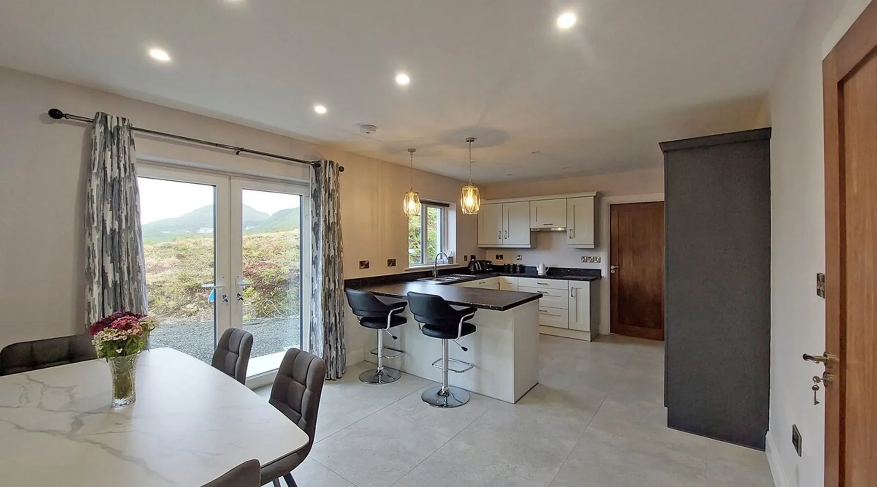 Lizzies Holiday Cottage is set in an idyllic location just a 3.9km drive from Carrick village in County Donegal. This recently refurbished holiday cottage is set in a peaceful location, a wonderful base for a coastal holiday in Donegal. Visit Slieve League, also known as Slieve Liag, a mountain on the Atlantic coast which is located just 1km from Lizzies Holiday Cottage. Hike to the summit of Sliabh Liag to see some of Europe's highest marine cliffs. Lizzies Holiday Cottage is set in an idyllic location just a 3.9km drive from Carrick village in County Donegal. This recently refurbished holiday cottage is set in a peaceful location, a wonderful base for a coastal holiday in Donegal. Visit Slieve League, also known as Slieve Liag, a mountain on the Atlantic coast which is located just 1km from Lizzies Holiday Cottage. Hike to the summit of Sliabh Liag to see some of Europe's highest marine cliffs. On your trip to the summit, you'll pass by a number of lakes, and at the bottom lies a beach of perfect white sand that can only be reached by boat. Lizzies Holiday Cottage Description– Sleeps 6This light and spacious holiday cottage was recently refurbished with modern fittings and fixtures throughout. This coastal holiday cottage has 3 bedrooms and sleeps 6 guests comfortably: Property layout – Ground floor: - Fully equipped kitchen and dining area - Living area with comfy furniture, satellite television and cosy wood burner stove - Bedroom 1: double ensuite sleeping 2 - Bedroom 2: double ensuite sleeping 2 - Bedroom 3: twin sleeping 2 - Family bathroom with separate shower, hand basin and toilet a spacious garden with a courtyard area and lawn furniture is available outside Lizzies Holiday Cottage. In the summer months, it's ideal for relaxing and dining alfresco. Wifi is available in the property and towels are provided. Local area & Tourist AttractionsCarrick (3.9km) is a small village in County Donegal, located in the parish of Glencolmcille. There are several traditional Irish pubs, two grocery stores, a café, a church, and a post office in Carrick. Things to do in the local area: - Tí Linn: unique cafe serving artisan food and coffees - Local crafts, knitwear and gifts shops - Sliabh Liag Cliff Experience & Visitor Centre - The Rusty Mackerel: popular Irish bar and restaurant - Driving down the Donegal’s Wild Atlantic Way - Sliabh Distillery - Clencolumbkille Folk Village - Donegal’s Secret Waterfall - Sightseeing excursions can be booked from Teelin Pier - Glen Bay Beach IMPORTANT NOTES1. Heating and Electricity: Utilities are an extra charge at this property and payable on departure to the Owner/Property Manager. The rate for heating & electricity at this property is €10 per day during the peak season and meter read and based on consumption during the off-peak season. Should utility charges not be paid on departure, they will be deducted from the security deposit without further notice. Breakdown of these charges are available from the Owner/Property Manager. 2. Security Deposit: A minimum refundable security deposit of €200 (per property) must be paid prior to check-in to your holiday home to the local Property Manager/ Owner. This is either taken over the phone by pre-authorising your credit card when you call the Property Manager to arrange your arrival time 48 hours in advance of arrival or at others it is taken on arrival by cash. In some locations and at certain times of year this can increase to €500 per property. Optional services - Cancellation Insurance: Price: % 5 of the booking price. - Cot/Crib: Price: Included in the booking. - Internet Access: Price: Included in the booking. - Baby high chair: Price: Included in the booking.