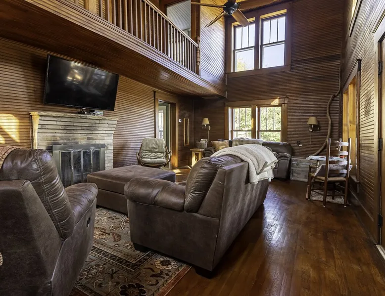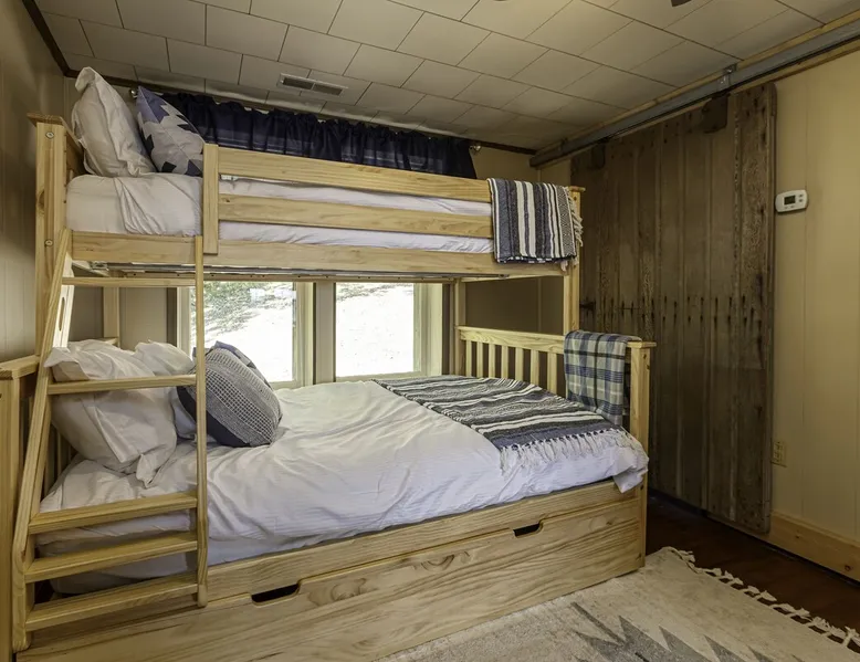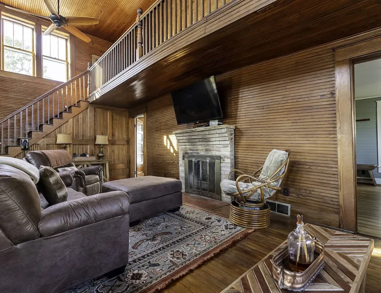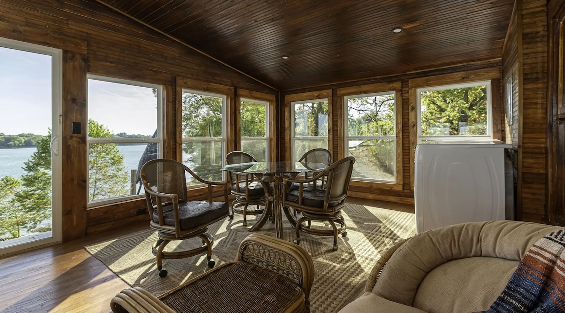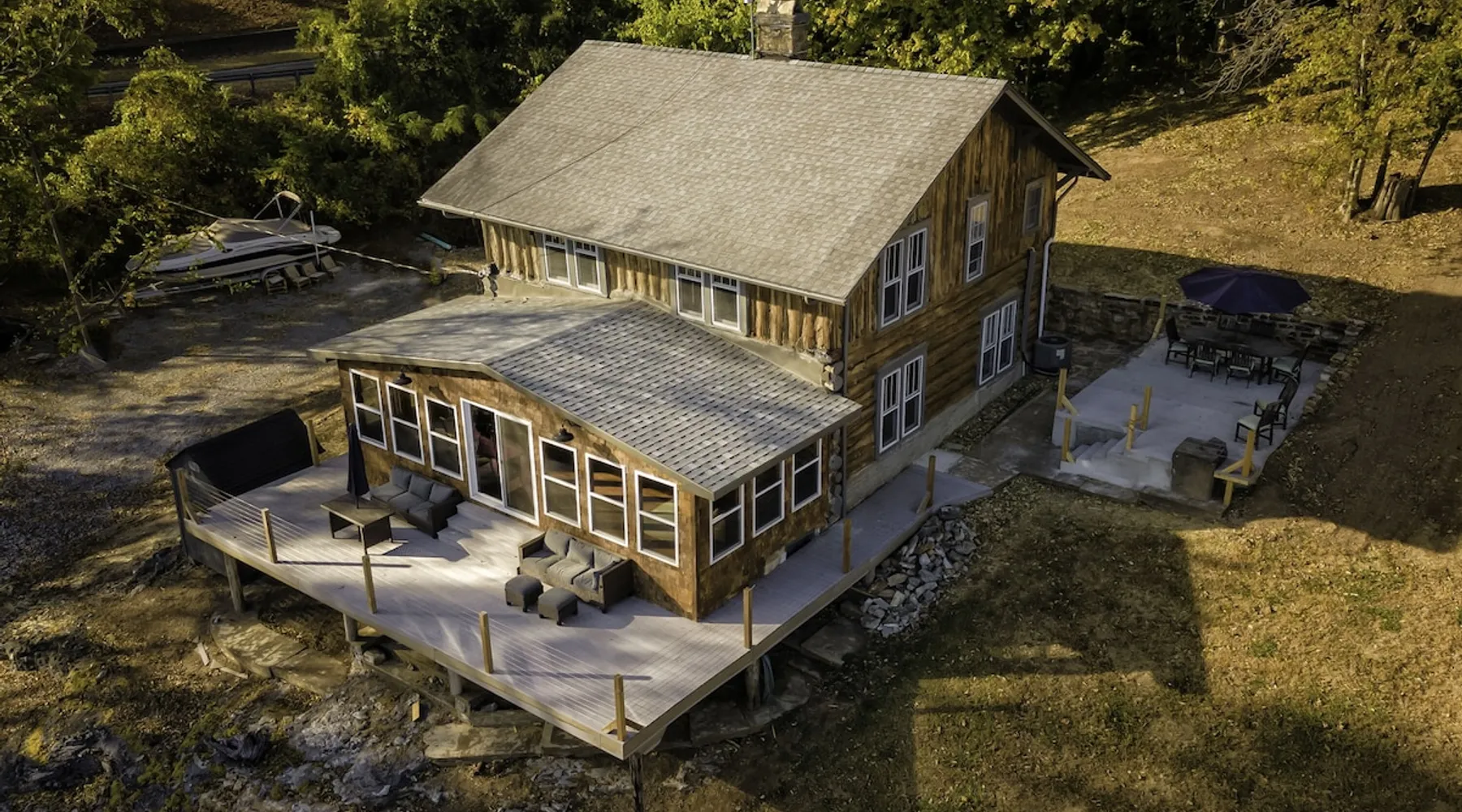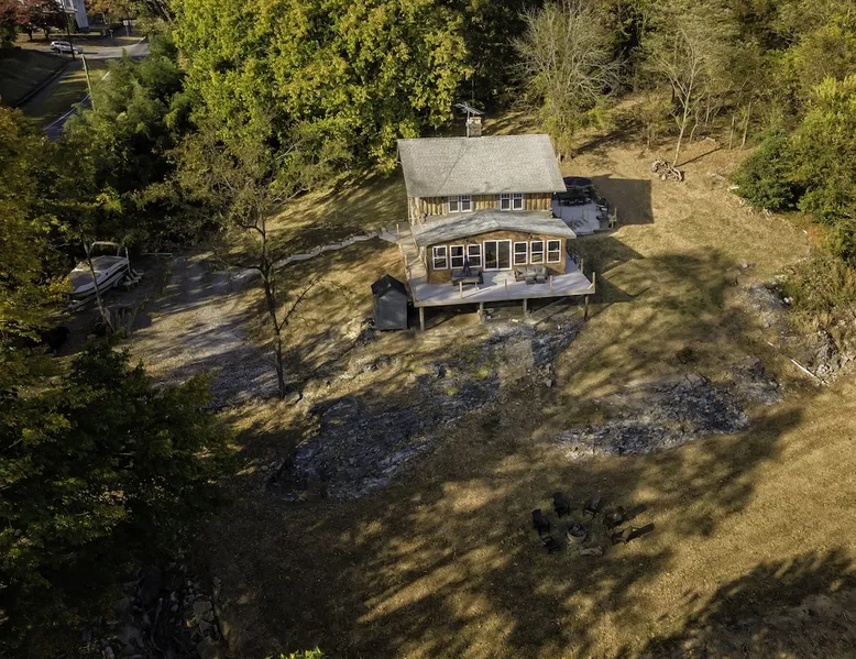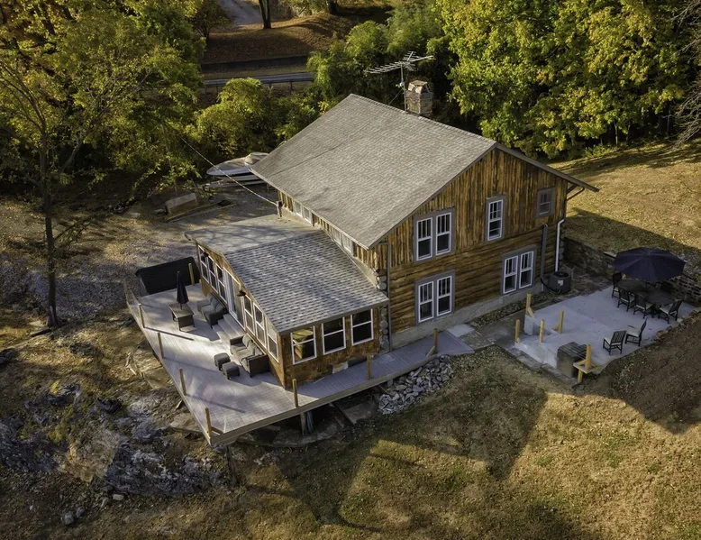 Original 1926 Log Cabin Overlooking Ohio River SLEEPING ARRANGEMENTS 1 Queen Bed in Master bedroom on main level with small ensuite bathroom 1 King Bed in 2nd bedroom on Upper level 1 Twin over full with trundle in 3rd bedroom on Upper level (sleeps up to 5) THE LAYOUT - MAIN LEVEL Living Room w/ Smart TV and non-working fireplace (looks only) Kitchen & Dining Area Walkout Deck All seasons porch overlooking the Ohio River Washer/Dryer 1 bedroom and ensuite bathroom UPPER LEVEL Bedroom 2 and 3 Full Bathroom with shower/tub combo OUTDOORS Fire pit for relaxation. Firewood bundles can be purchased in Rosiclare Private yard overlooking the Ohio River Nearest ramp is at the E'Town River Restaurant. There is no slip, but boaters can beach their boat on the bank of the property at their own risk. Short drive to public land (state and federal) for fishing, hiking, hunting and exploring Each guest receives a personalized online Welcome Guide immediately upon booking- so you can plan your trip with all of our personal recommendations of places to go and things to do. KNOW BEFORE YOU GO: Check in is after 3PM. Check out is before 10AM. No Pets. Ring camera on site. If evidence of a pet you may be charged an additional fee and/or asked to leave. Basic checkout procedures are appreciated: start a load of used towels and wash your dishes before you go. Excess trash beyond the kitchen trash can must be taken to the dumpster behind The Riverside Mercantile. Due to the age and integrity of the home, there is no grill available for use.