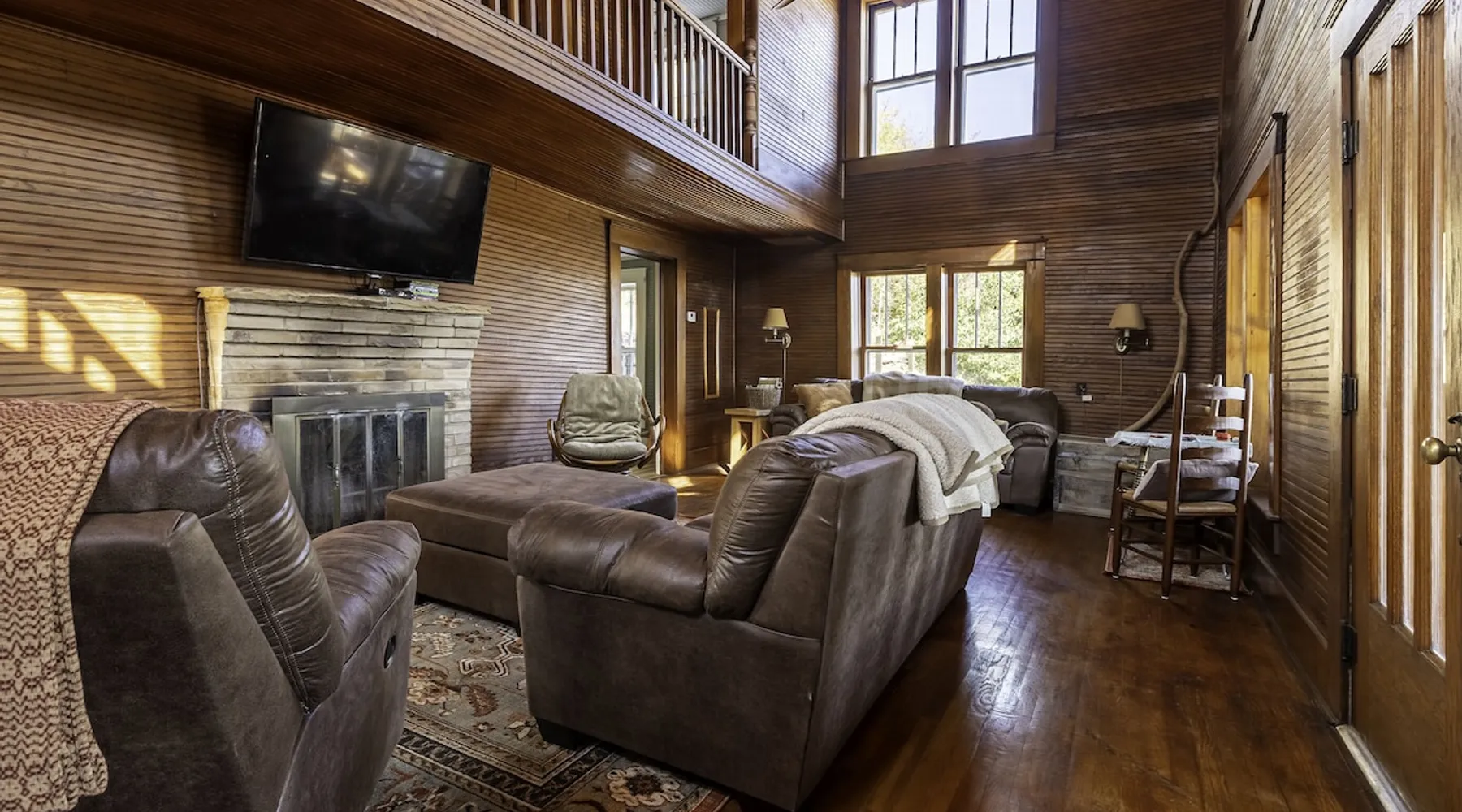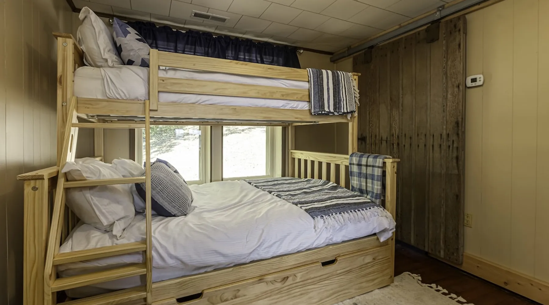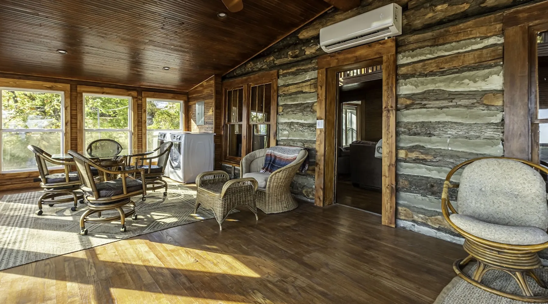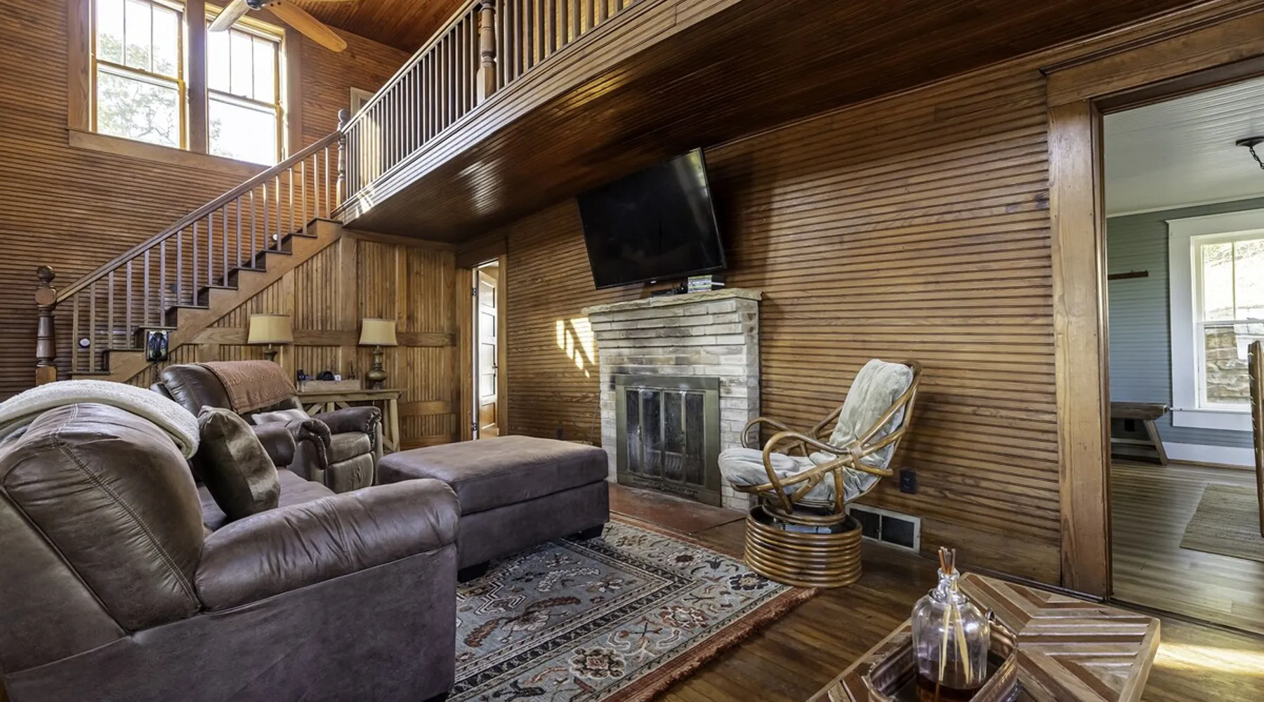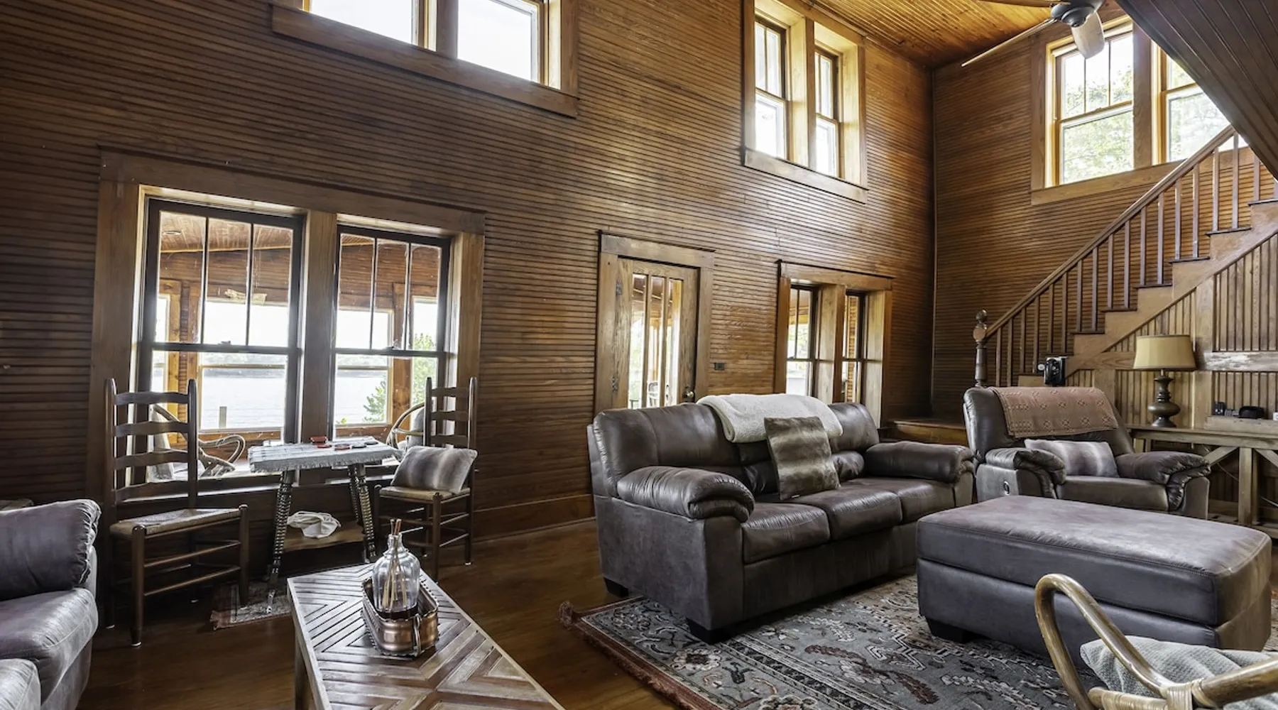 Original 1926 Log Cabin Overlooking Ohio River SLEEPING ARRANGEMENTS 1 Queen Bed in Master bedroom on main level with small ensuite bathroom 1 King Bed in 2nd bedroom on Upper level 1 Twin over full with trundle in 3rd bedroom on Upper level (sleeps up to 5) THE LAYOUT - MAIN LEVEL Living Room w/ Smart TV and non-working fireplace (looks only) Kitchen & Dining Area Walkout Deck All seasons porch overlooking the Ohio River Washer/Dryer 1 bedroom and ensuite bathroom UPPER LEVEL Bedroom 2 and 3 Full Bathroom with shower/tub combo OUTDOORS Fire pit for relaxation. Firewood bundles can be purchased in Rosiclare Private yard overlooking the Ohio River Nearest ramp is at the E'Town River Restaurant. There is no slip, but boaters can beach their boat on the bank of the property at their own risk. Short drive to public land (state and federal) for fishing, hiking, hunting and exploring Each guest receives a personalized online Welcome Guide immediately upon booking- so you can plan your trip with all of our personal recommendations of places to go and things to do. KNOW BEFORE YOU GO: Check in is after 3PM. Check out is before 10AM. No Pets. Ring camera on site. If evidence of a pet you may be charged an additional fee and/or asked to leave. Basic checkout procedures are appreciated: start a load of used towels and wash your dishes before you go. Excess trash beyond the kitchen trash can must be taken to the dumpster behind The Riverside Mercantile. Due to the age and integrity of the home, there is no grill available for use.