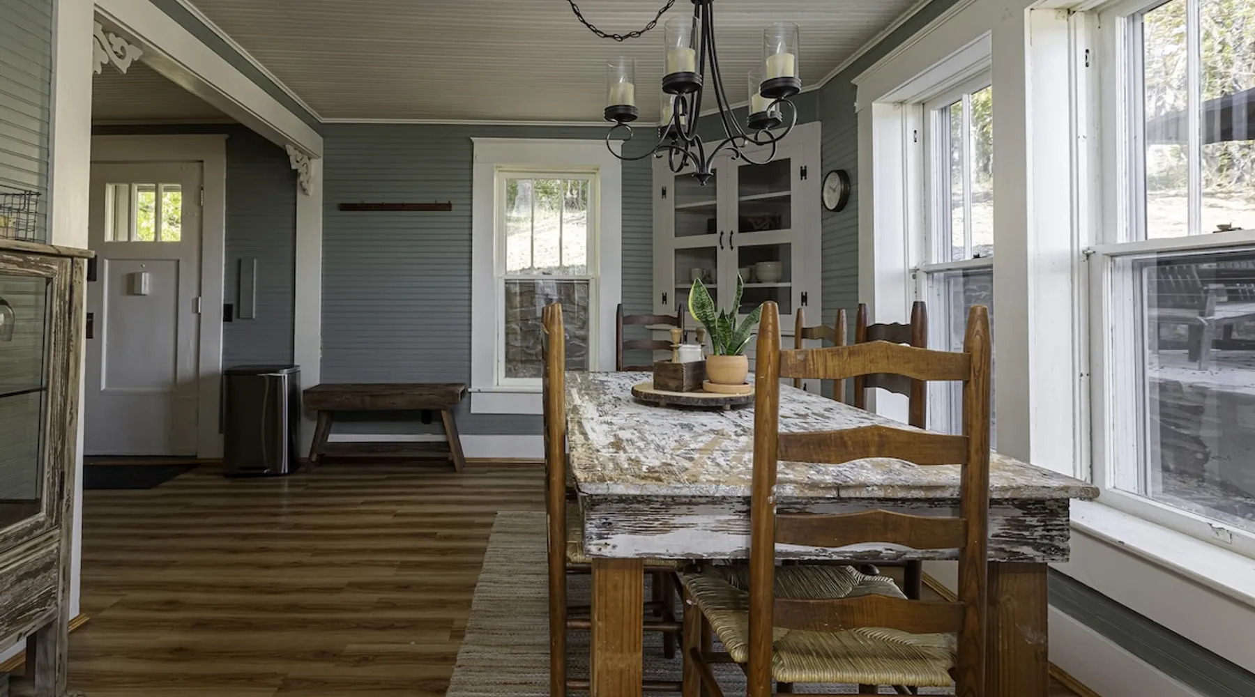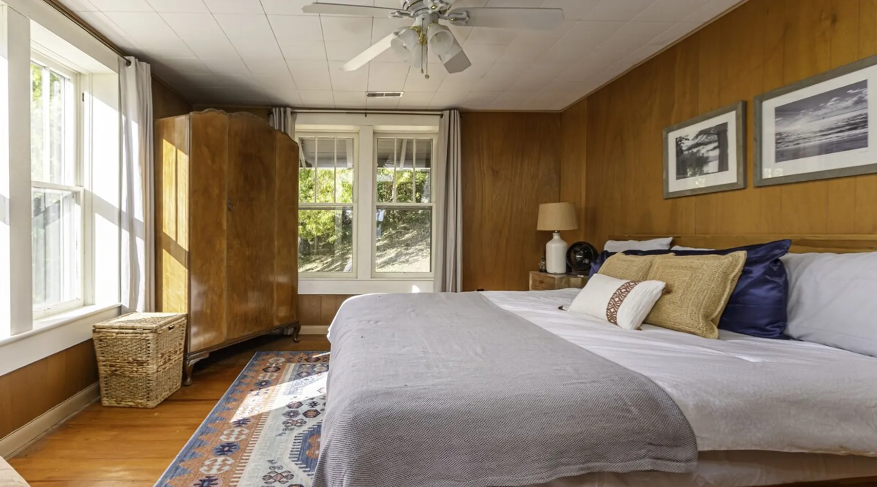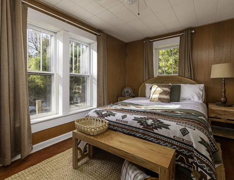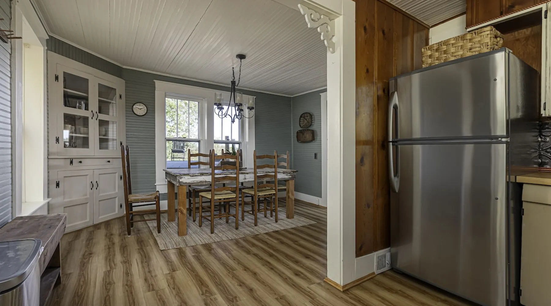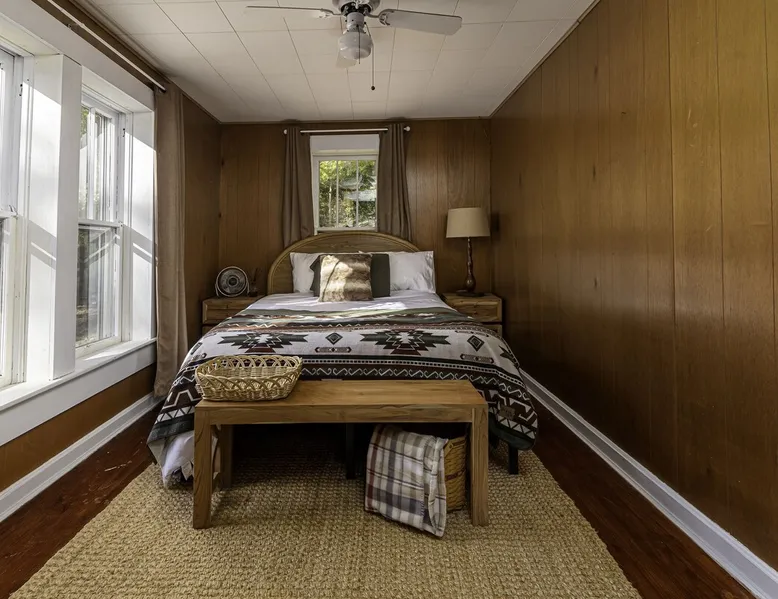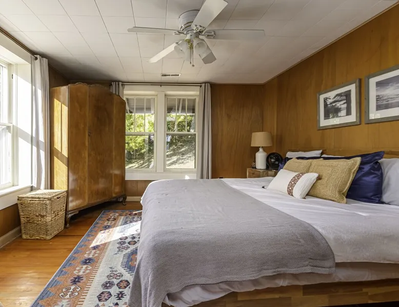 Original 1926 Log Cabin Overlooking Ohio River SLEEPING ARRANGEMENTS 1 Queen Bed in Master bedroom on main level with small ensuite bathroom 1 King Bed in 2nd bedroom on Upper level 1 Twin over full with trundle in 3rd bedroom on Upper level (sleeps up to 5) THE LAYOUT - MAIN LEVEL Living Room w/ Smart TV and non-working fireplace (looks only) Kitchen & Dining Area Walkout Deck All seasons porch overlooking the Ohio River Washer/Dryer 1 bedroom and ensuite bathroom UPPER LEVEL Bedroom 2 and 3 Full Bathroom with shower/tub combo OUTDOORS Fire pit for relaxation. Firewood bundles can be purchased in Rosiclare Private yard overlooking the Ohio River Nearest ramp is at the E'Town River Restaurant. There is no slip, but boaters can beach their boat on the bank of the property at their own risk. Short drive to public land (state and federal) for fishing, hiking, hunting and exploring Each guest receives a personalized online Welcome Guide immediately upon booking- so you can plan your trip with all of our personal recommendations of places to go and things to do. KNOW BEFORE YOU GO: Check in is after 3PM. Check out is before 10AM. No Pets. Ring camera on site. If evidence of a pet you may be charged an additional fee and/or asked to leave. Basic checkout procedures are appreciated: start a load of used towels and wash your dishes before you go. Excess trash beyond the kitchen trash can must be taken to the dumpster behind The Riverside Mercantile. Due to the age and integrity of the home, there is no grill available for use.