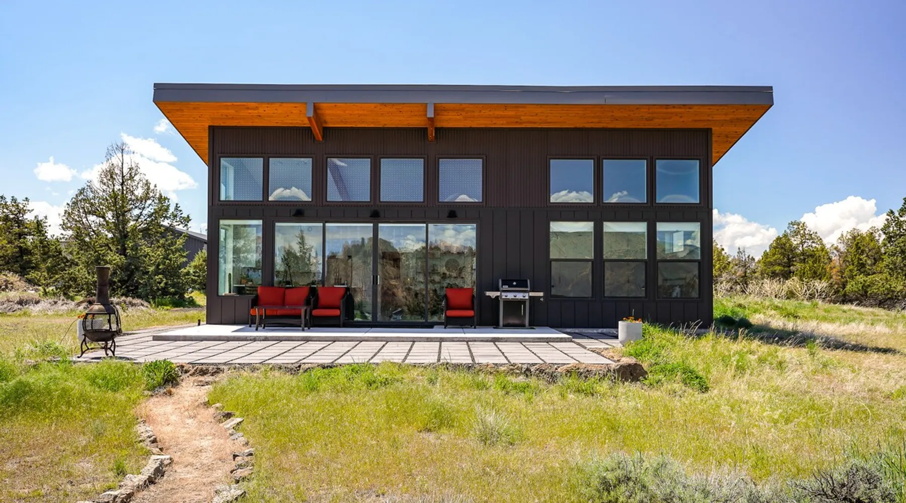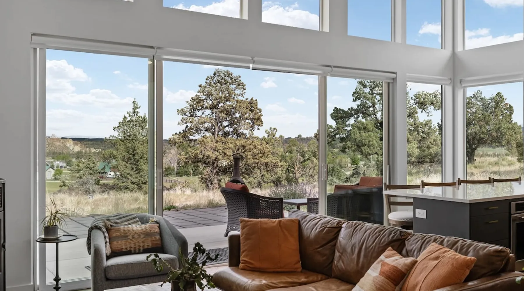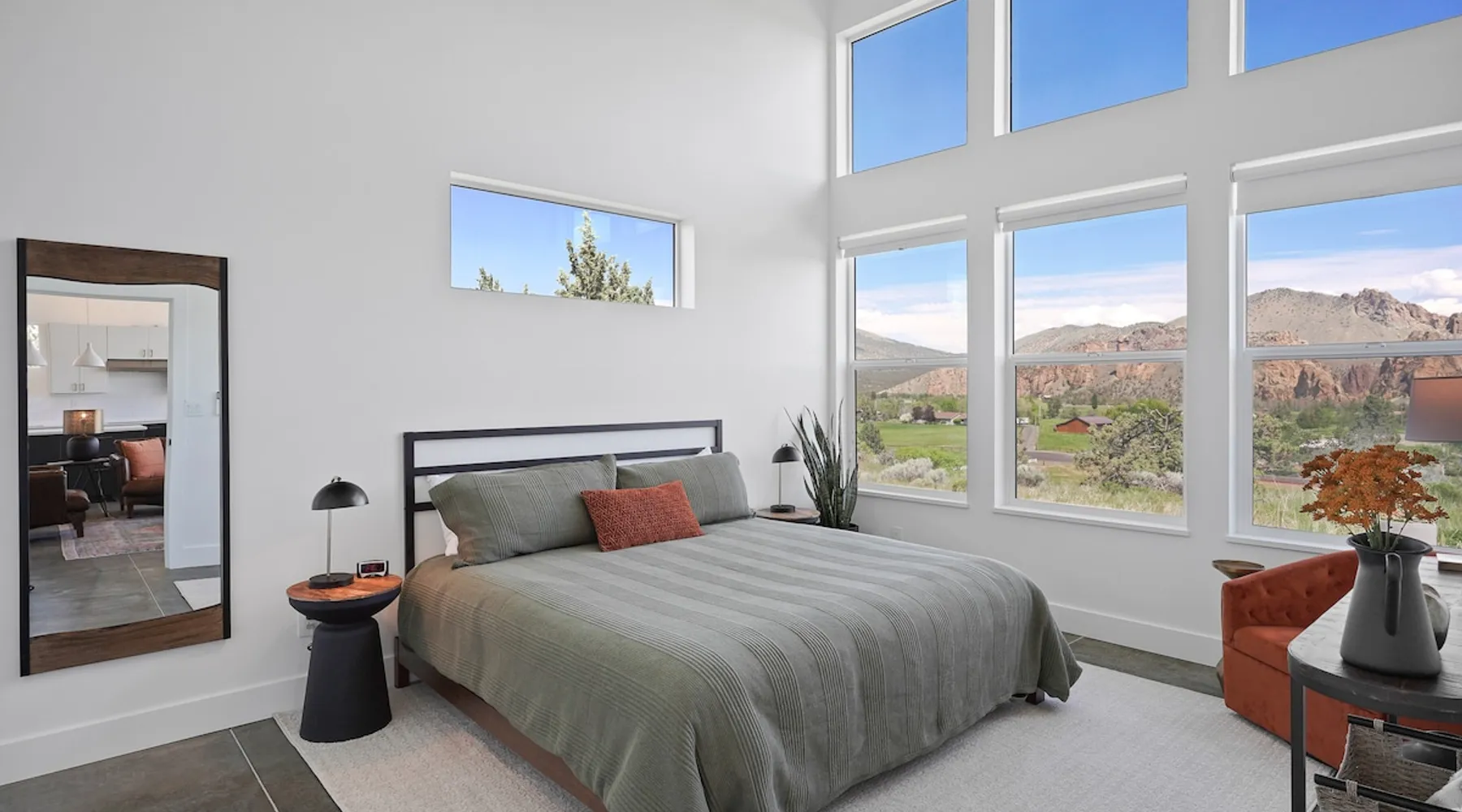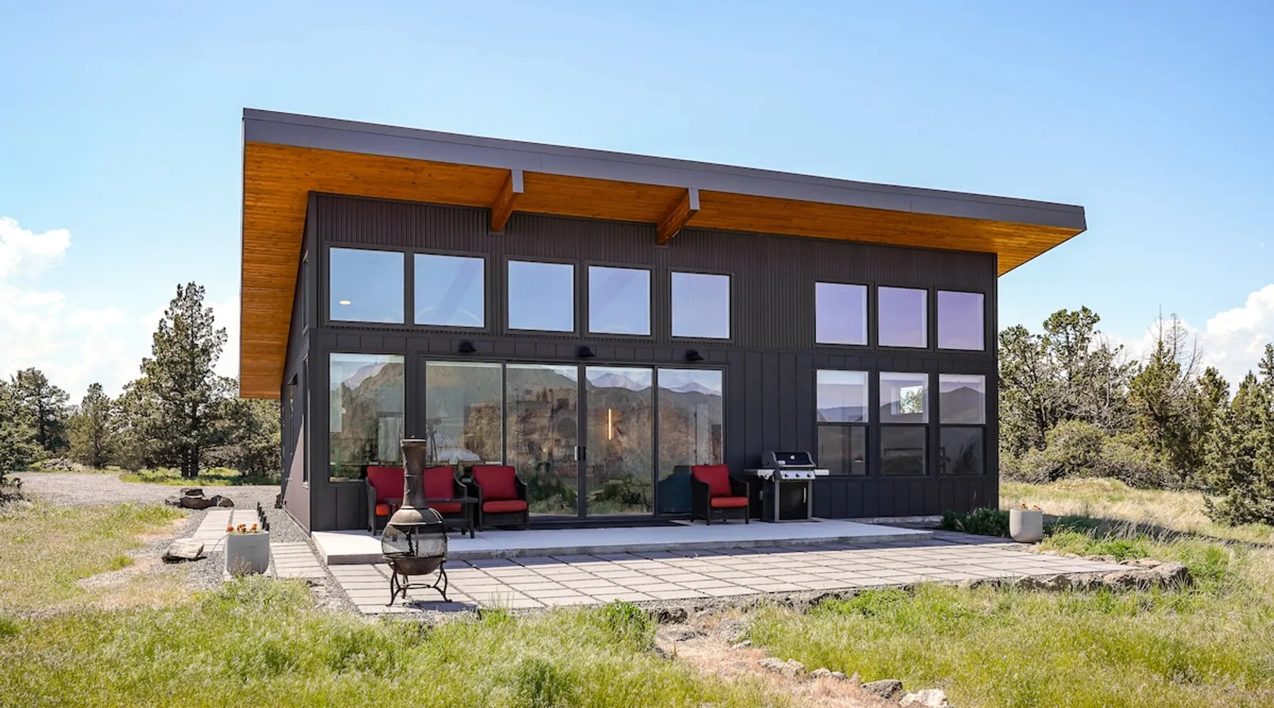 A wall of glass provides panoramic views of the iconic Smith Rock formation, creating a seamless connection between the indoor and outdoors. A sleek and sophisticated modern home perched on the rimrock and flooded with sunshine. King beds and a luxurious bathroom with steam shower. Includes Smith Rock Pass. *No parties or pets* (including support animals) please - this is a 'pet-free' home for guests with allergies. Trip insurance recommended if illness, weather or smoke may be an issue. The space You will be welcomed into the bright living room with a cozy fireplace that flows into the back patio with views that might take your breath away a little. The view extends into the primary bedroom. The property includes five acres of rural land that you are welcome to explore. Note that there is a detached shop about 140' from the house that is accessed by our business partner. Guest access The entire home is available to the guest and is not shared with anyone. The shop (100' up the driveway) is accessed occasionally (during business/working hours) by us or our business partners. Other things to note Please note the well-water is very hard. While the minerals are great for your bones, it does have a very subtle salty taste and is slightly whitish colored. It has been tested and is verified clean and healthy. Also, importantly, we require guests who use the steam-shower (sauna) to squeegee the glass after use, otherwise the mineral buildup is very difficult to remove. Note that dogs are not allowed, including Emotional Support Animals, which are not recognized as service animals in the state of Oregon. If you are bringing a service animal, we would appreciate if you would describe what duties or work it has been trained to perform, and if it is required because of a disability. Wildfire smoke is a significant risk in the mid-summer to late fall in the PNW, especially east of the Cascades. Please note that both Airbnb (and by extension, us as hosts) can not predict or control the weather or the smoke, and neither of these are considered grounds for exceptions to the refund policy. If you want a more flexible cancellation policy due to air quality/smoke, we recommend purchasing travel insurance through Airbnb, which is offered to you during the booking process. If your time in Bend is impacted by smoke, we are happy to help you make the best of it—there are often times of day or parts of the surrounding area that are far less smoky than others. We live here and understand the challenge.
