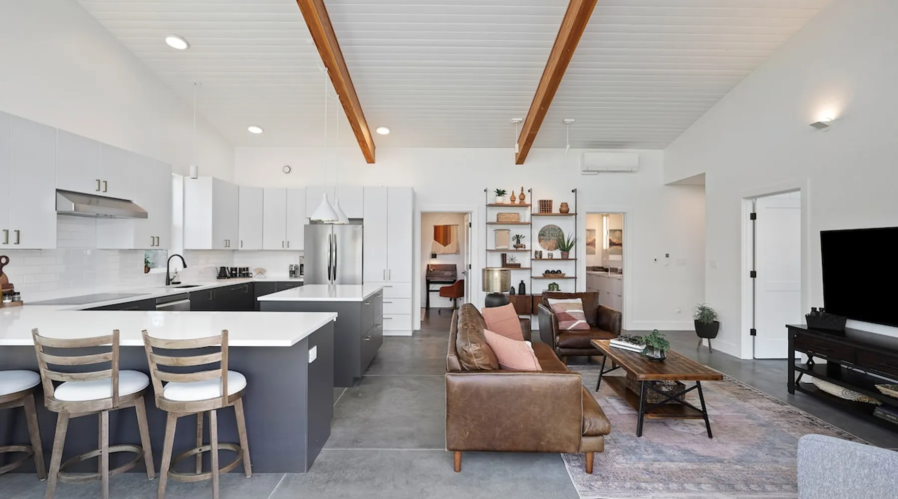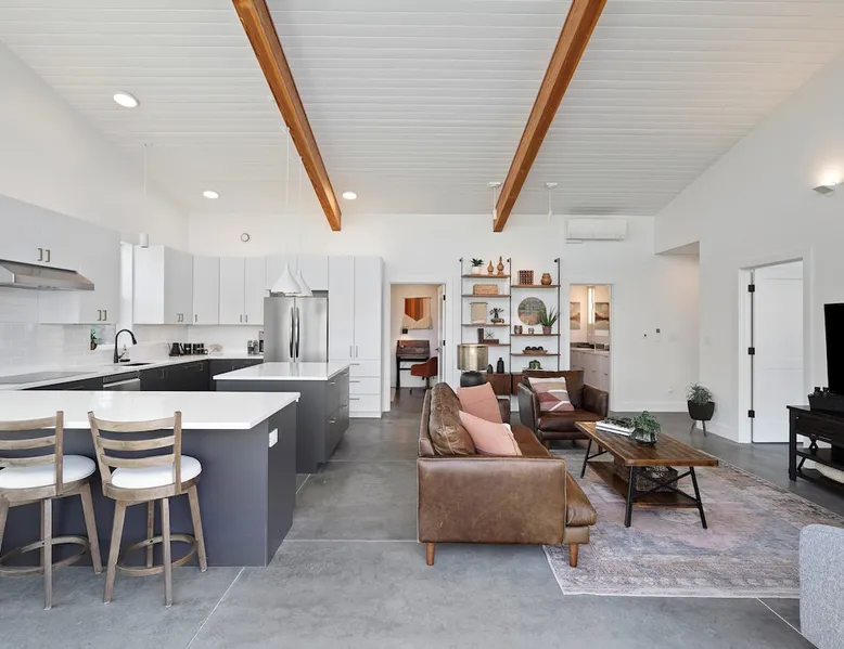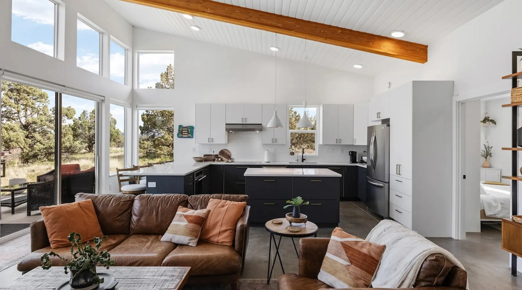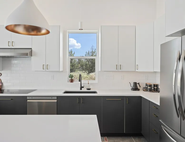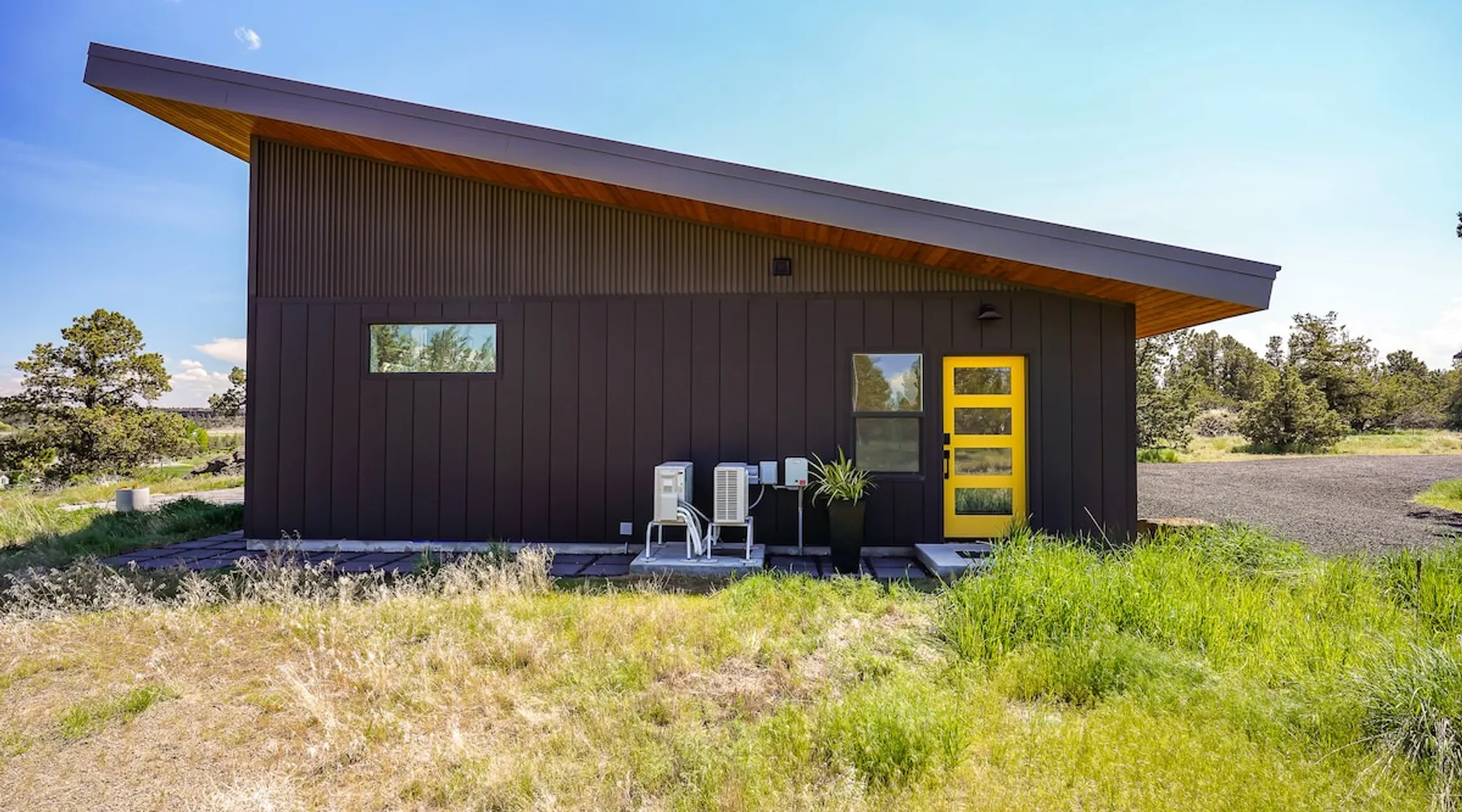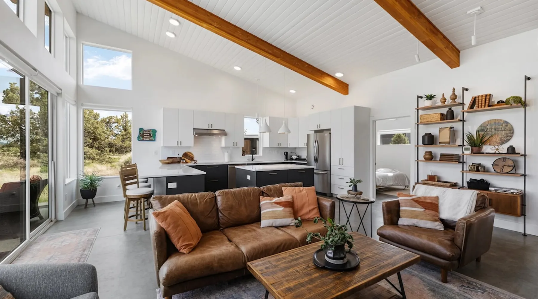 A wall of glass provides panoramic views of the iconic Smith Rock formation, creating a seamless connection between the indoor and outdoors. A sleek and sophisticated modern home perched on the rimrock and flooded with sunshine. King beds and a luxurious bathroom with steam shower. Includes Smith Rock Pass. *No parties or pets* (including support animals) please - this is a 'pet-free' home for guests with allergies. Trip insurance recommended if illness, weather or smoke may be an issue. The space You will be welcomed into the bright living room with a cozy fireplace that flows into the back patio with views that might take your breath away a little. The view extends into the primary bedroom. The property includes five acres of rural land that you are welcome to explore. Note that there is a detached shop about 140' from the house that is accessed by our business partner. Guest access The entire home is available to the guest and is not shared with anyone. The shop (100' up the driveway) is accessed occasionally (during business/working hours) by us or our business partners. Other things to note Please note the well-water is very hard. While the minerals are great for your bones, it does have a very subtle salty taste and is slightly whitish colored. It has been tested and is verified clean and healthy. Also, importantly, we require guests who use the steam-shower (sauna) to squeegee the glass after use, otherwise the mineral buildup is very difficult to remove. Note that dogs are not allowed, including Emotional Support Animals, which are not recognized as service animals in the state of Oregon. If you are bringing a service animal, we would appreciate if you would describe what duties or work it has been trained to perform, and if it is required because of a disability. Wildfire smoke is a significant risk in the mid-summer to late fall in the PNW, especially east of the Cascades. Please note that both Airbnb (and by extension, us as hosts) can not predict or control the weather or the smoke, and neither of these are considered grounds for exceptions to the refund policy. If you want a more flexible cancellation policy due to air quality/smoke, we recommend purchasing travel insurance through Airbnb, which is offered to you during the booking process. If your time in Bend is impacted by smoke, we are happy to help you make the best of it—there are often times of day or parts of the surrounding area that are far less smoky than others. We live here and understand the challenge.
