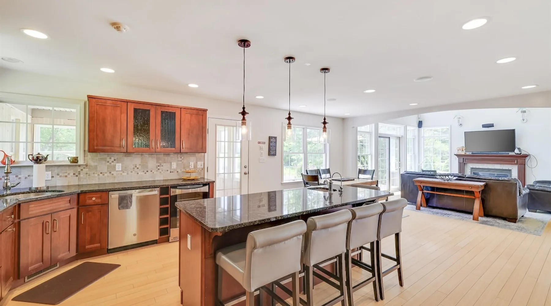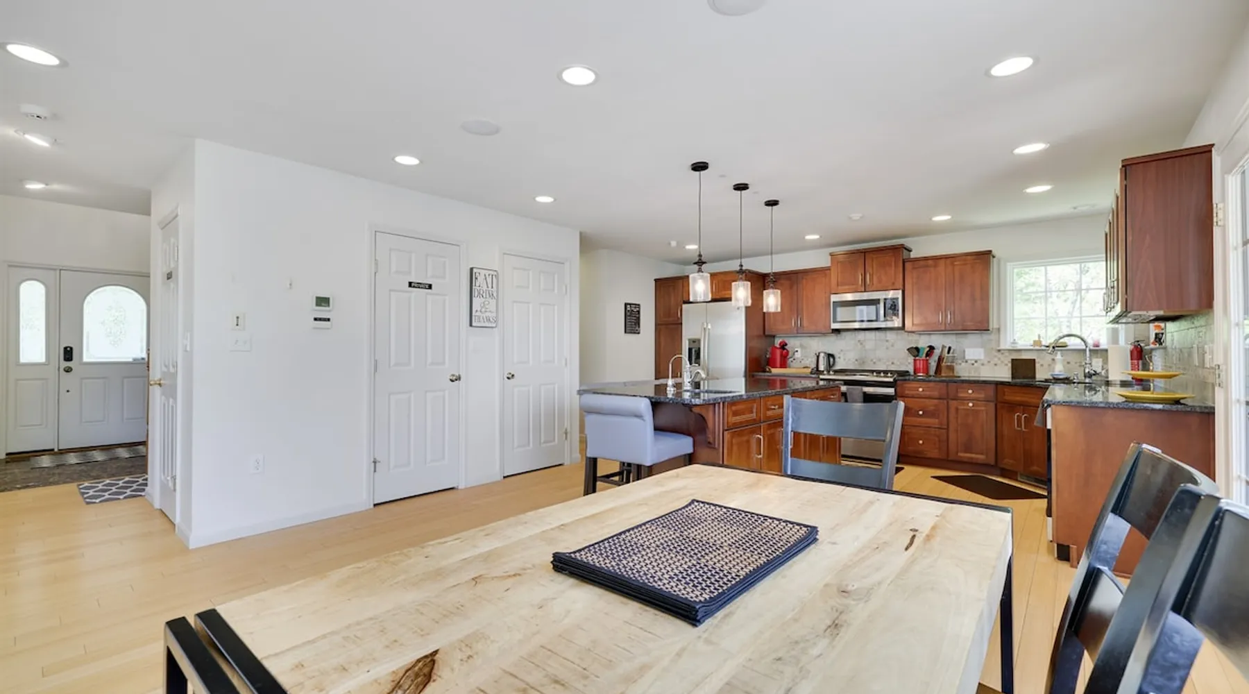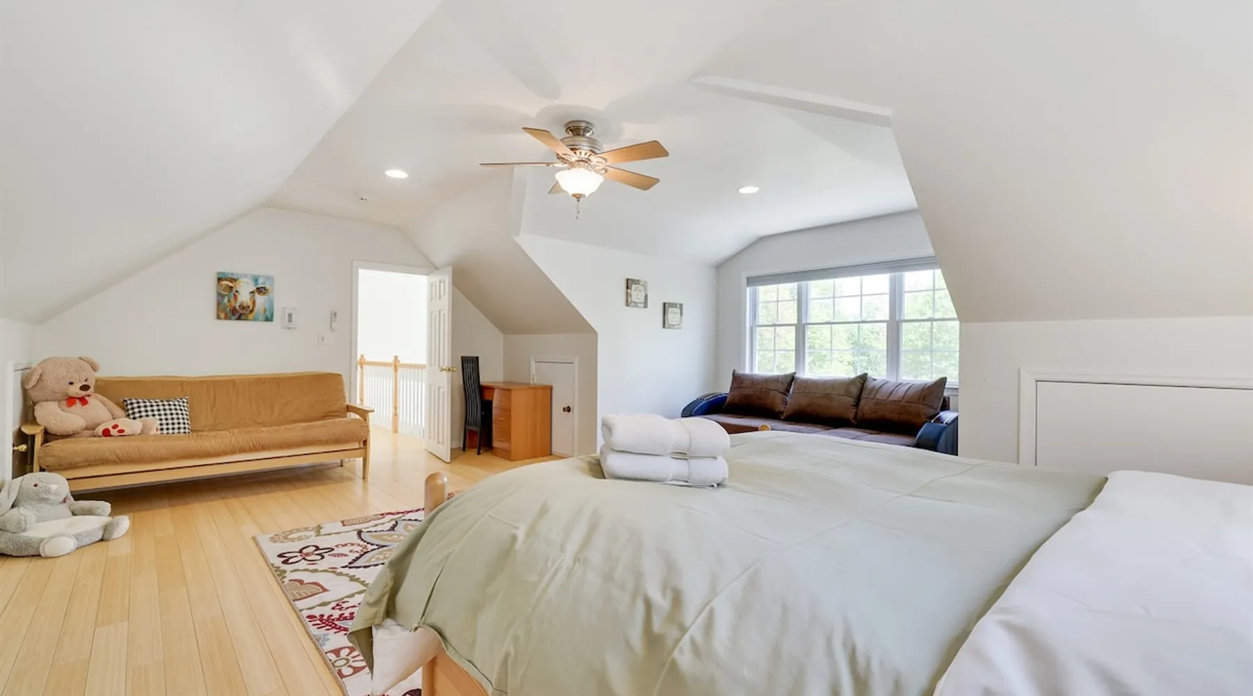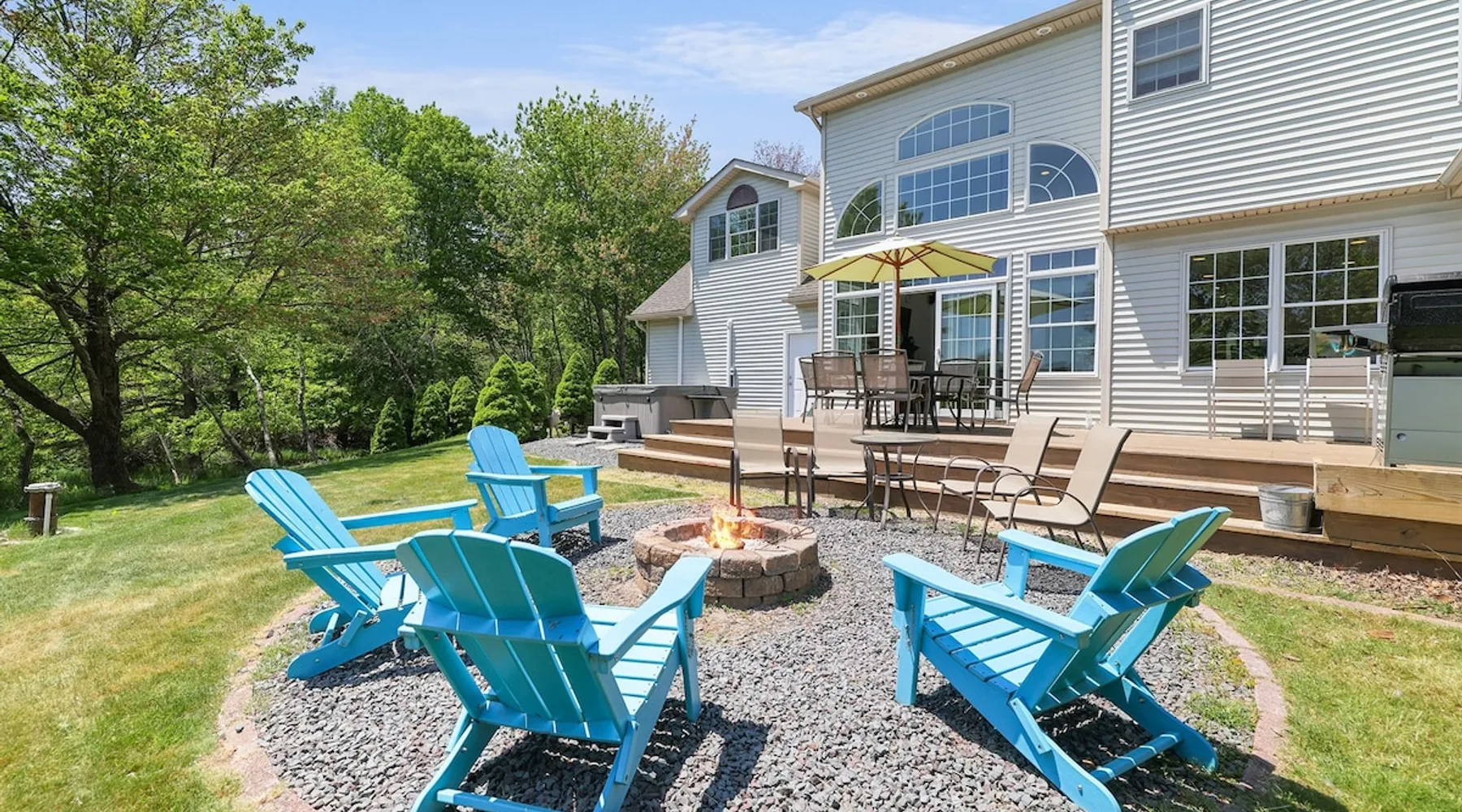 Welcome to our stunning vacation rental house nestled in the picturesque Pocono Mountains of Pennsylvania. This idyllic retreat is situated right on the shores of a tranquil lake, offering you breathtaking lakefront views throughout your stay. This lakefront retreat promises a truly unforgettable getaway. The space Welcome to our stunning vacation rental house nestled in the picturesque Pocono Mountains of Pennsylvania. This idyllic retreat is situated right on the shores of a tranquil lake, offering you breathtaking lakefront views throughout your stay. This lakefront retreat promises a truly unforgettable getaway. As you step inside, you'll be greeted by breathtaking views of the pristine lake, creating a sense of calm and relaxation. The spacious living area features comfortable seating, allowing you to unwind and enjoy the scenic beauty from indoors. Large windows flood the space with natural light, creating an inviting ambiance. One of the highlights of this vacation rental is the private hot tub, perfect for soothing your muscles and rejuvenating your body after a day of adventure. Immerse yourself in the warm, bubbling waters while taking in the breathtaking views of the lake and surrounding nature. For those seeking entertainment, the house boasts a game room filled with various activities. Challenge your friends and family to a friendly game of ping pong or try your luck at the foosball table. It's the ideal space for bonding and creating lasting memories. As part of your stay, we provide complimentary paddle boats and kayaks, giving you the opportunity to explore the lake at your leisure. Feel the gentle breeze against your face as you paddle across the crystal-clear waters, surrounded by the scenic beauty of the Pocono Mountains. When it's time to retire for the night, the vacation rental offers comfortable and well-appointed bedrooms that ensure a peaceful slumber. Wake up to the gentle sounds of nature and start your day feeling refreshed and rejuvenated. Whether you're seeking relaxation, outdoor adventure, or quality time with loved ones, this lakefront vacation rental in the Pocono Mountains provides the perfect setting. Book your stay now and experience the beauty and tranquility of this remarkable destination. Minimum age to rent is 28 Township Registration # 014440