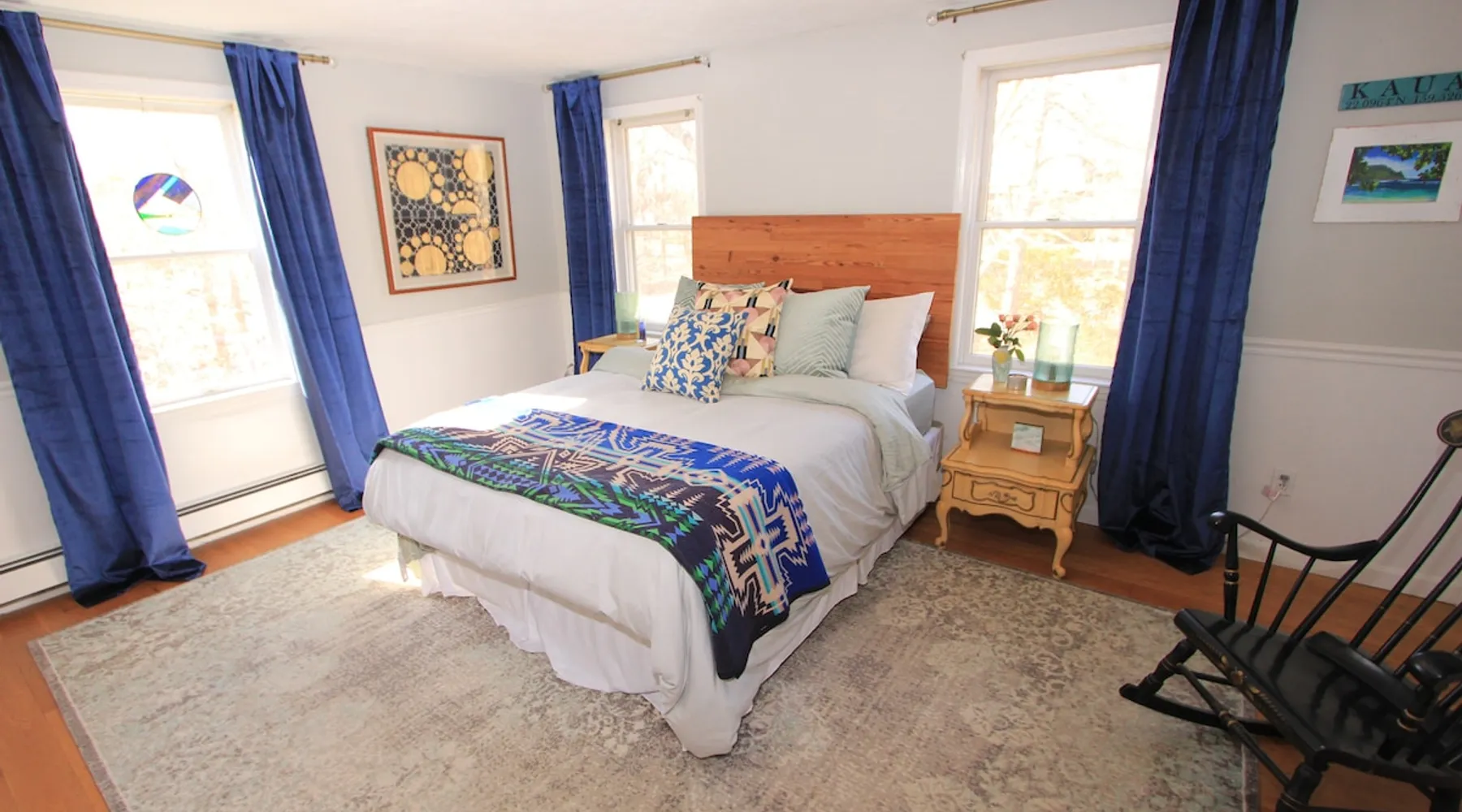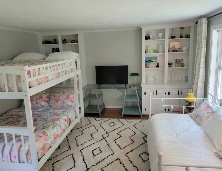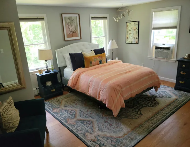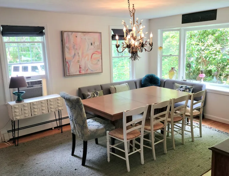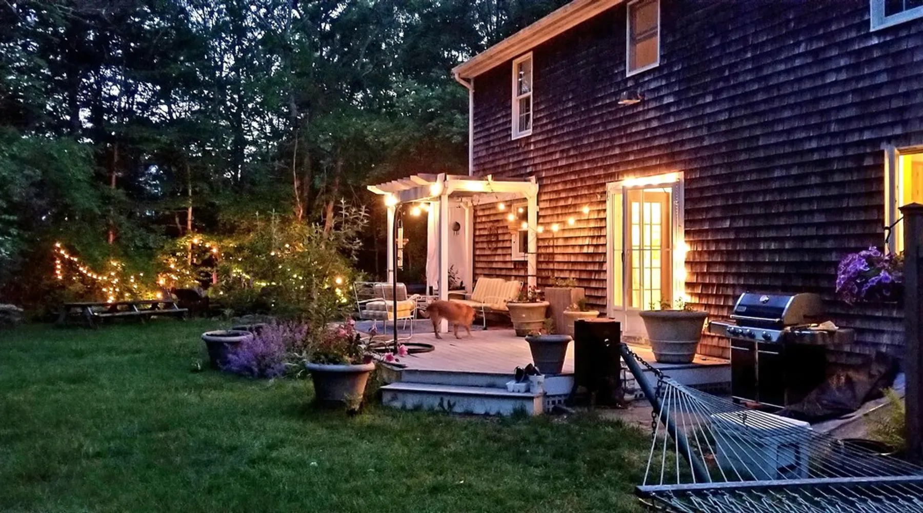 This 4 bedroom home sits on an acre of land and offers an 8 person hot tub, firepit surrounded by mature gardens, a spacious outdoor shower, gas grill, back deck and picnic table.The large front and back yards are perfect to let the dogs run around in, as this home is pet friendly for up to 2 dogs( first dog for free, second dog $100 fee). Town center and beaches, this home is in a quiet cul-de-sac neighborhood located right off route 6, for easy access to everything the Cape has to offer The space The main floor has plenty of space to cook, entertain, and spend time with friends and family. Off the fully appointed kitchen is a sunfilled living room with a flat-screen TV and wood stove with French doors that open up out to the garden. There are 2 dining areas off the kitchen. The main dining room seats up to 10 people and the kitchen nook seats up to 4. It’s the perfect spot for playing a game of cards at night. This home includes a washer and dryer and high-speed internet access. This house sleeps up to 10 people and features 4 spacious bedrooms, outfitted with down comforters. All bedrooms have window ACs. Bedroom 1-Queen with attached half bath (2nd Floor) Bedroom 2-Queen (2nd Floor) Bedroom 3-Queen (2nd Floor) Bedroom 4- -Full Bunk bed with Futon (1st Floor) Other things to note Bath and Beach towels included. Sheets are not included and may be brought or rented locally. Look up Dune Tootin linen rentals for pricing.
