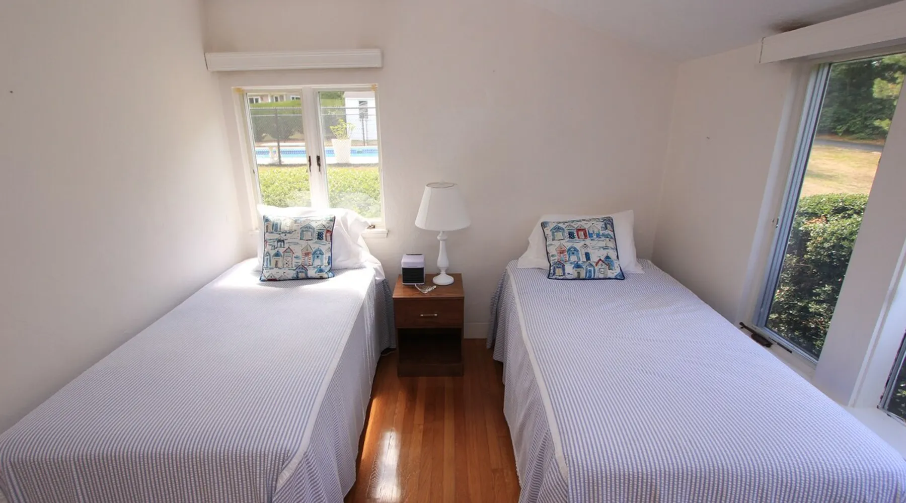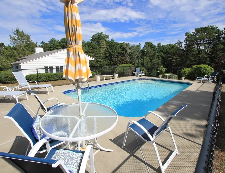 Escape to your serene summer retreat in historic Sandwich, where this charming vacation home on a spacious 3-acre lot offers a perfect blend of convenience and tranquility. Enjoy an expansive pool, plenty of natural light, and a peaceful setting just a short drive from Town Neck Beach, the boardwalk, and downtown Sandwich — ideal for families or couples looking for a restful Cape Cod getaway. The space • Type: Single-family home • Location: East Sandwich • Lot Size: 3-acre property surrounded by nature • Key Features: Expansive pool, central A/C, smart TV, Keurig coffee maker Bedrooms & Bathrooms • Bedroom 1: Two twin beds • Bedroom 2: Two twin beds • Bedroom 3: Queen bed • Bathrooms: Two full bathrooms — one with shower, one with shower and tub Living Areas • Comfortable living room overlooking the backyard • Dining area for shared meals Kitchen • Fully equipped with full-size appliances and dishwasher • Keurig coffee maker • Large window above the sink with nature views Outdoor Space • Expansive pool and patio area and a gas grill • Surrounded by trees for peace and privacy • Plenty of open yard space for outdoor fun Local Favorites Beaches • Town Neck Beach – Sandy beach with calm waters, perfect for swimming and sunset walks. • Boardwalk to Sandwich Marsh – Scenic boardwalk to the beach with incredible views. • East Sandwich Beach – Quiet, family-friendly beach with soft sand and beautiful sunrises. • Sandy Neck Beach – Expansive beach for walking, birdwatching, and classic Cape Cod sunsets. Food & Drink • Pilot House – Classic New England seafood with water views. • Beth’s Bakery & Café – Pastries, sandwiches, and coffee in the village. • Fishermen’s View – Waterfront dining with seafood favorites. • Café Chew – Breakfast and lunch with fresh sandwiches and coffee. Things to Do • Cape Cod Canal Path – Walk, bike, or run along this scenic paved trail. • Ride Away Kayaks & Bikes – Rent kayaks, paddleboards, or bikes and explore the waterways and surrounding trails. • Heritage Museums & Gardens – Gardens, art exhibits, and classic cars. • Sandwich Glass Museum – Live glassblowing demonstrations and history of the town. • Historic Sandwich Village – Boutiques, galleries, and antique shops. • Green Briar Nature Center – Trails, wildlife, and historic buildings. Shopping & Boutiques • Wish Gift Co. – Local gifts and home décor. • Scenic Roots – Plants, gifts, and unique finds. • Titcomb’s Bookshop – Historic local bookstore with new and used books. • Wave Gift Shop – Unique souvenirs, gifts, and beach essentials. Other things to note • Parking: Parking in the driveway for 4 cars • Linens: Sheets and towels not provided. Linen rentals available from Dune Tootin Linen Rentals • Pets: Up to 2 dogs allowed ($100 fee for second dog) • A/C: Central air conditioning throughout • Internet/TV: Wi-Fi and Smart TV in the living room • Stay Requirements: 7-night minimum, Saturday–Saturday • Check-in / Check-out: Check-in at 3 PM, check-out at 10 AM — pick up keys at Sand Dollar Realty office • Smoking: Not permitted • Extra Info: Peaceful setting just minutes from beaches, boardwalk, and downtown Sandwich — a perfect mix of relaxation and convenience