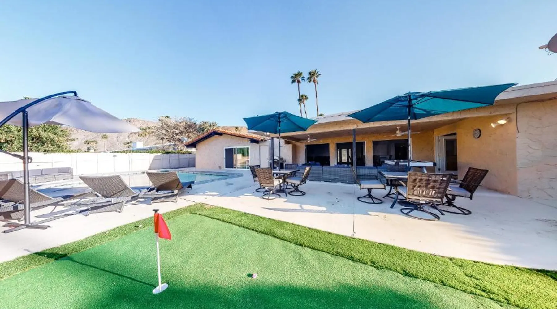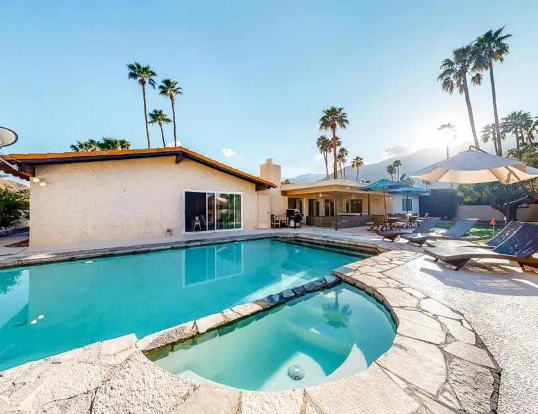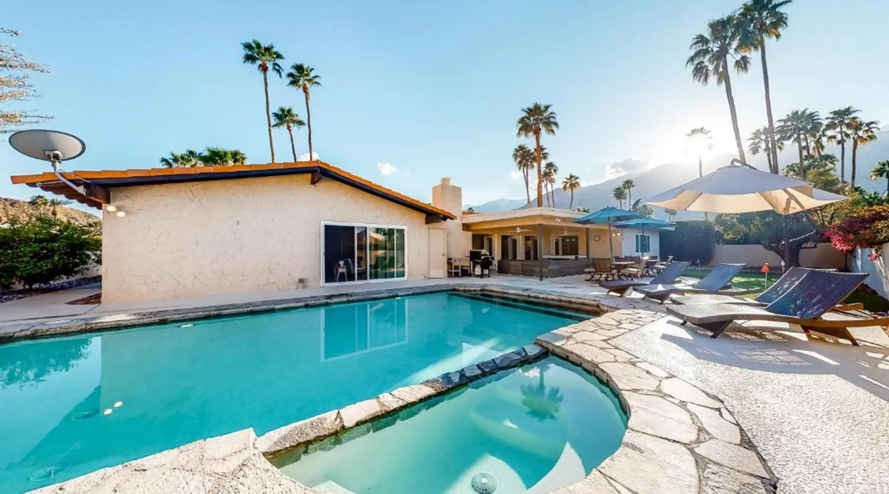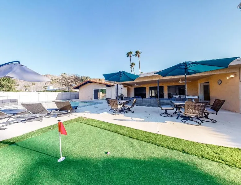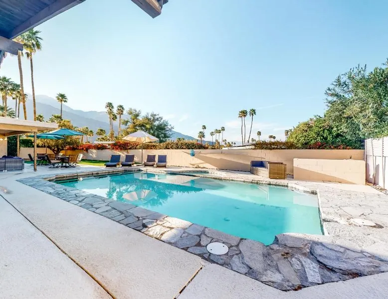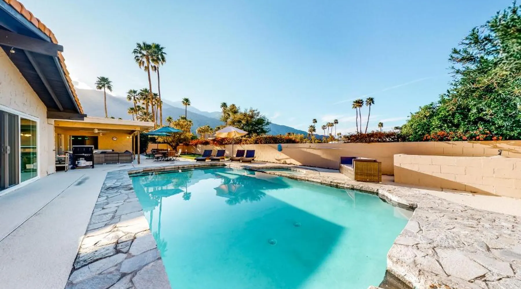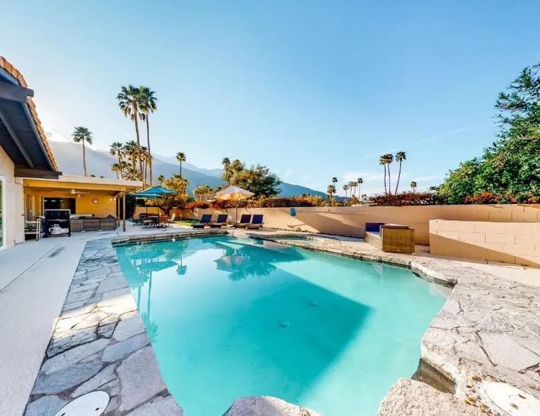 Spacious Holiday Home in Palm Springs: Casa Via Estrella Permit# 4611 offers a spacious setting in Palm Springs. The property features four bedrooms and four bathrooms, ensuring ample space for all guests. Exceptional Facilities: Guests can enjoy a swimming pool with stunning views, a restaurant, and an outdoor seating area. Additional amenities include a picnic area, games room, and children's playground, catering to all ages. Comfortable Living Spaces: The holiday home is equipped with air-conditioning, a heated pool, streaming services, and a fully fitted kitchen. Other amenities include a fireplace, barbecue, and outdoor dining area, enhancing the overall comfort. Prime Location: Located 3.1 mi from Palm Springs International Airport, the property is a short distance from Indian Canyons Golf Resort (12-minute walk) and Canyon Country Club South Golf Course (0.7 mi). Highly rated by guests, the holiday home provides easy access to local attractions. The private pool and fireplace are the standout features of this holiday home. Featuring a private entrance, this spacious holiday home also consists of 4 bedrooms, a seating area and 4 bathrooms with a walk-in shower and a hairdryer. Guests will find a stovetop, a refrigerator, a dishwasher and kitchenware in the well-fitted kitchen. The holiday home also provides guests with a barbecue. The air-conditioned holiday home provides a TV with streaming services, a washing machine, a mini-bar, a tea and coffee maker as well as pool views. The unit offers 5 beds.