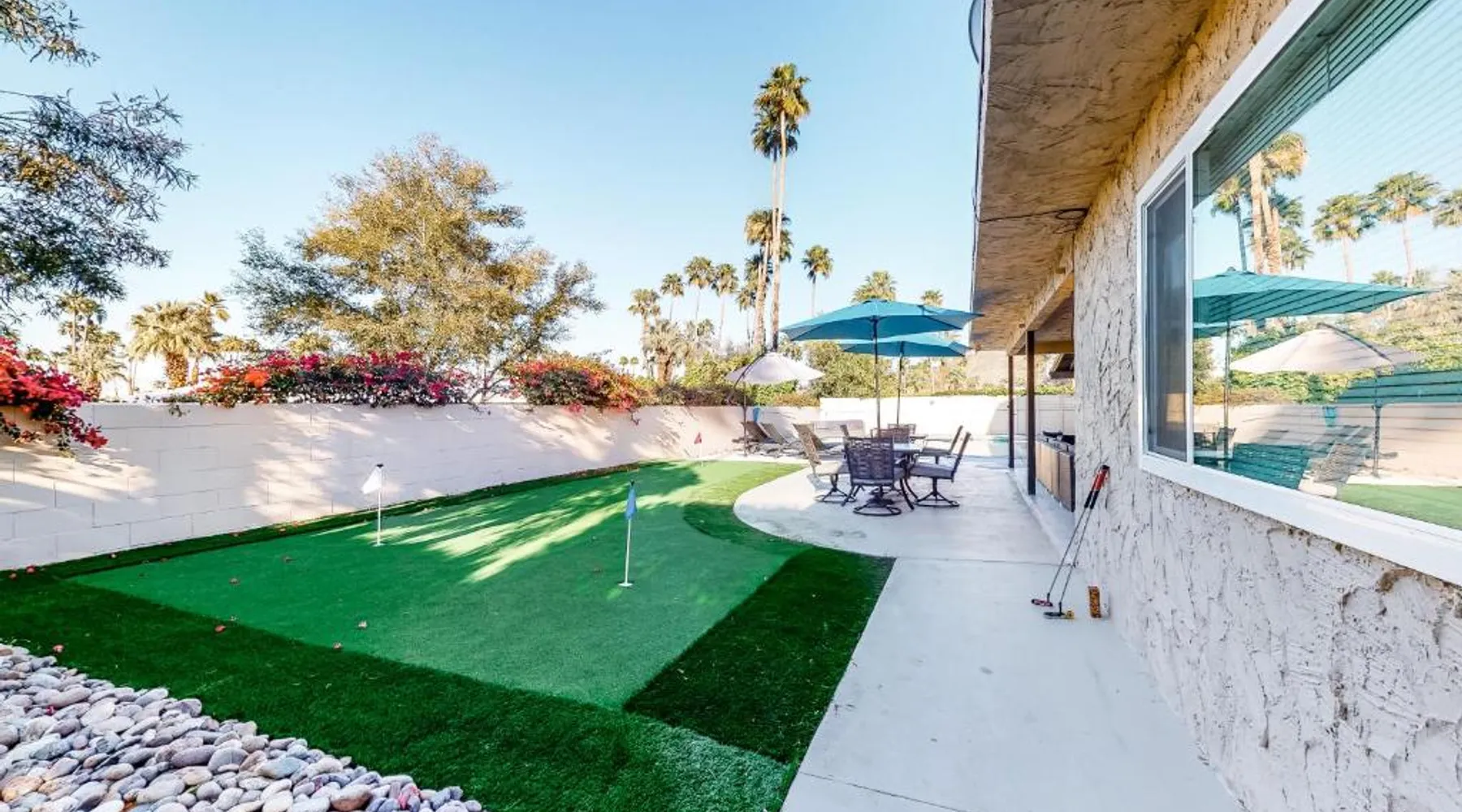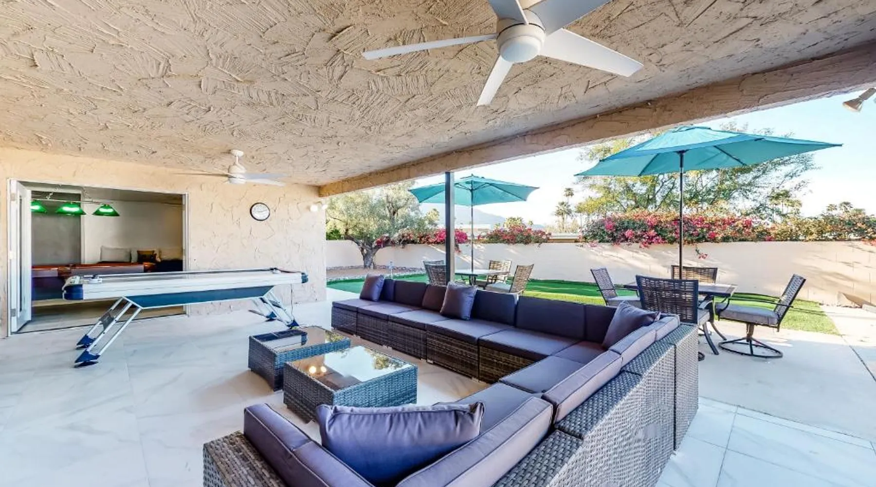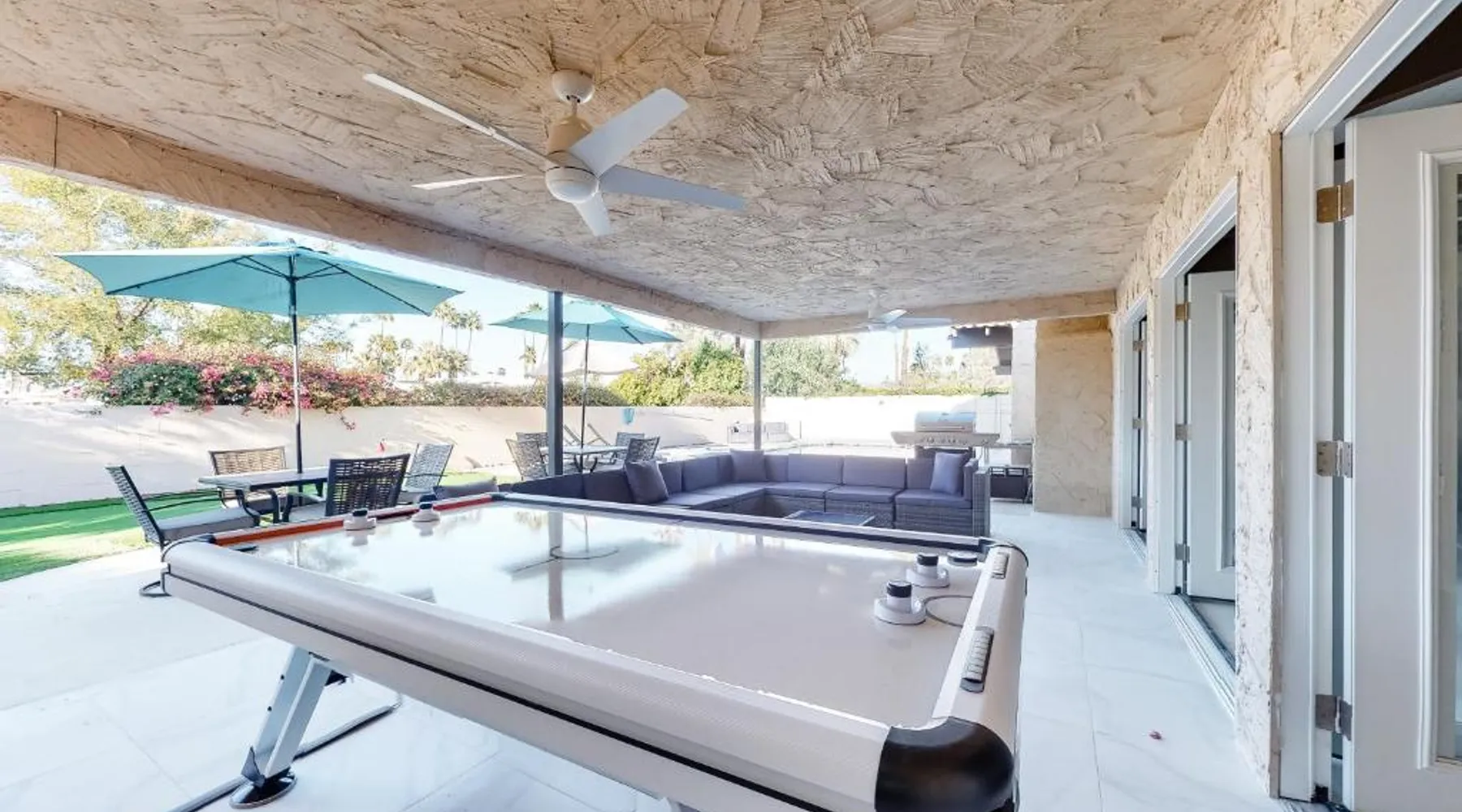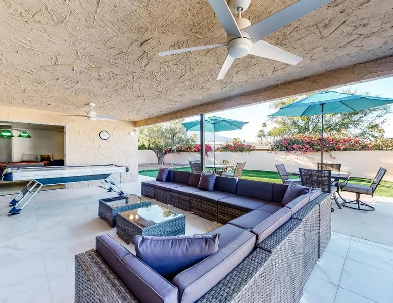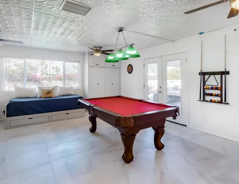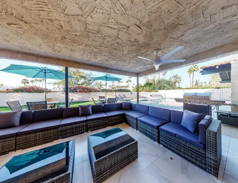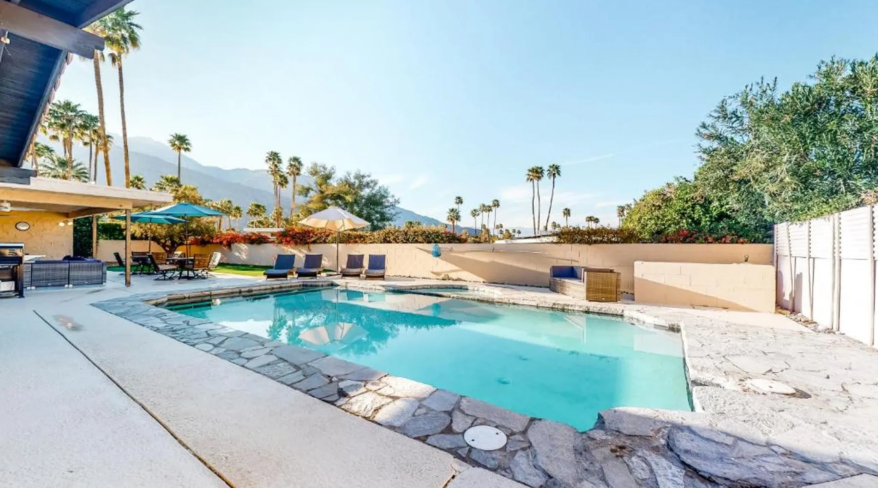 Spacious Holiday Home in Palm Springs: Casa Via Estrella Permit# 4611 offers a spacious setting in Palm Springs. The property features four bedrooms and four bathrooms, ensuring ample space for all guests. Exceptional Facilities: Guests can enjoy a swimming pool with stunning views, a restaurant, and an outdoor seating area. Additional amenities include a picnic area, games room, and children's playground, catering to all ages. Comfortable Living Spaces: The holiday home is equipped with air-conditioning, a heated pool, streaming services, and a fully fitted kitchen. Other amenities include a fireplace, barbecue, and outdoor dining area, enhancing the overall comfort. Prime Location: Located 3.1 mi from Palm Springs International Airport, the property is a short distance from Indian Canyons Golf Resort (12-minute walk) and Canyon Country Club South Golf Course (0.7 mi). Highly rated by guests, the holiday home provides easy access to local attractions. The private pool and fireplace are the standout features of this holiday home. Featuring a private entrance, this spacious holiday home also consists of 4 bedrooms, a seating area and 4 bathrooms with a walk-in shower and a hairdryer. Guests will find a stovetop, a refrigerator, a dishwasher and kitchenware in the well-fitted kitchen. The holiday home also provides guests with a barbecue. The air-conditioned holiday home provides a TV with streaming services, a washing machine, a mini-bar, a tea and coffee maker as well as pool views. The unit offers 5 beds.